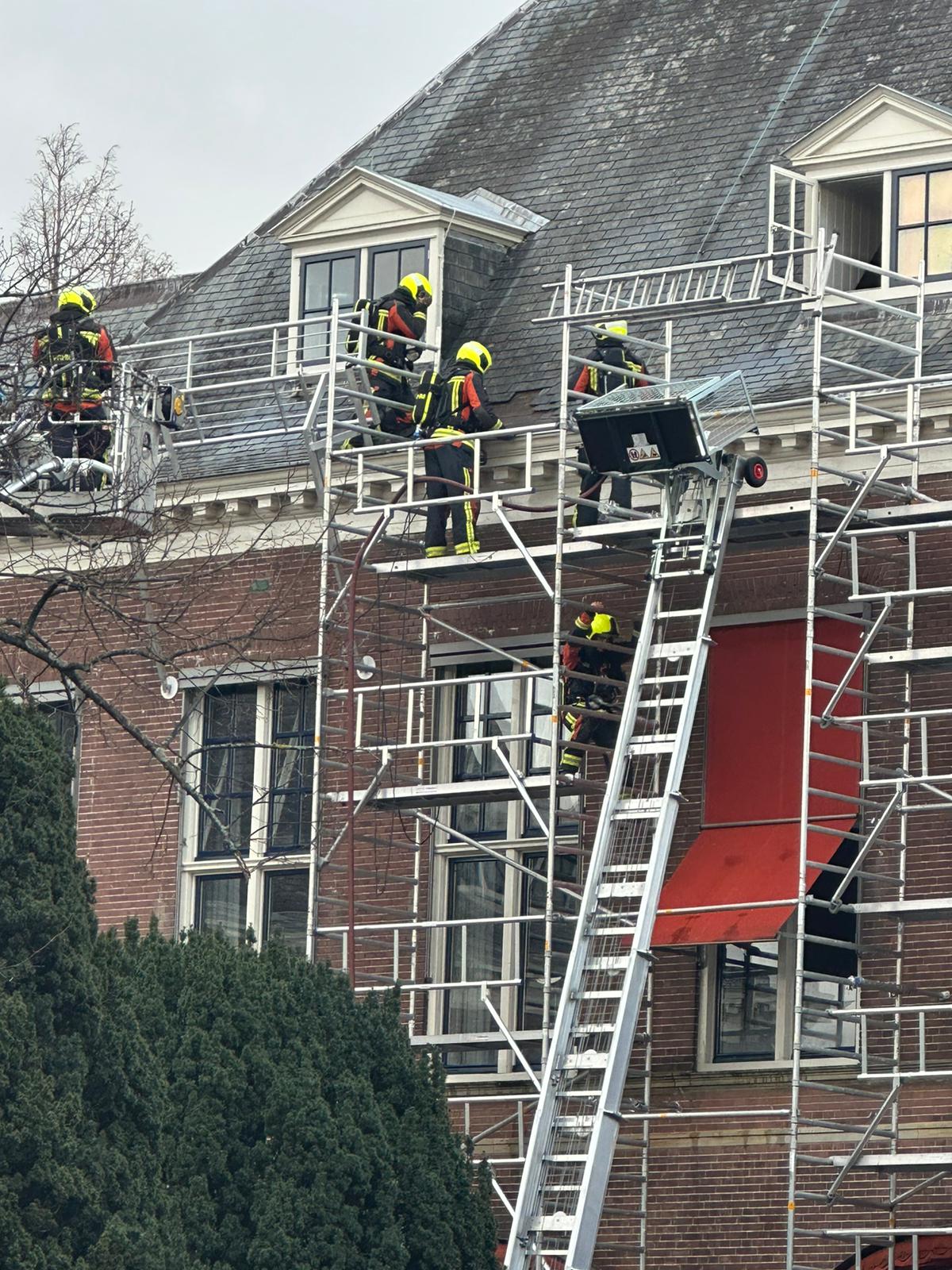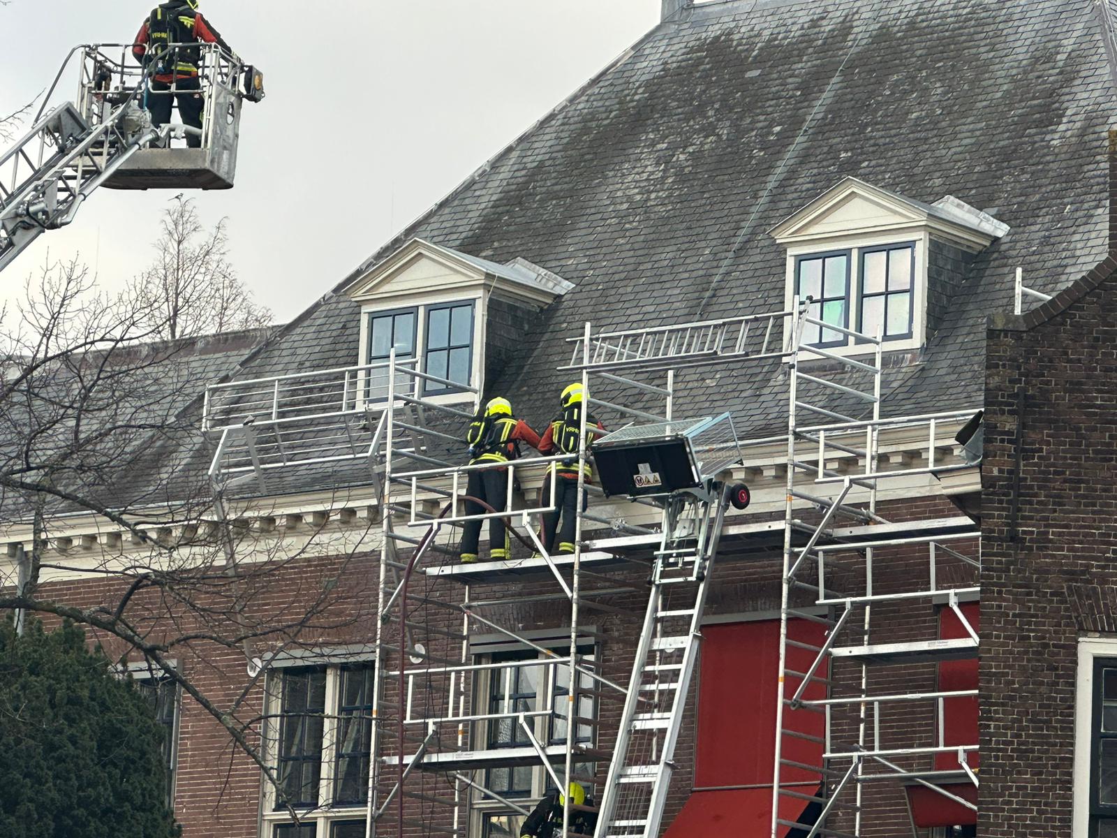 “Om bij de brandhaard te kunnen komen, wordt momenteel het dak opengebroken”, meldt directeur Brian Groot van de even verderop gevestigde Haanstra School.