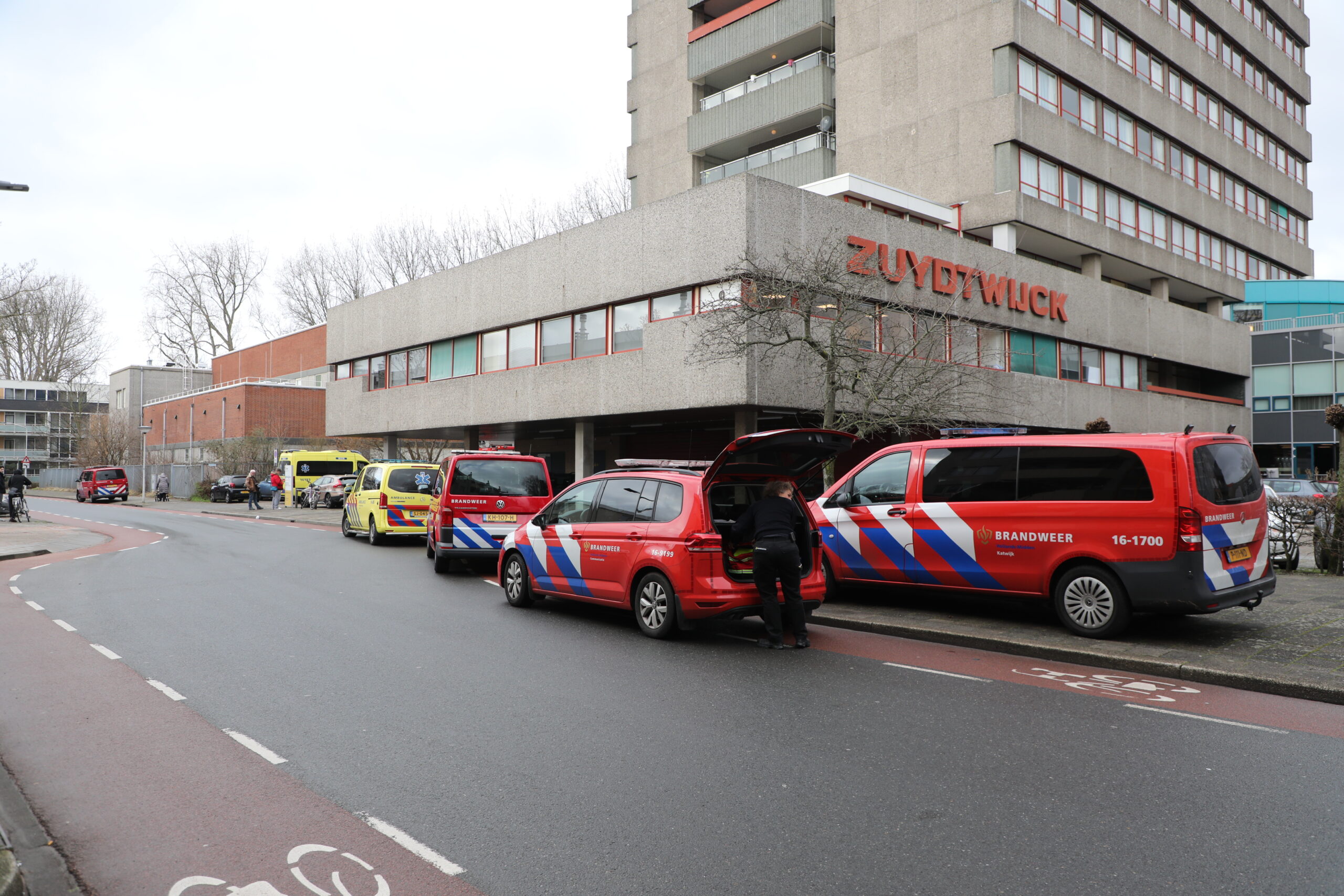 Leiden-Aaltje Noorderwieklaan: Bij werkzaamheden aan de airco is een leiding gesprongen. Op dit moment worden er metingen verricht. Er worden 2 personen nagekeken door de ambulance medewerkers. https://t.co/AWT4NZwZDQ