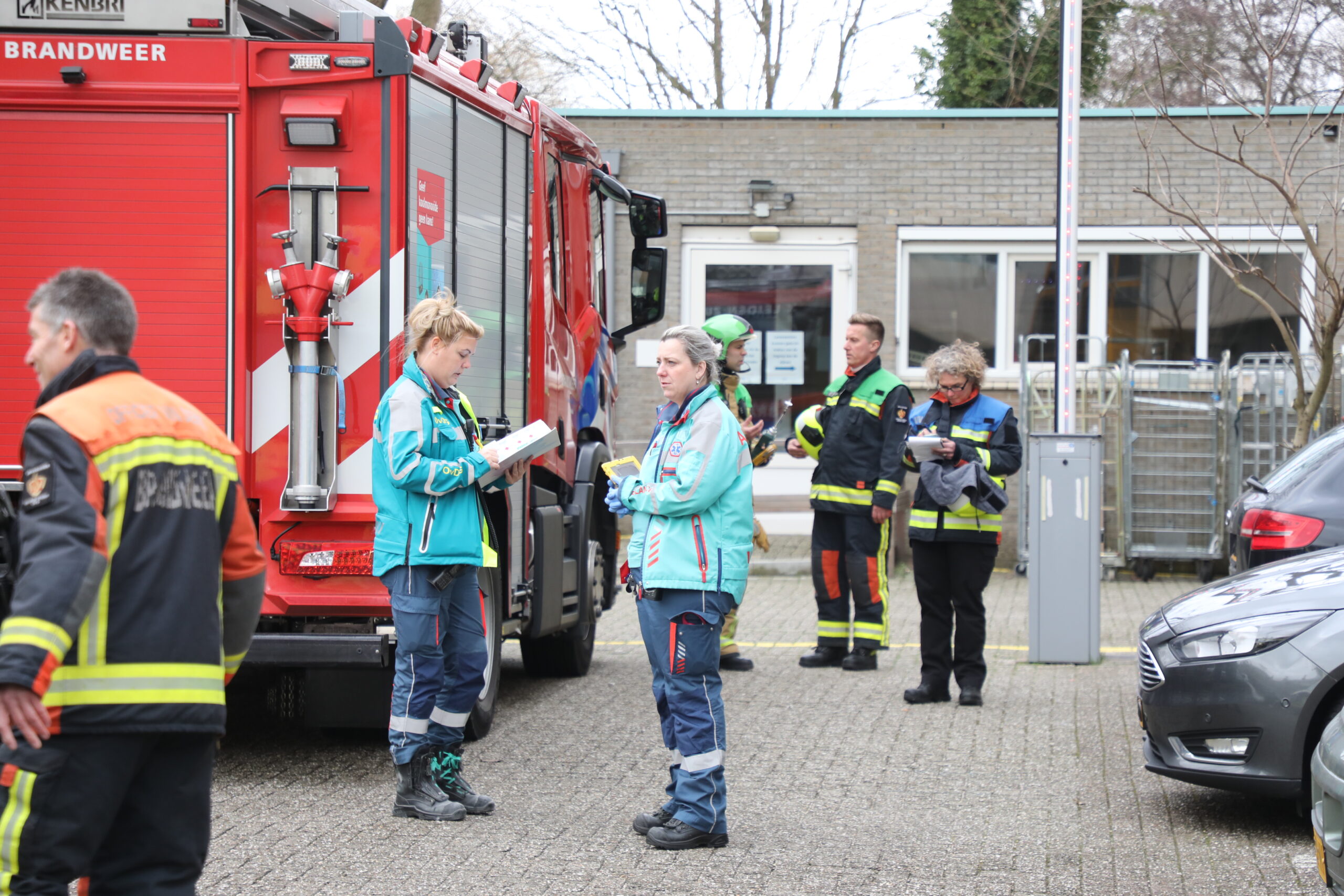 Twee medewerkers zijn eerst in de ambulance nagekeken en later voor controle naar het ziekenhuis overgebracht.