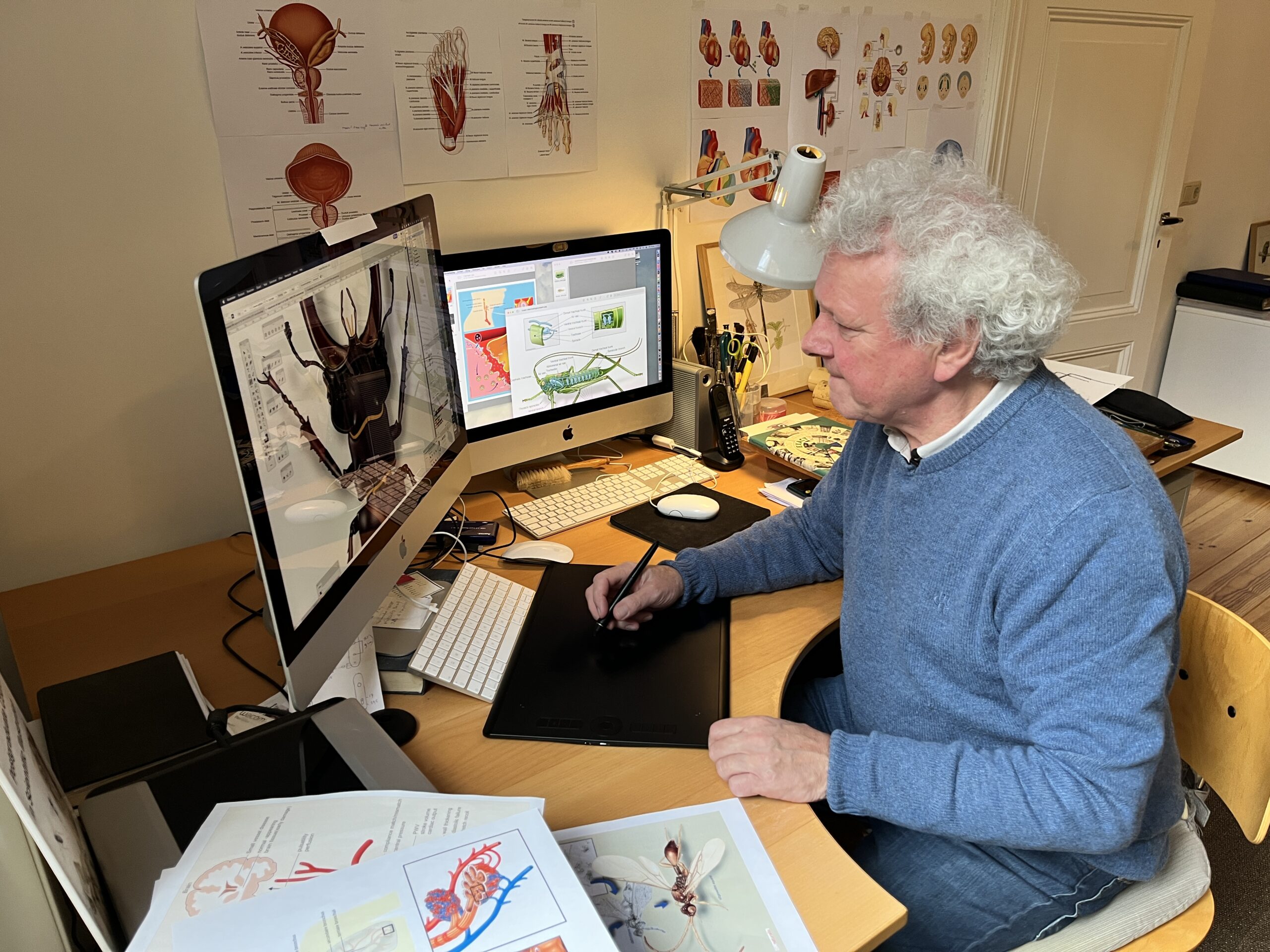 Over zijn vak praat hij graag. De wetenschap trok hem ook altijd al, maar uiteindelijk koos hij toch voor de kunstacademie en niet voor een universitaire studie. “Dat tekenen zit toch echt in me. En voor wetenschappelijke en anatomische tekeningen is het ook belangrijk dat je begrijpt waar je mee bezig bent. En je moet net als een chirurg hele fijne manuele vaardigheden hebben.”