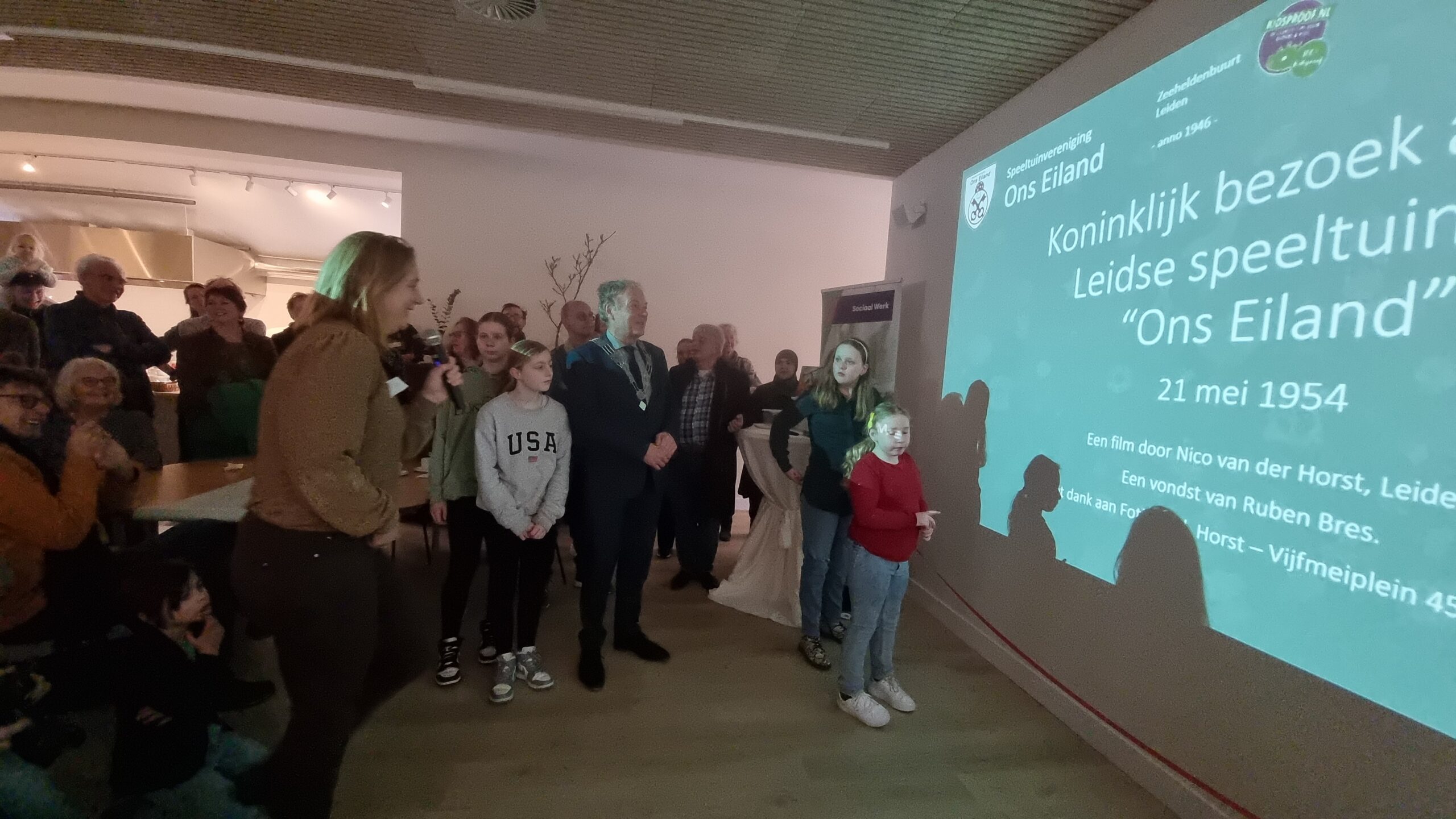 Na de opening sprak Chris de Waard voor Sleutelstad met secretaris Jessica Hilhorst van Ons Eiland, bestuurder Piet Penning van de SPL, Cor Arnoldus en burgemeester Lenferink en tenslotte met de Leidse stadshistoricus Cor Smit die eerder een boek over de wijk schreef en nu een toelichting kwam geven bij de herontdekte film van een bezoek van Koningin Juliana aan de speeltuin.