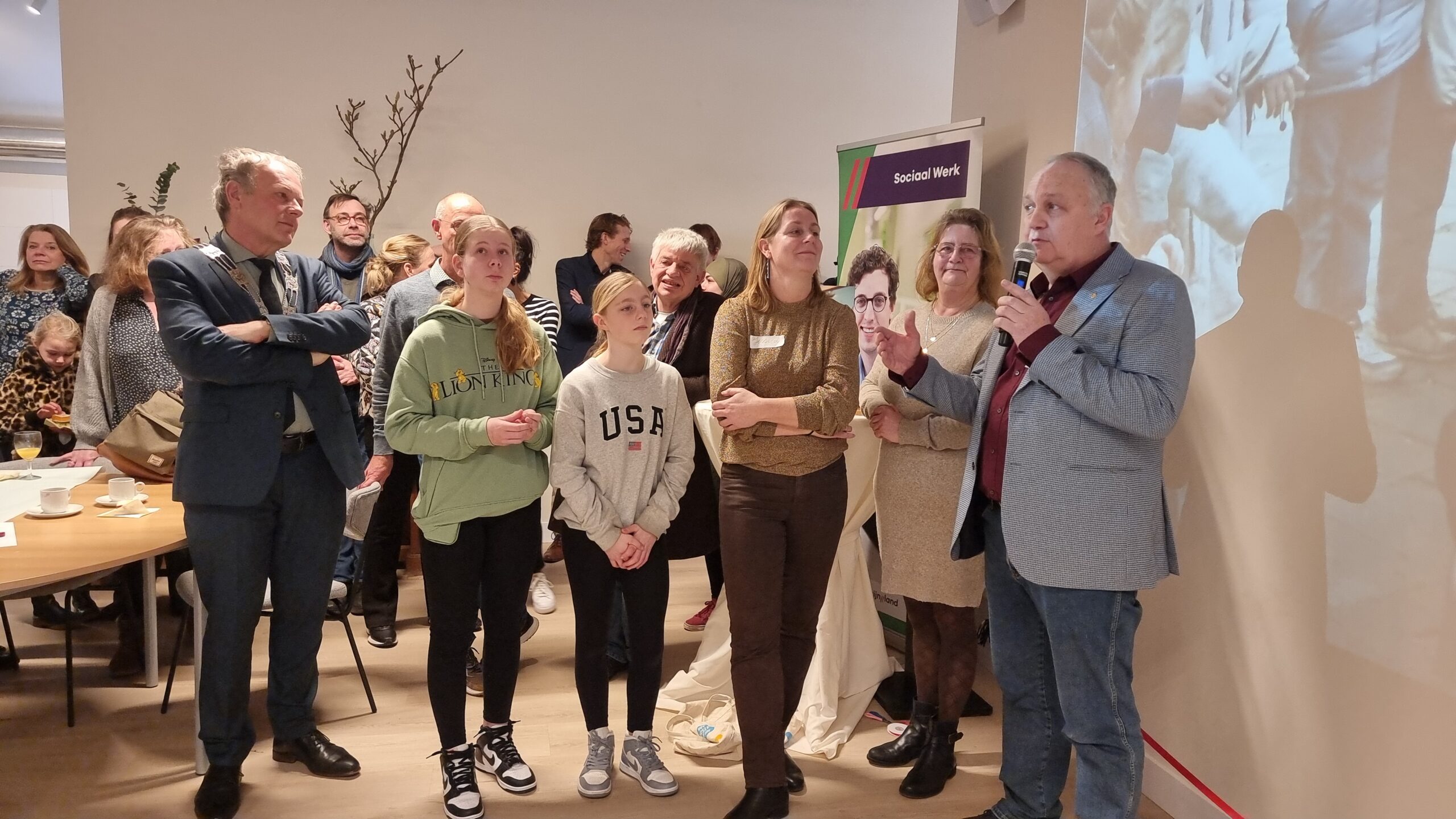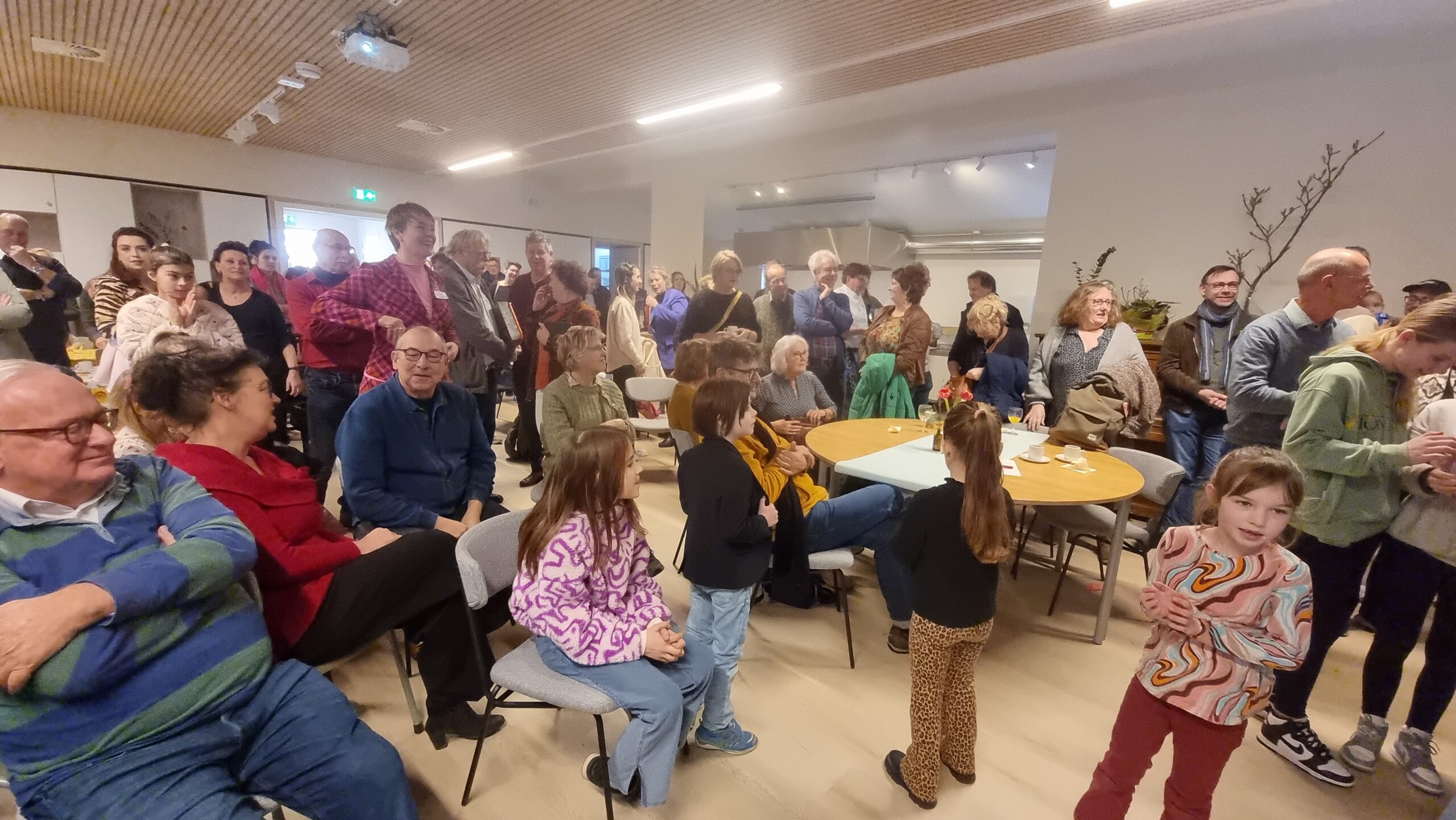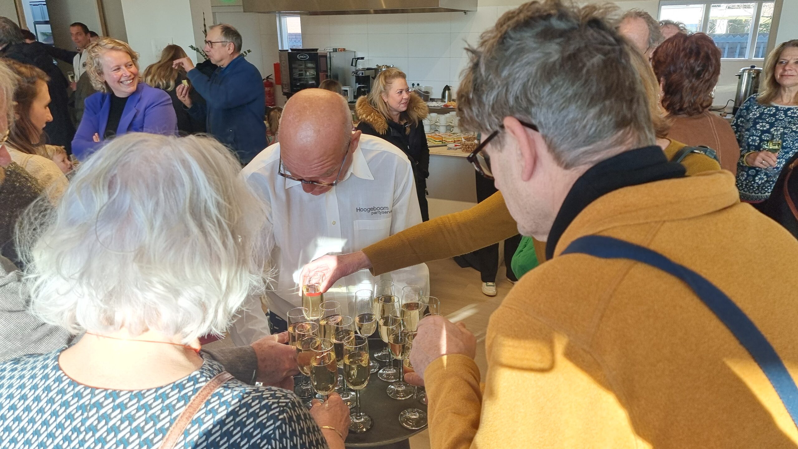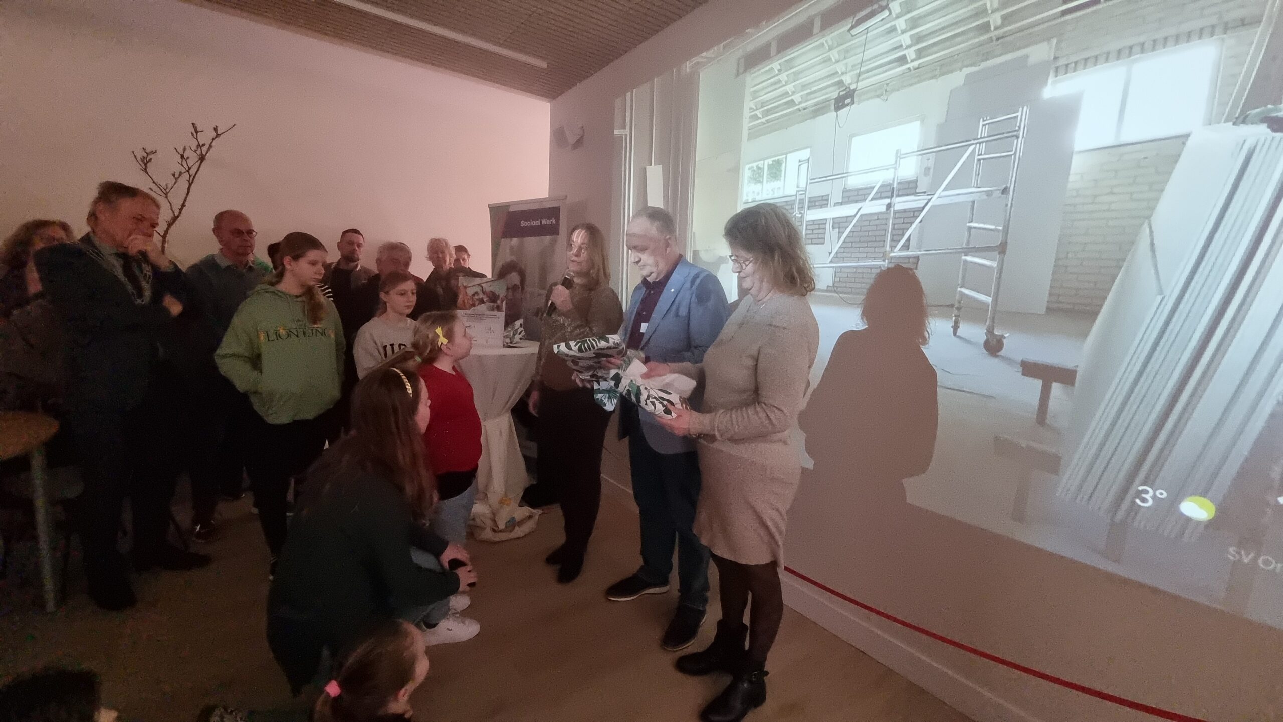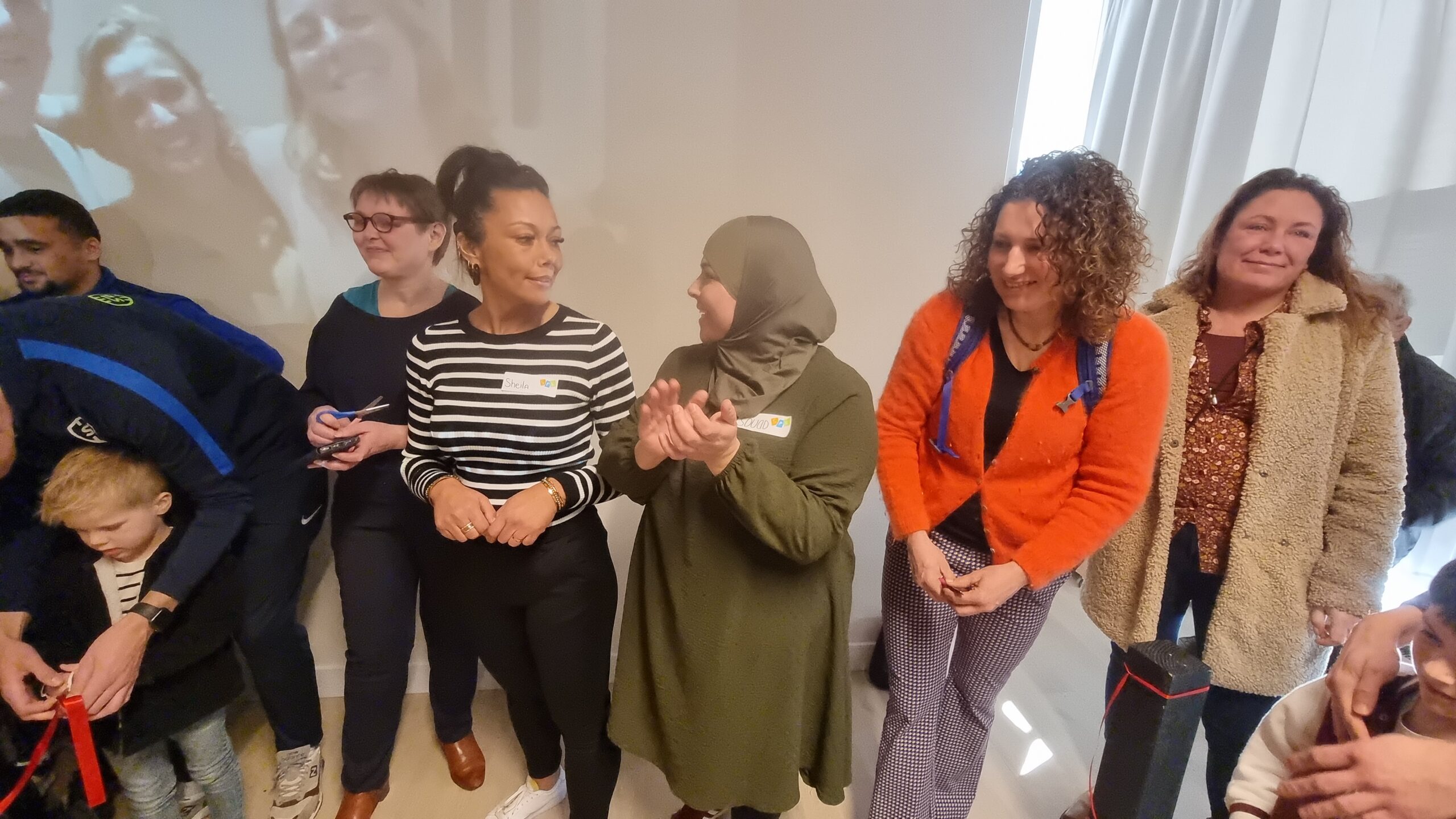 Medewerkers en vrijwilligers van alle betrokken organisaties knipten als openingshandeling gezamenlijk een lang lint door, nadat onder leiding van de burgemeester uitgebreid en steeds sneller was afgeteld… 25, 24, 23…