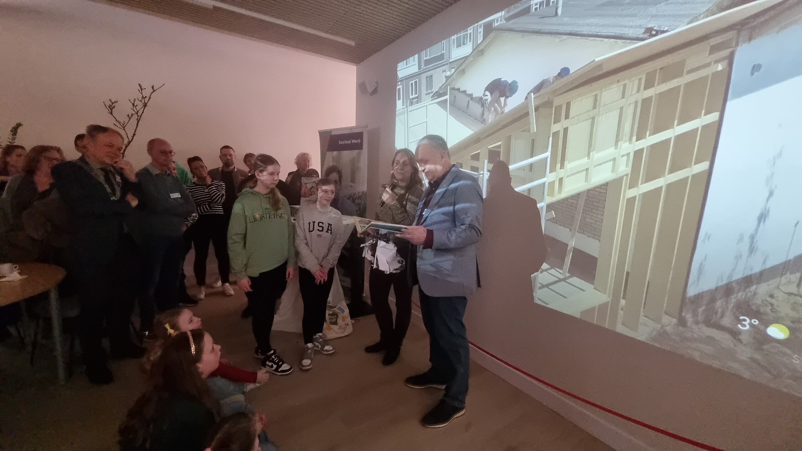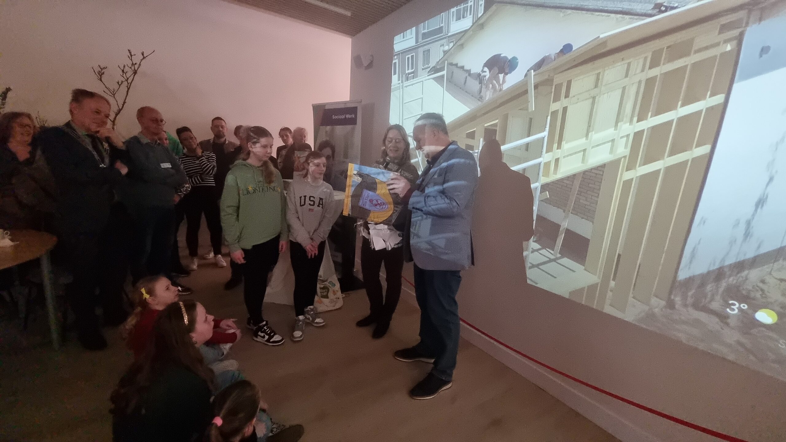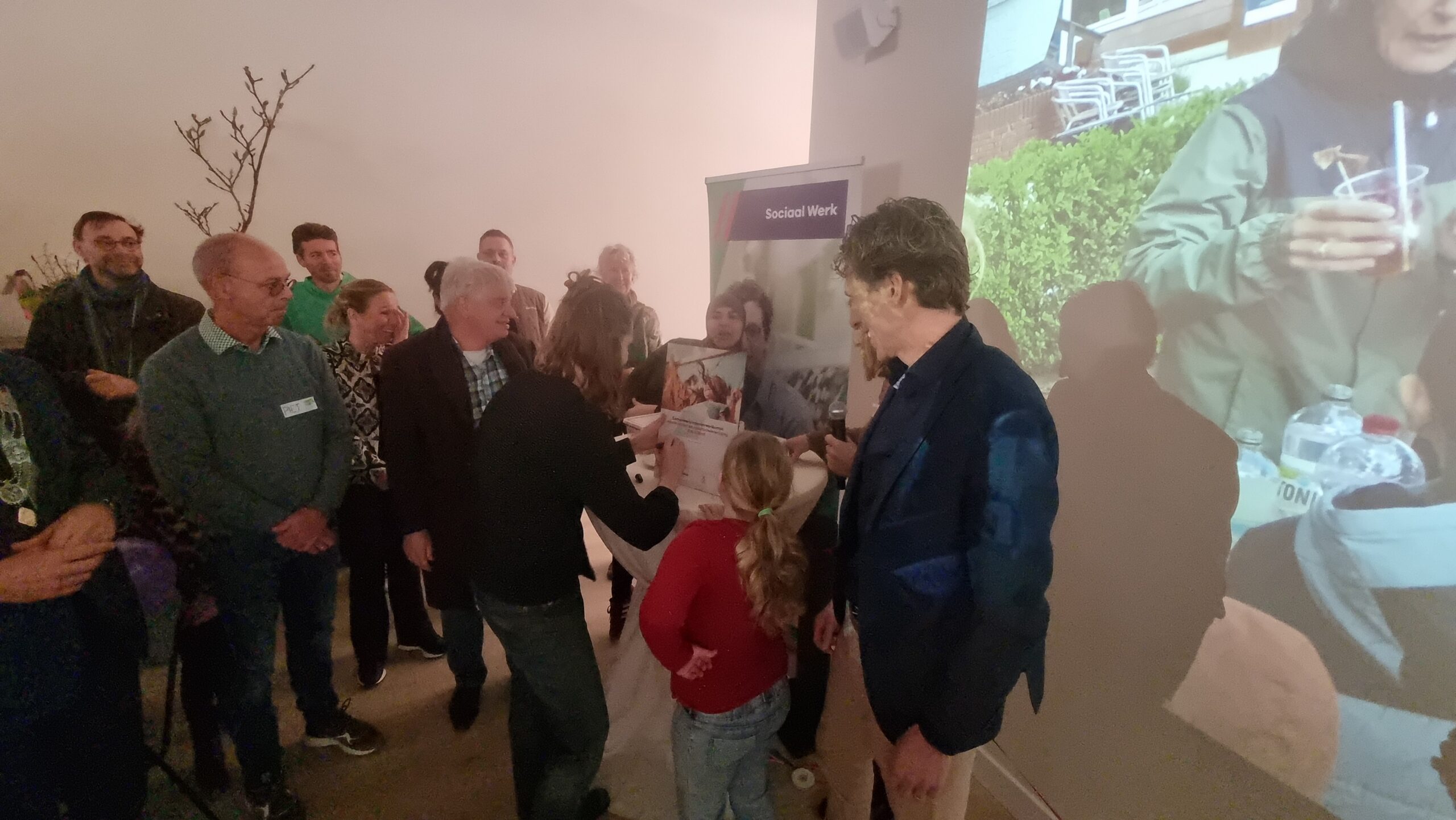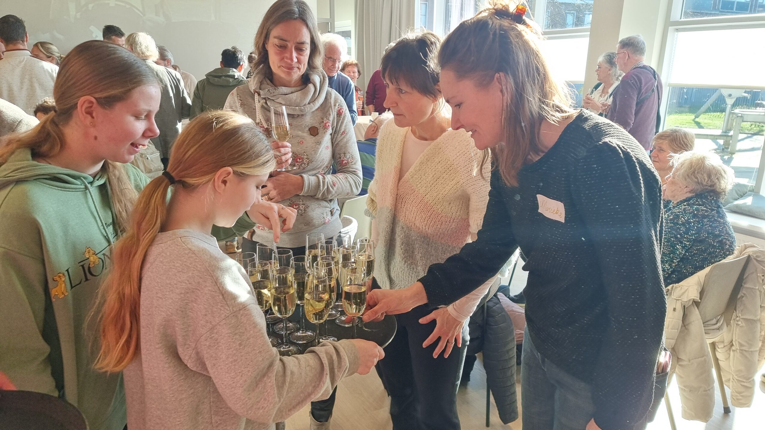 Medewerkers en vrijwilligers van alle betrokken organisaties knipten als openingshandeling gezamenlijk een lang lint door, nadat onder leiding van de burgemeester uitgebreid en steeds sneller was afgeteld… 25, 24, 23…