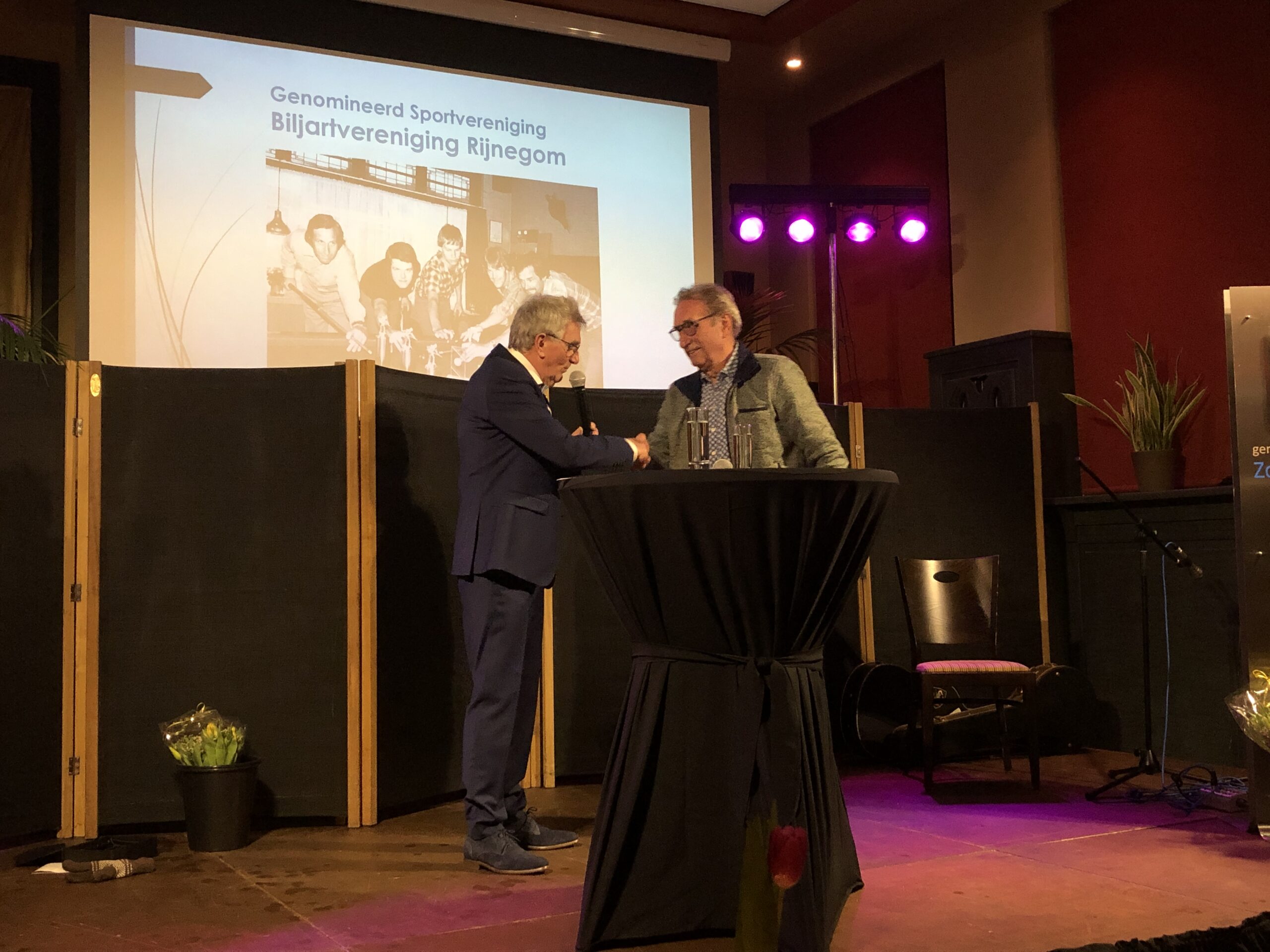 Ook de biljarters van Biljartvereniging Rijnegom werden verrast. Zij waren de enige genomineerde in de categorie ‘sportvereniging’ en mogen zich dan ook de beste sportvereniging van 2020, 2021 en 2022 in noemen. De club bestaat al 76 jaar. Na de verhuizing van Café Rijnegom naar De Eendenkooi verwachtte bestuurslid Jan Zandbergen dat het bergafwaarts zou gaan met het aantal leden. “Maar niets was minder waar. We hebben nu twee keer zoveel tafels staan als in het begin”, zegt hij. De secretaris deed direct een oproep voor nieuwe, vooral jonge, leden. “De gemiddelde leeftijd van onze spelers ligt boven de 70 jaar. We kunnen wel wat verjonging gebruiken.”