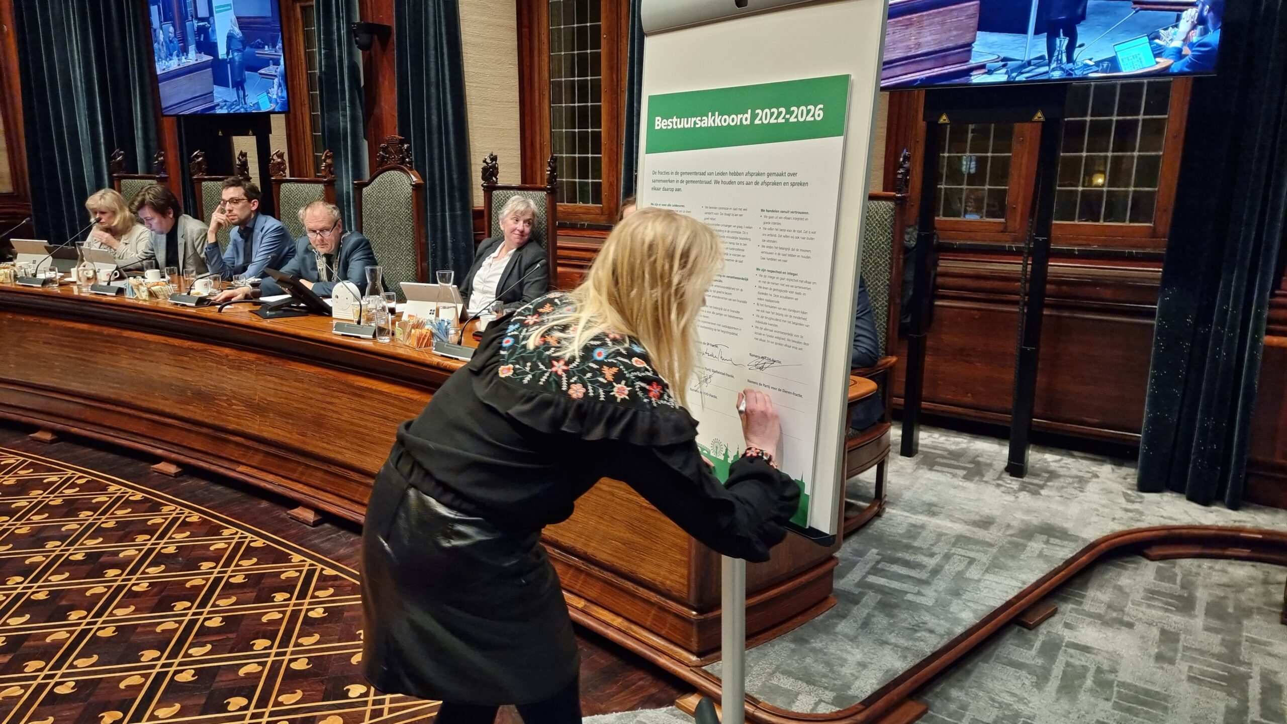 In het Leidse bestuursakkoord staan afspraken over hoe raadsleden met elkaar en de stad omgaan en hoe zij de stad beter betrekken bij bestuur en beleid. “Het draagt bij aan een gezonde lokale democratie. We voeren soms fel het debat maar persoonlijk gaan we goed met elkaar om,” zegt Rowaan.