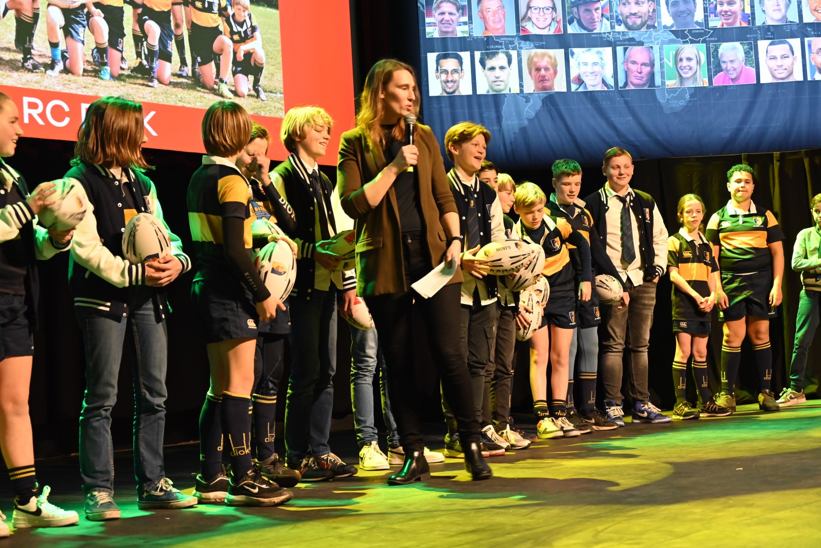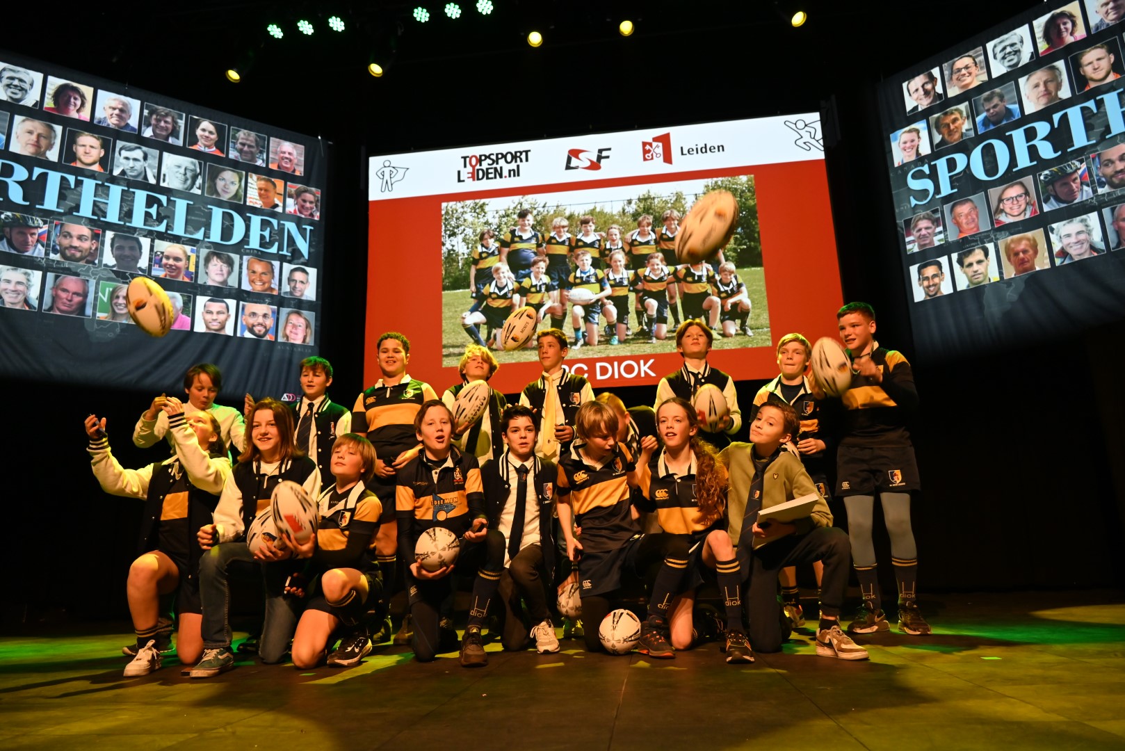 Na de individuele sportkampioenen was het tijd om twee teams in het zonnetje te zetten: de rugbymini’s van DIOK en het vrouwen basketbalteam van BS Leiden. Beide werden in het afgelopen seizoen landskampioen, het laatste team zelfs ongeslagen.