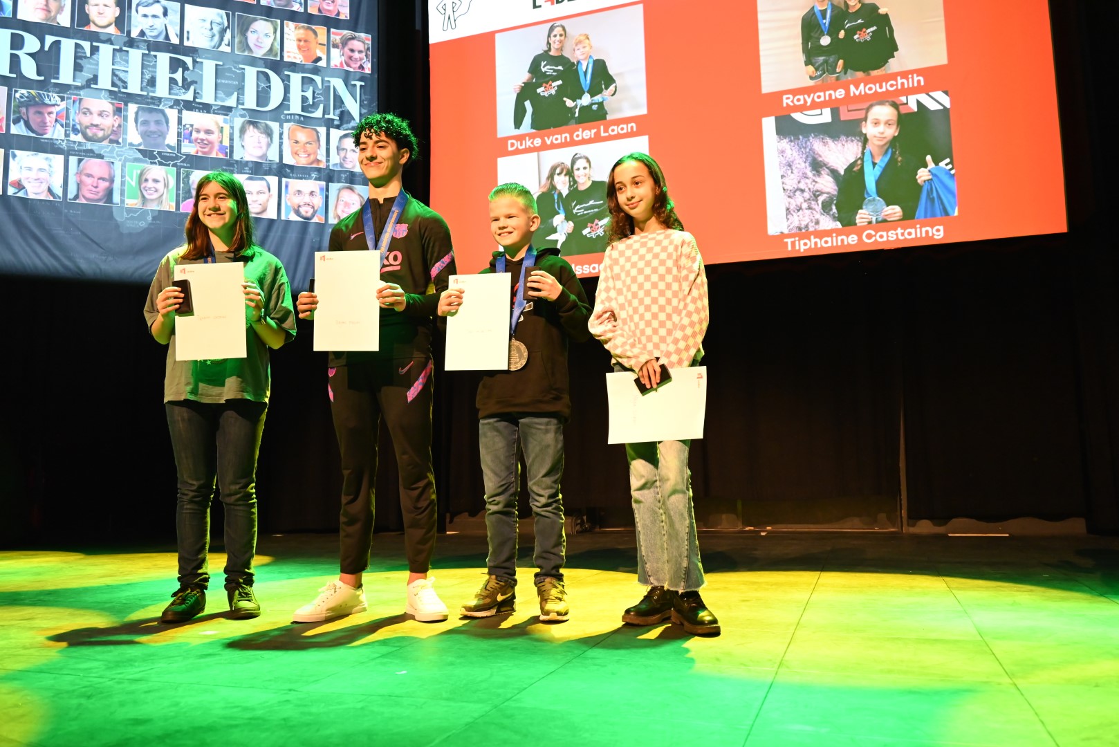 De jeugdkampioenen werden in verschillende categorieën in het zonnetje gezet. In de eerste categorie, atletiek, werden Igor Ouwerkerk, Manne Baan, Loets Kortleever en Fleur Favre geprezen om hun prestaties. De tweede categorie draaide om vechtsporten: Duke van der Laan, Tiphaine Castaing, Rayane Mouchih en Maysa Issaouti mochten het podium bestijgen.