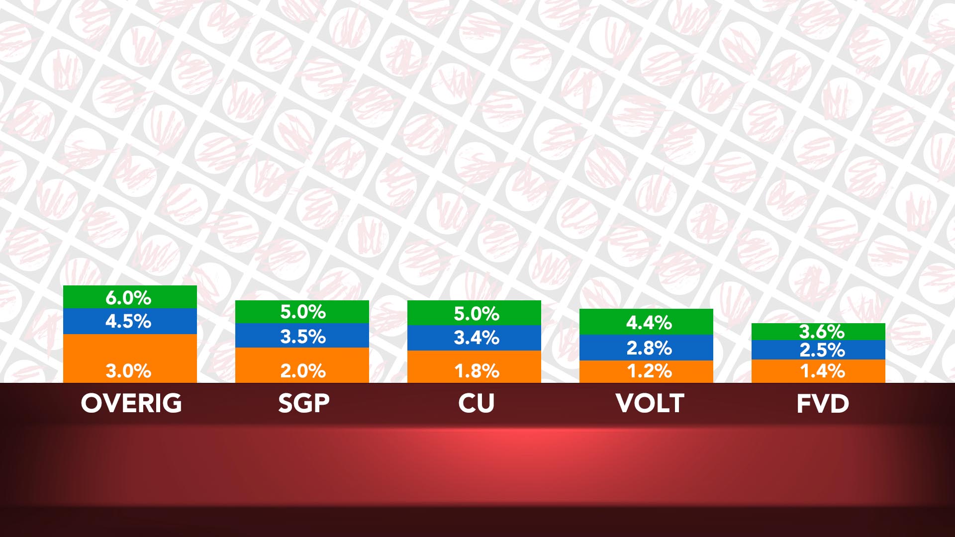 De grote winnaar van de vorige Provinciale Staten, Forum voor Democratie, lijkt nu de grote verliezer te worden. In 2019 was de partij goed voor elf van de 55 zetels. Nu ziet het ernaar uit dat de partij tussen de 1,4 en 3,6 procent van de stemmen krijgt. CDA keldert naar de tiende plek met 5,1 procent.