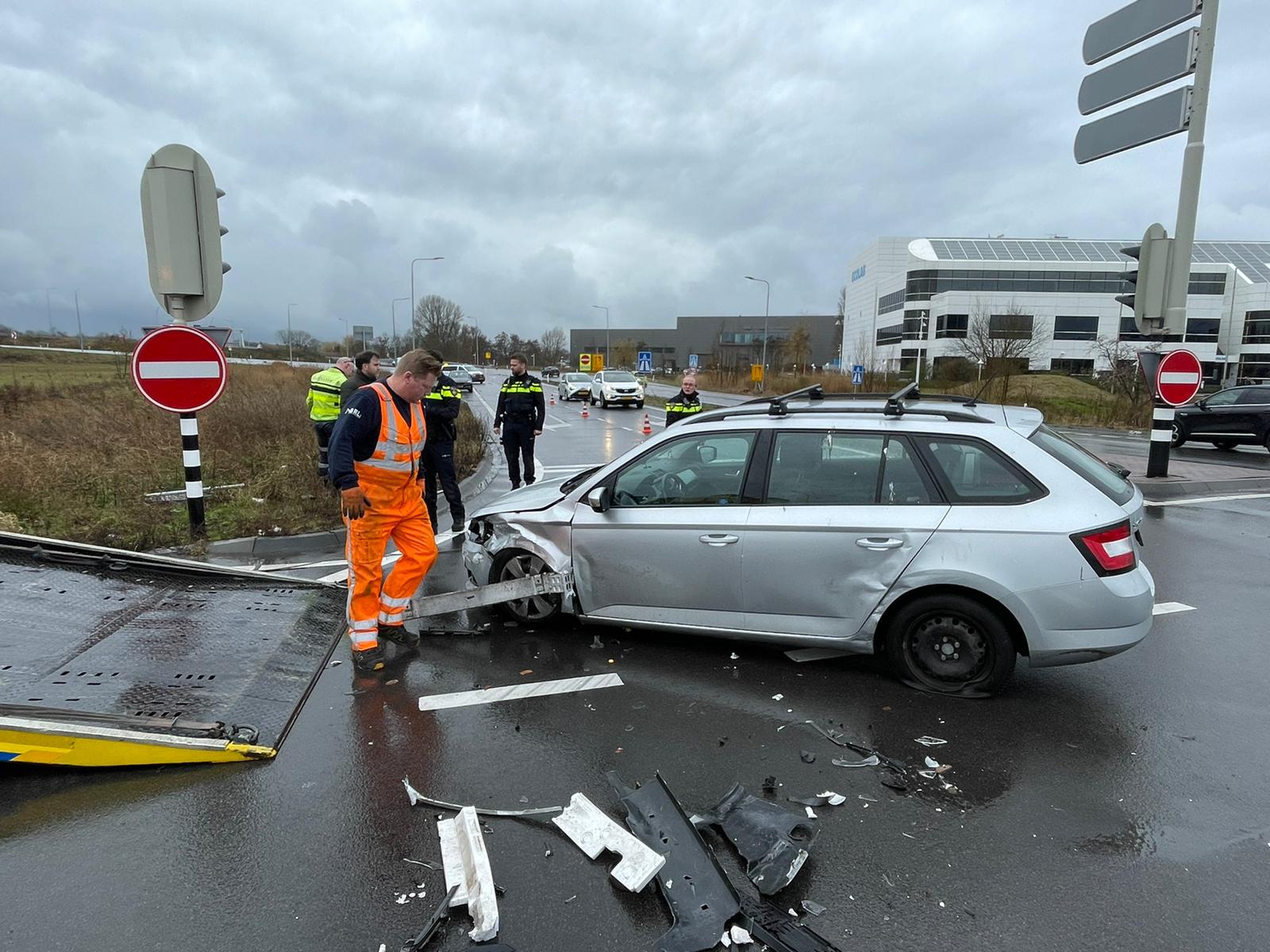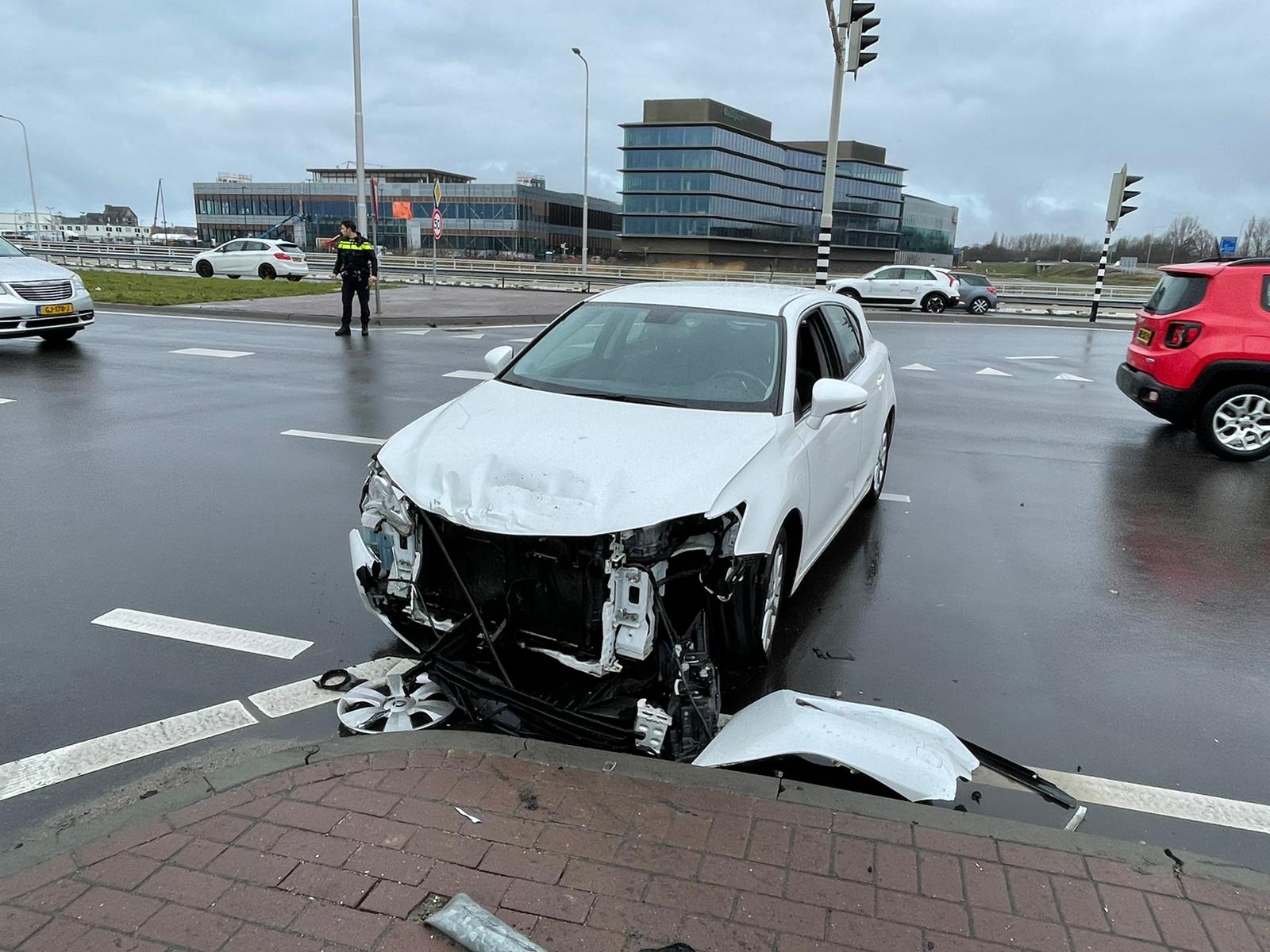 Op de kruising van de N206 met de A44 bij Oegstgeest zijn vrijdagmiddag twee auto’s hard met elkaar in botsing gekomen. Beide auto’s raakte flink beschadigd en zijn afgevoerd.