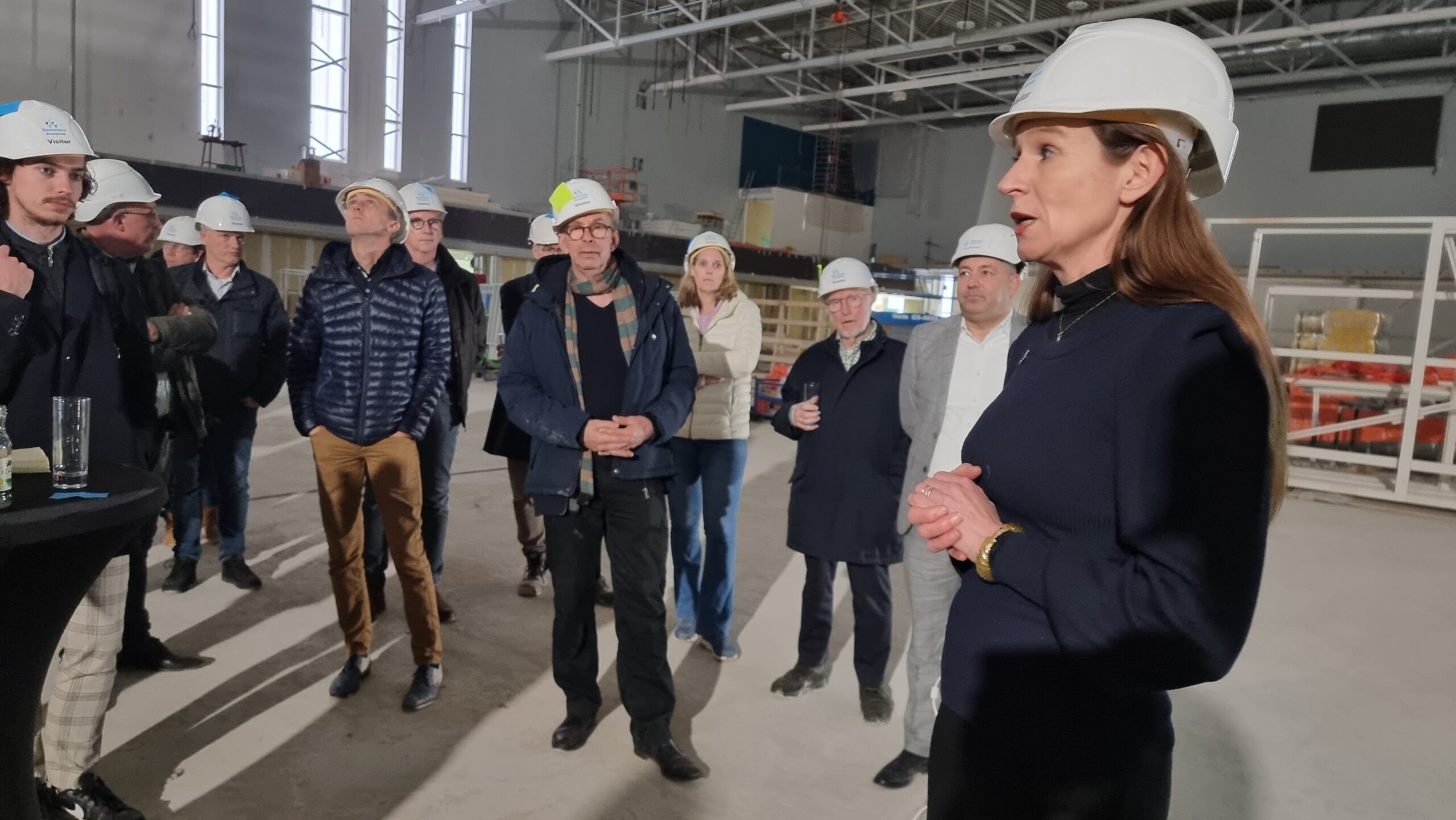 “Het is niet de grootste sporthal van Nederland maar wel de meest moderne en best geoutilleerde. Echt het neusje van de zalm”, zegt projectleider Menno van der Heide die een van de drie groepen onder zijn hoede neemt bij de rondleiding door het immense complex over de topsporthal. De Aad van der Luithal, die naam kreeg de topsporthal in het complex, is dan misschien niet de allergrootste van het land, maar groot is ‘ie wel degelijk, zo vinden ook veel genodigden die deze middag een kijkje nemen.