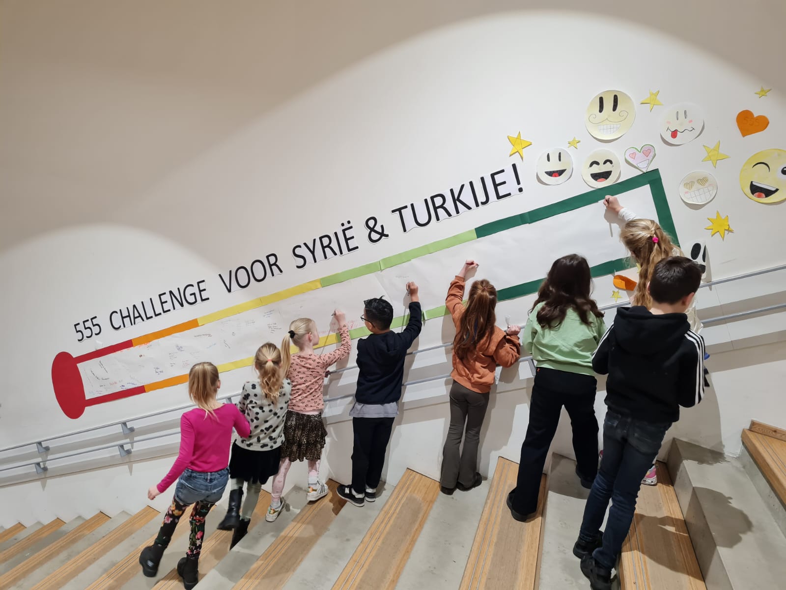 Naast het inzamelen van geld heeft de school ook een gedachtenmuur gemaakt waar leerlingen berichten kunnen opschrijven naar slachtoffers van de aardbevingen. Volgens Cindy Steenbakker leeft het enorm onder de kinderen: “Ze zien het op het jeugdjournaal en we beginnen dagelijks met het nieuws. Ze krijgen mee wat voor verschrikkelijke ramp het is en zijn enorm gemotiveerd om een steentje bij te dragen.”