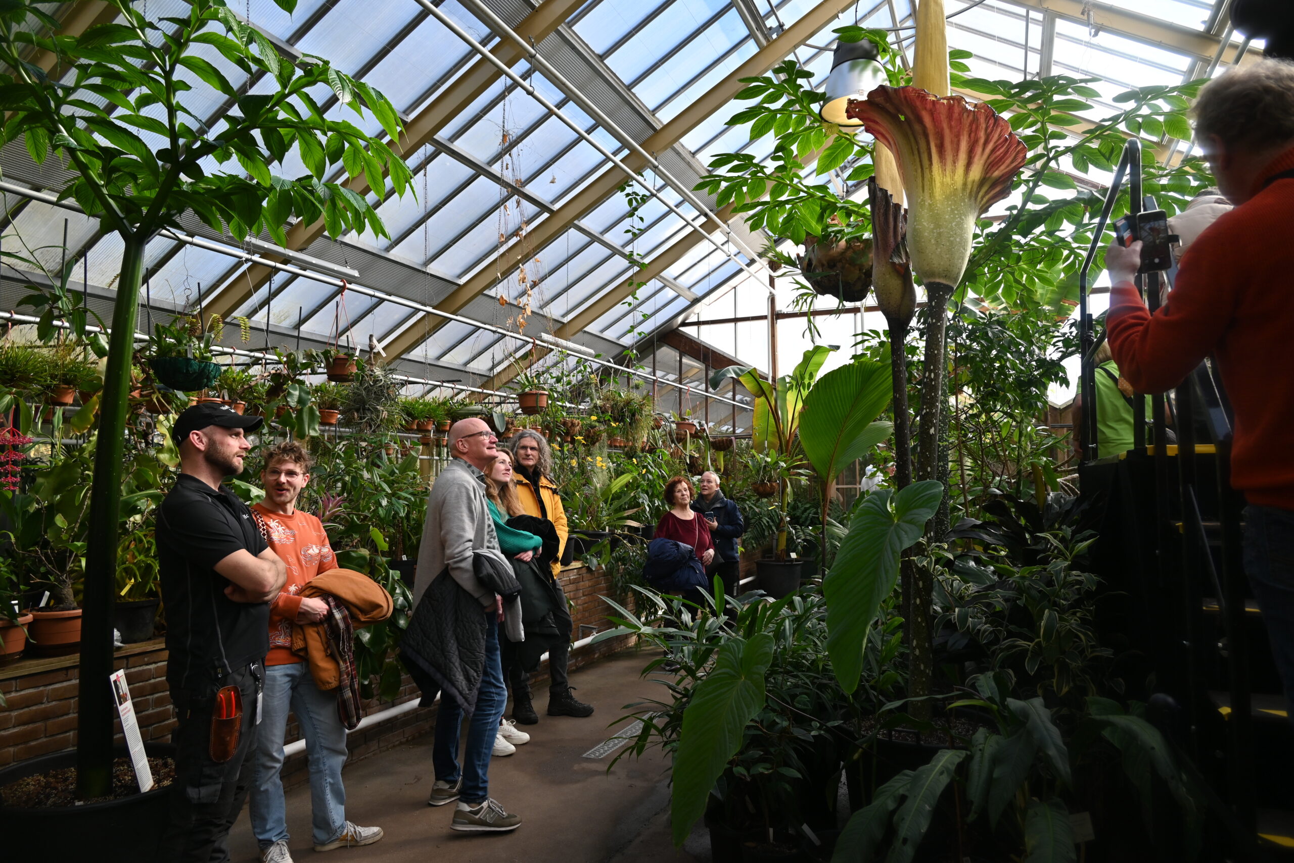 “Dit is het derde jaar op rij dat zich een bloei van een Reuzenamorphophallus voordoet in de Leidse Hortus. In 2021 bloeide de zeldzame Amorphophallus decus-silvae, in de zomer van 2022 twee exemplaren van Amorphophallus titanum en nu dus twee exemplaren van Amorphophallus gigas. Hiermee zijn alle drie de Reuzenamorphophallussoorten die ter wereld voorkomen in de Leidse Hortus in bloei te zien (geweest)”, zegt een woordvoerder van de botanische tuin trots.