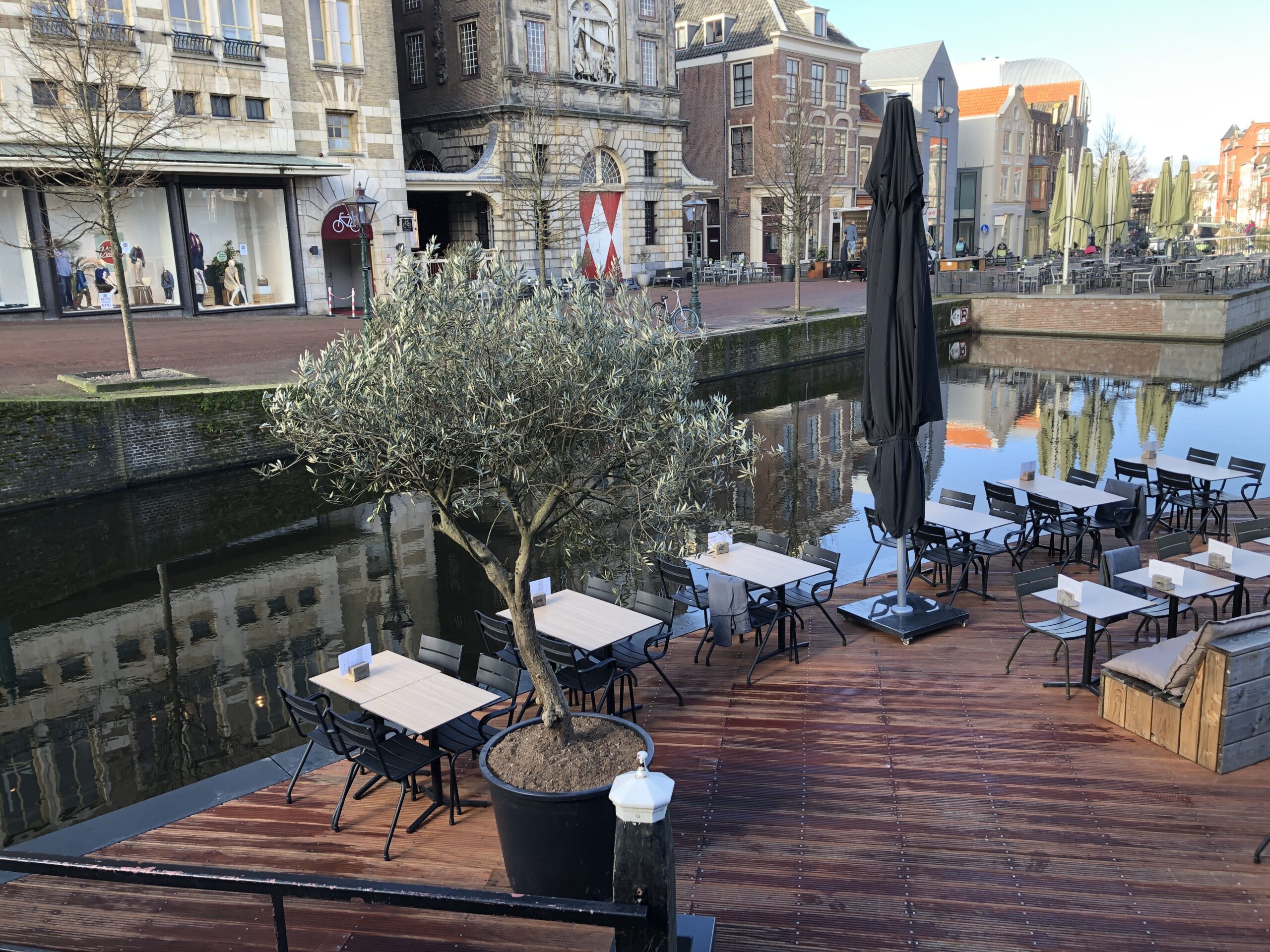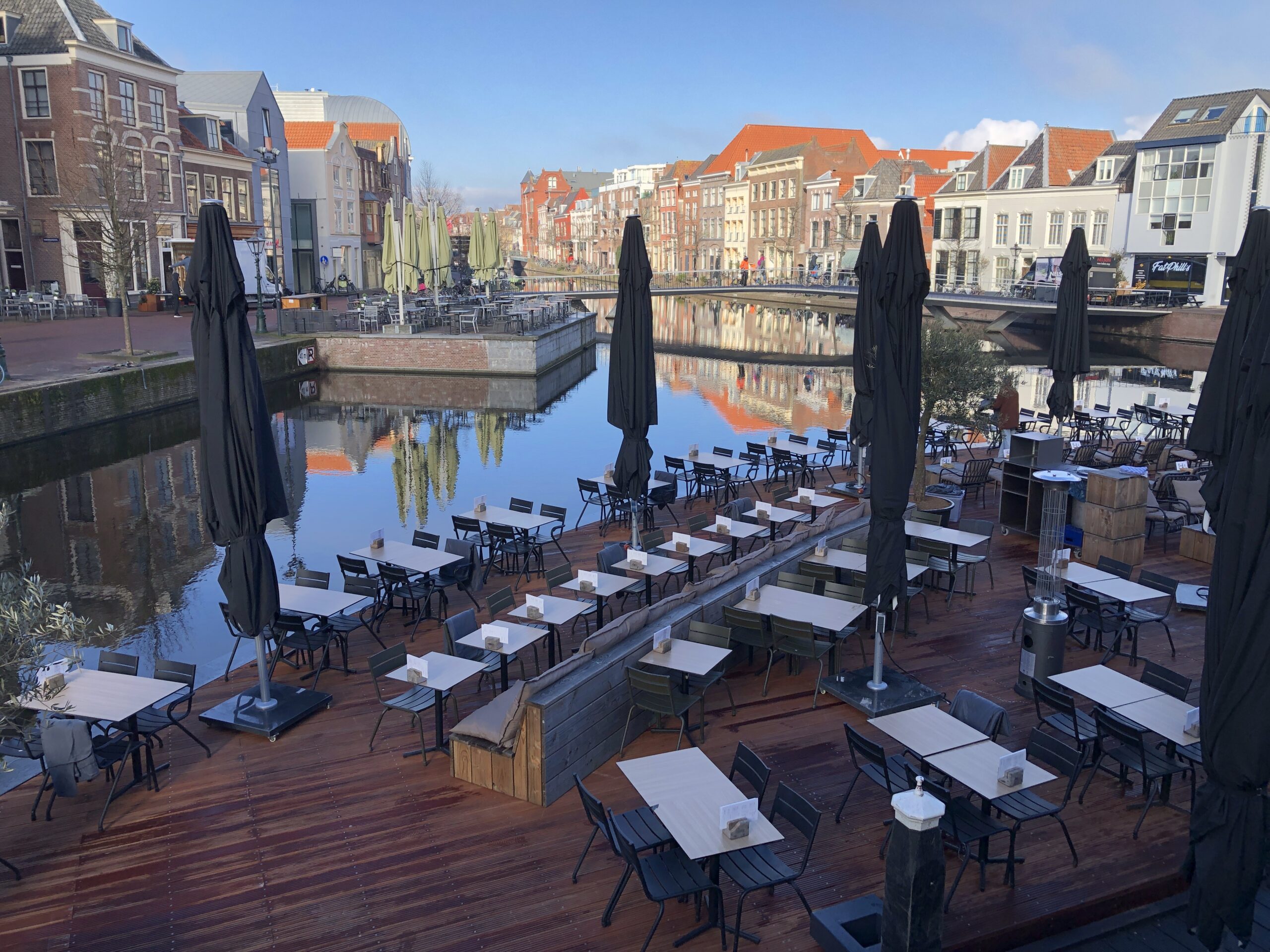 In 2015 keurde de gemeente het ontwerp voor een groter terras ter vervanging van twee terrasboten goed. De Historische Vereniging Oud Leiden (HVOL) ging samen met het Waterambacht Leiden en Rederij Rembrandt in protest. Zij vonden dat het nieuwe terras het zicht op het historische centrum te veel beïnvloedt. Na tussenkomst van de Raad van State werd het ontwerp aangepast tot het huidige compromis.