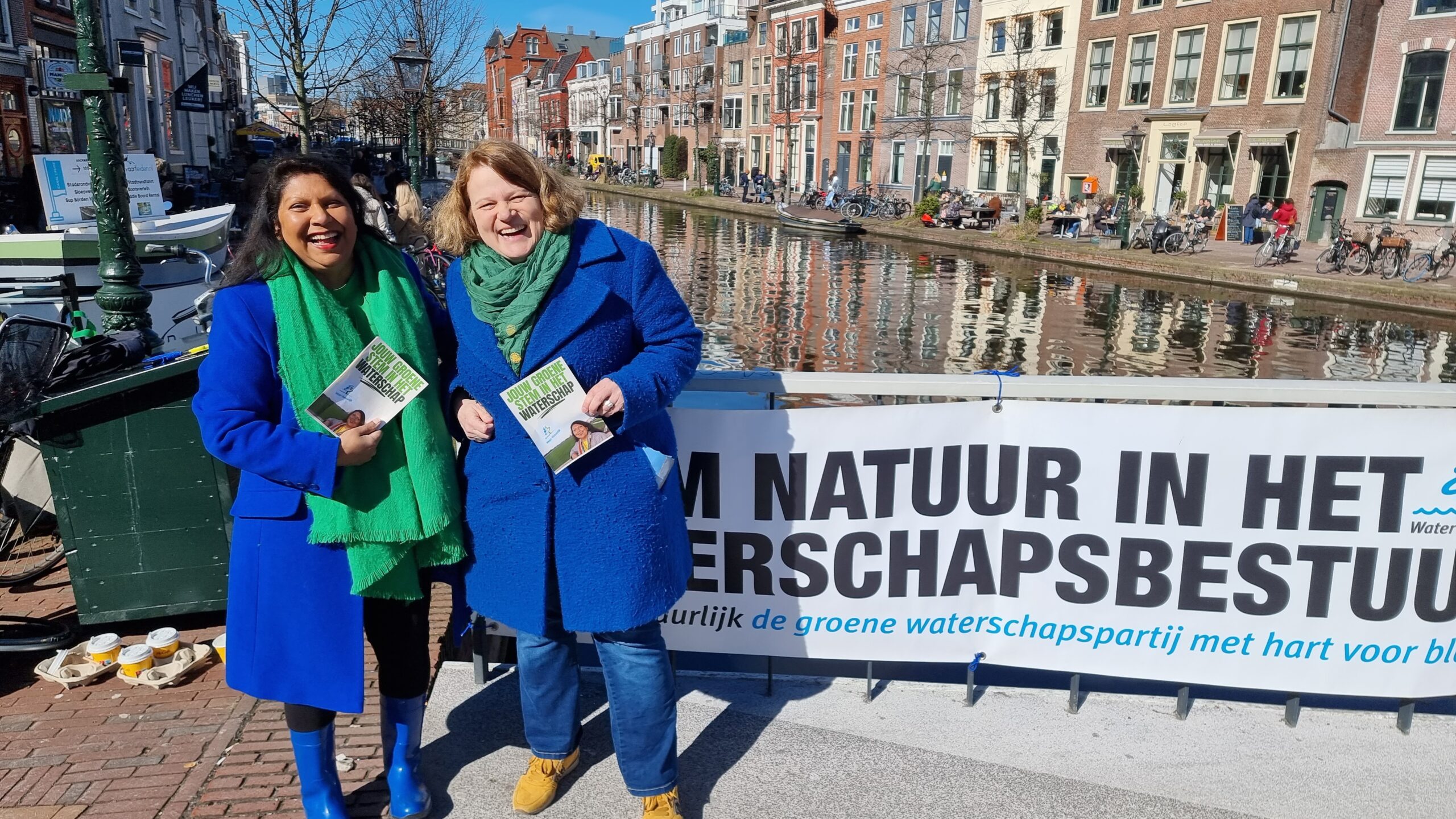 Voor die laatste verkiezingen leveren twee deelnemende partijen een Leidse lijsttrekker. Of eigenlijk vier partijen, want achter Water Natuurlijk gaan maar liefst drie politieke partijen schuil. Lijsttrekker Sita Dewkalie heeft haar roots bij GroenLinks, maar ze vertegenwoordigt tijdens deze campagne ook D66 en VOLT.