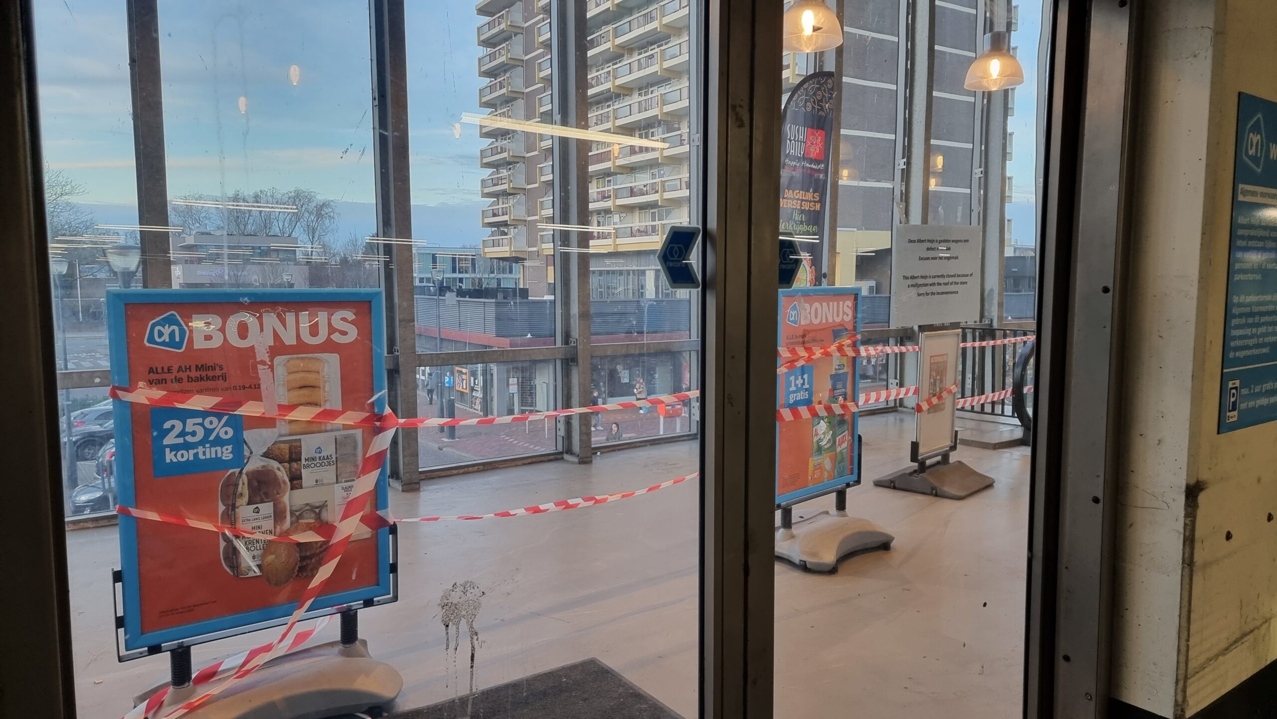 De AH XL supermarkt aan het Bevrijdingsplein in Leiden Zuidwest is donderdagavond met spoed gesloten. Er waren delen van het plafond naar beneden gekomen en het bedrijf wil geen enkel risico nemen.