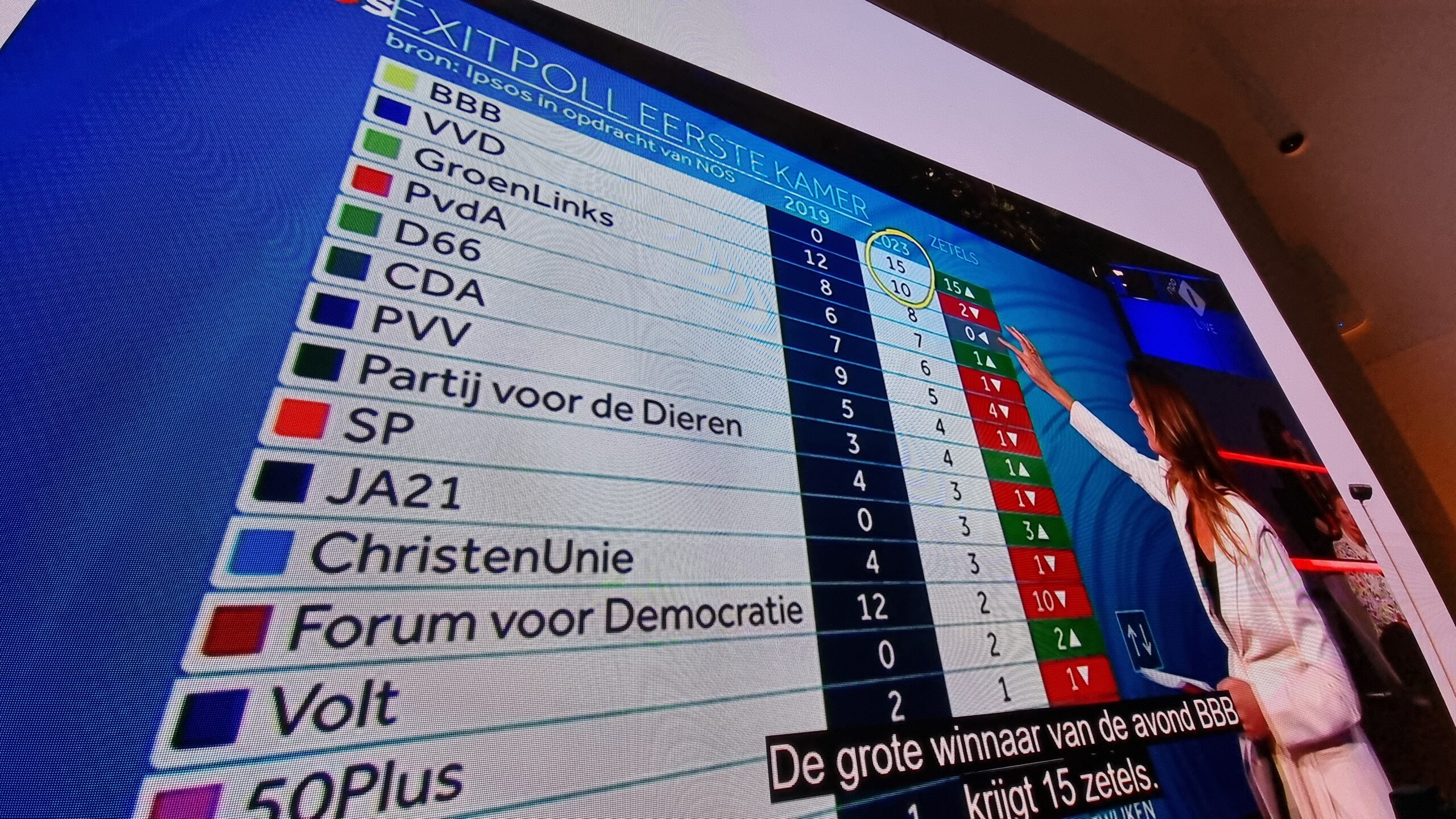 Optimisme is er sowieso bij de BoerBurgerBeweging. Lijsttrekker Hans Veentjer durft nog geen voorspelling te doen over het aantal zetels, maar anderen in het provinciehuis wel. “Ik denk dat zo zomaar tien zetels kunnen halen”, zegt provinciesecretaris Marcel van Bijnen. “Maar hoeveel het er ook worden, we gaan de gekozen statenleden goed wegwijs maken.” Die aspirant statenleden van BBB Zuid-Holland zijn overigens al maanden bezig met de provinciale politiek. “We hebben ze bijvoorbeeld al vaak gezien bij commissievergaderingen.”