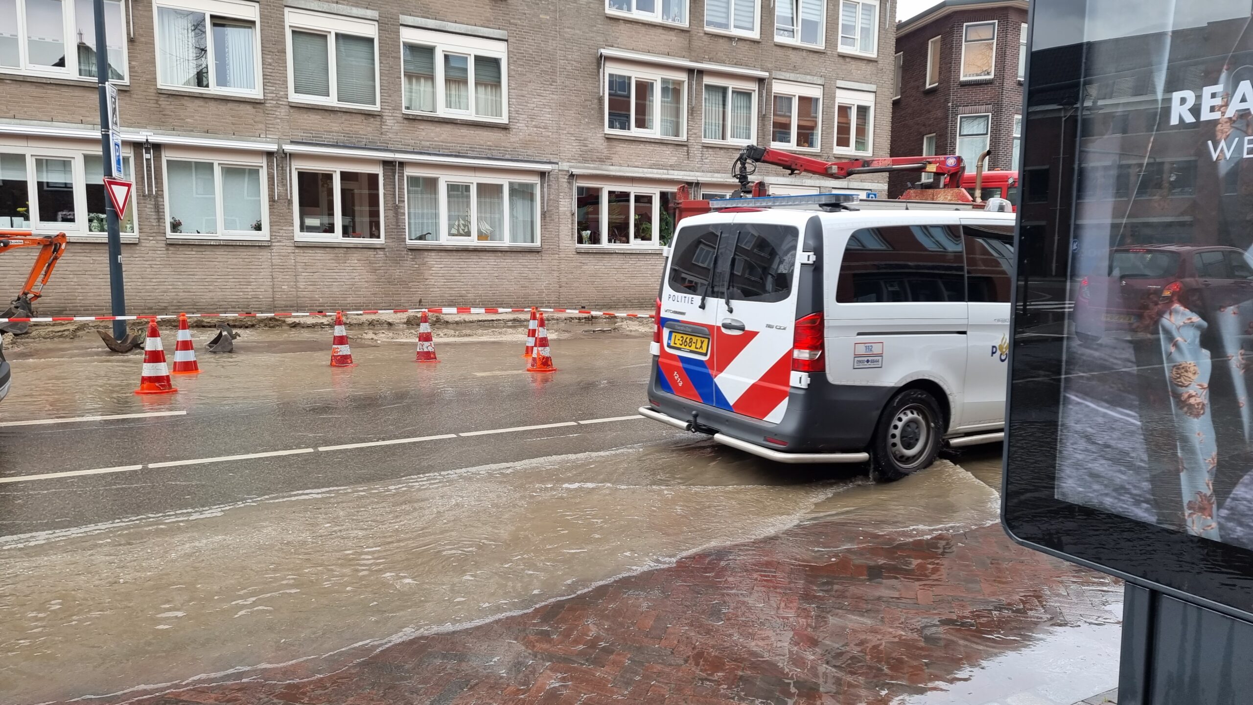Bij graafwerkzaamheden op het Levendaal is vrijdagmiddag een waterleiding door een graafmachine geraakt. Er is in korte tijd een flinke hoeveelheid water weggestroomd in de graafsleuf en op het wegdek.