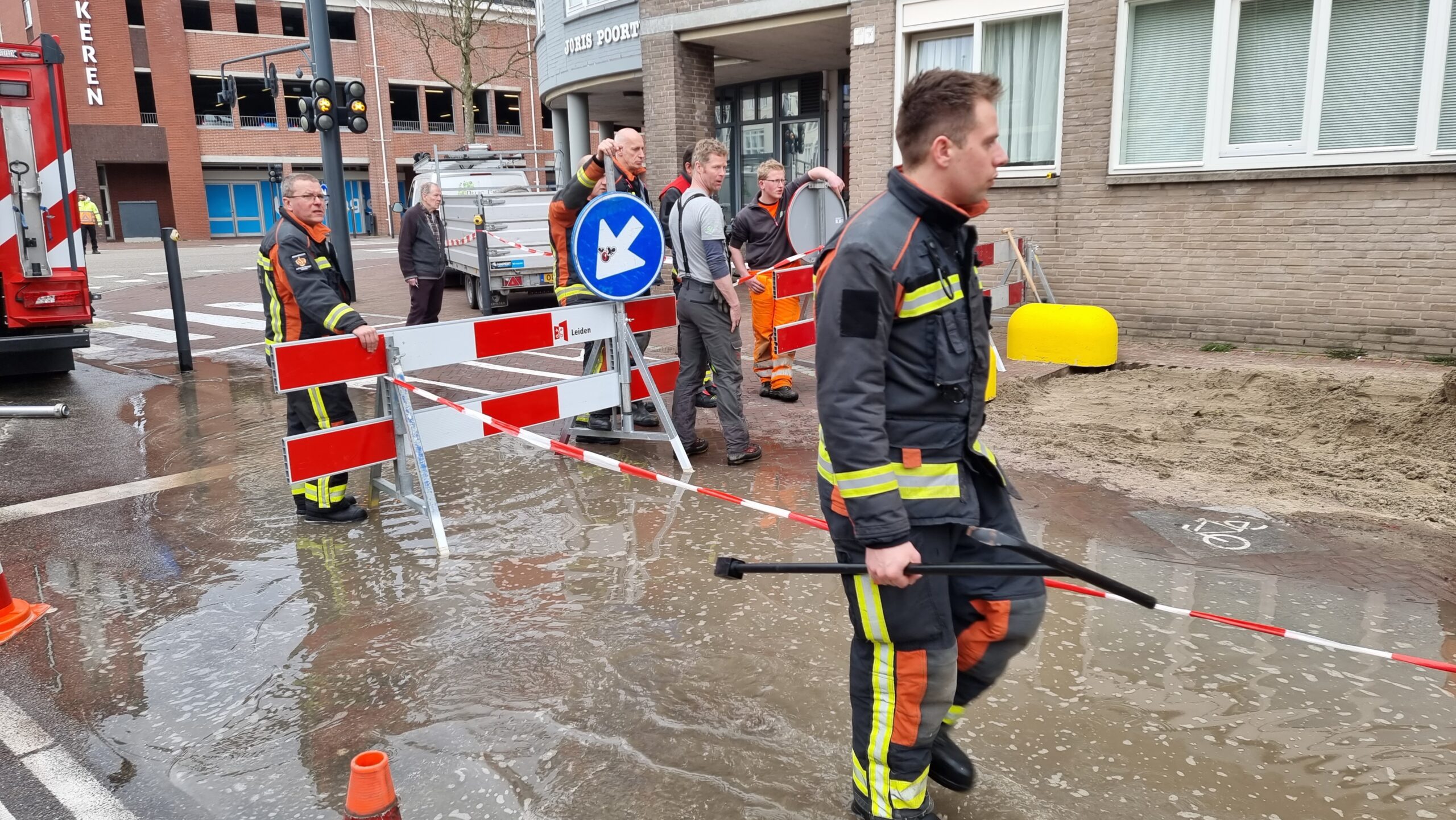 Het Levendaal is net voor de kruising met de Sint Jorissteeg en de Oranjeboomstraat deels afgesloten vanwege het water en de werkzaamheden.