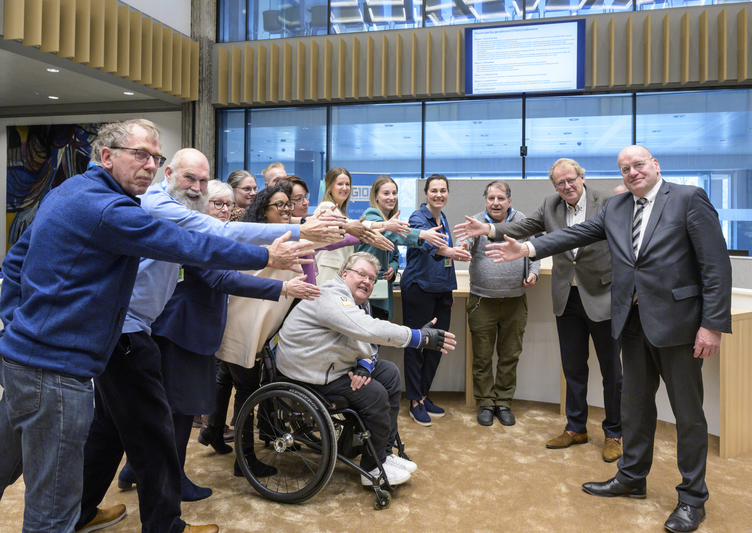 Tijdens de slotconferentie van de G1000Zuid-Holland hebben de deelnemers de drie Burgerakkoorden afgelopen zaterdag definitief vastgesteld en samengevoegd tot één Provinciaal Burgerakkoord. Dit akkoord hebben zij overhandigd aan commissaris van de Koning Jaap Smit en aan Fred Teeven die als verkenner aan de slag is om te kijken uit welke partijen een nieuw provinciebestuur zou kunnen bestaan. Ook alle fractievoorzitters van de Provinciale Staten kregen het akkoord, vergezeld door het verzoek om de voorstellen mee te nemen naar de coalitieonderhandelingen.