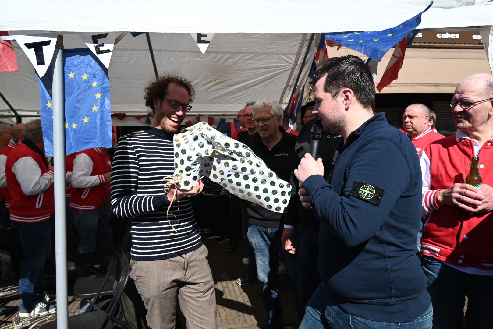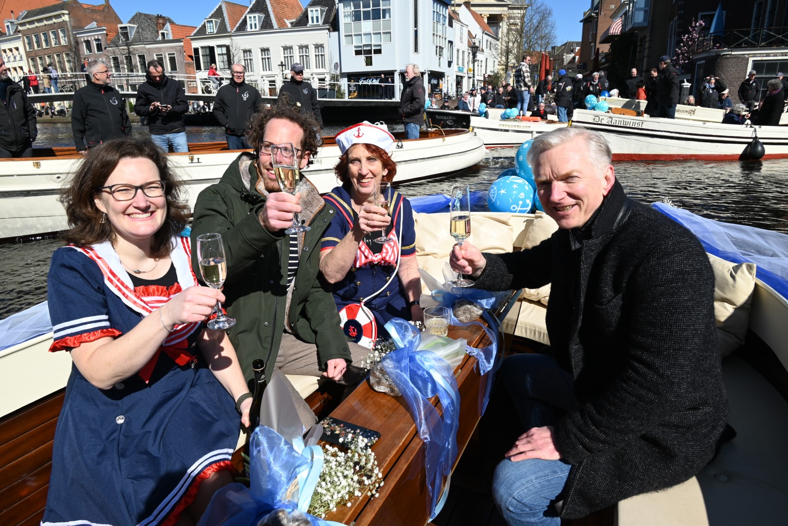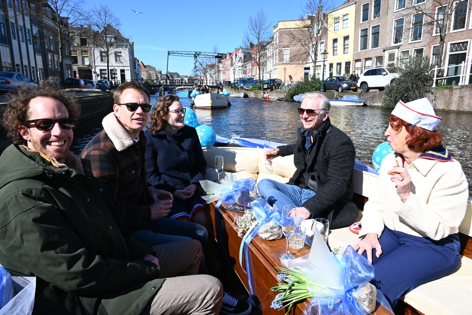Het afscheidsfeest bestond uit een rondvaart door de stad met onderweg allerlei toespraken en een feest op de Apothekersdijk onder muzikale begeleiding van K&G 3. Met veel mensen, cadeaus en nog meer speeches. Zelfs Sinterklaas, voor wie de Leidse Rederij al jaren het laatste stuk van de intocht verzorgt, kwam langs om afscheid te nemen. Zo wilden zijn collega’s een waardig afscheid verzorgen voor de man die doorgaans zelf van alles organiseert en regelt in de stad.