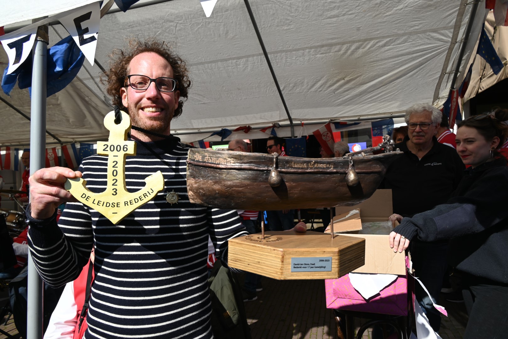 Daaf Sloos stopt na zeventien jaar bij De Leidse Rederij. Gisteren namen de ruim honderd vrijwilligers en werknemers afscheid van hun voorman tijdens een groots Vaar-welfeest. “Daaf wordt vervangen door twee vrouwen en een 2.06 meter lange man. Samen met het team gaan ze er nog een behoorlijke kluif aan krijgen”, speechte rederij-eigenaar Peter Labrujère tijdens het afscheid.