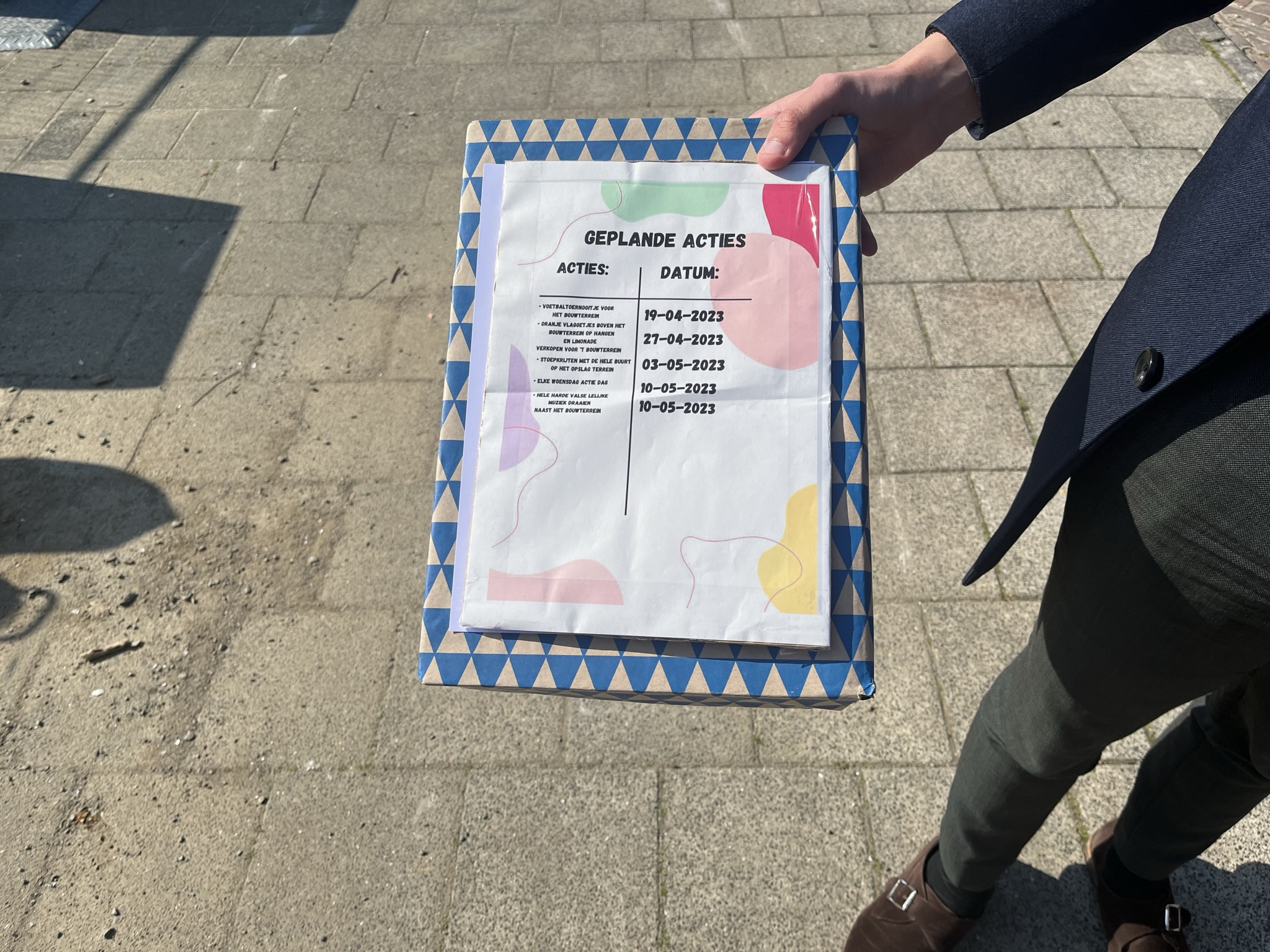 “We zijn gewend mee te denken en praten over onze wijk en dat hadden we over het opofferen van ons speelveldje ook graag gedaan”, laat Oskar de Kuijer namens bewoners van de Vogelwijk weten. De wijkbewoners zijn allerlei acties begonnen. Zo hebben kinderen een protestmars georganiseerd en lopen er een aantal bezwaarschriften. “We hopen dat we snel tot een alternatief kunnen komen zodat de acties kunnen stoppen”, zegt De Kuijer. Op maandagmiddag overhandigen zij een petitie, ondertekend door bijna 150 wijkbewoners, aan wethouder Ashley North. Naast de petitie overhandigen wijkbewoners Tirza en Elle ook een pamflet over de protestactie namens de kinderen uit de wijk.
