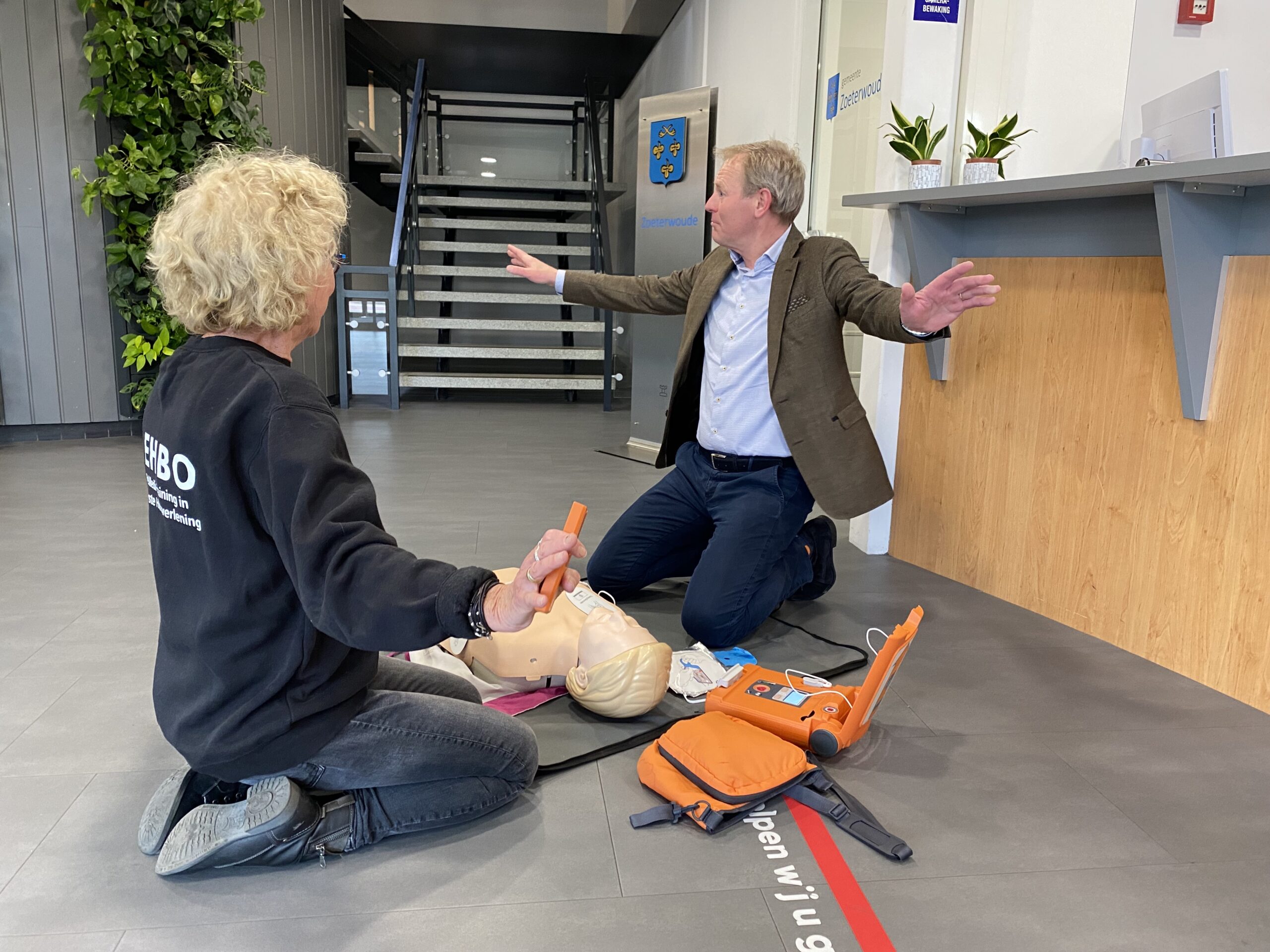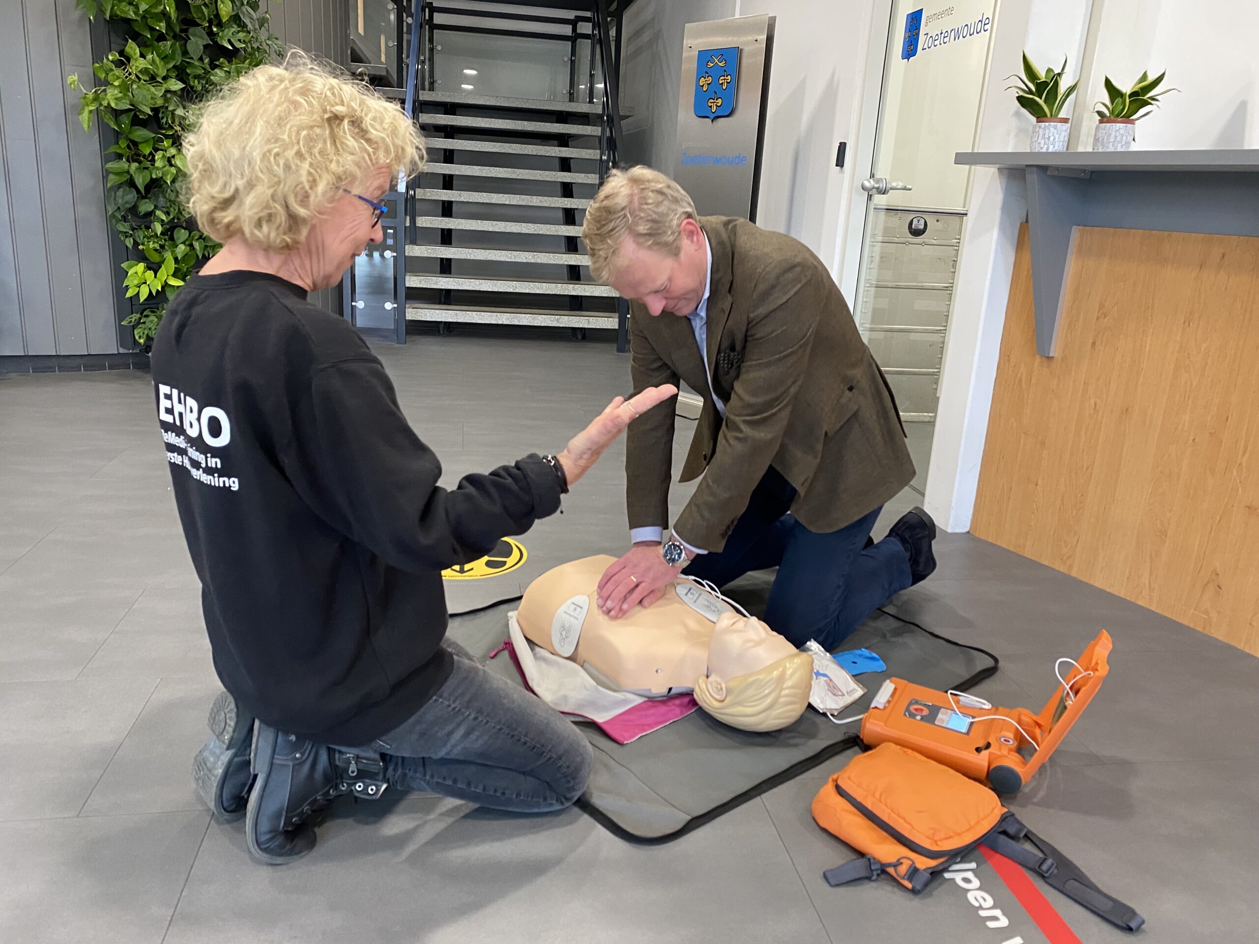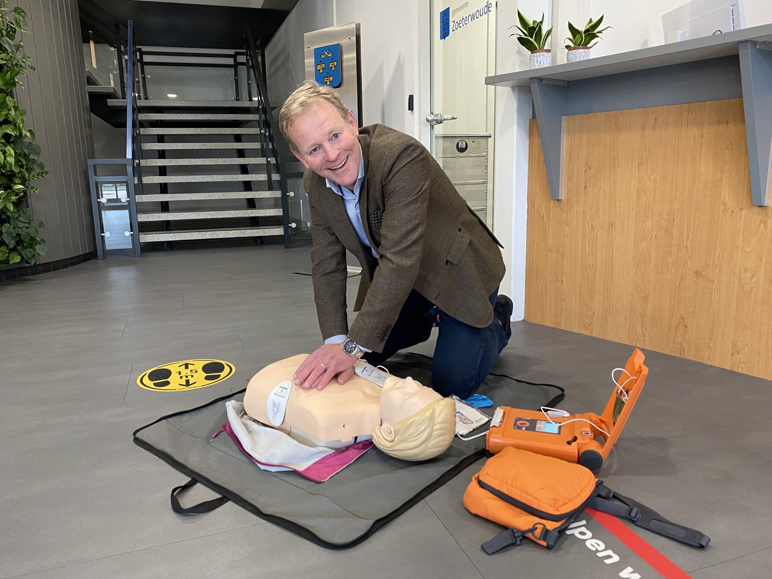 Zoeterwoude heeft vanaf deze week een sluitend AED netwerk. Dit betekent dat er in vrijwel de hele gemeente altijd een reanimatieapparaat op maximaal 500 meter afstand beschikbaar is. De gemeente doet nu een oproep aan alle inwoners om zich aan te melden als burgerhulpverlener en verzorgt een gratis opleiding. Burgemeester Fred van Trigt gaf dinsdagochtend zelf het goede voorbeeld en ‘reanimeerde’ een pop in de hal van het gemeentehuis.