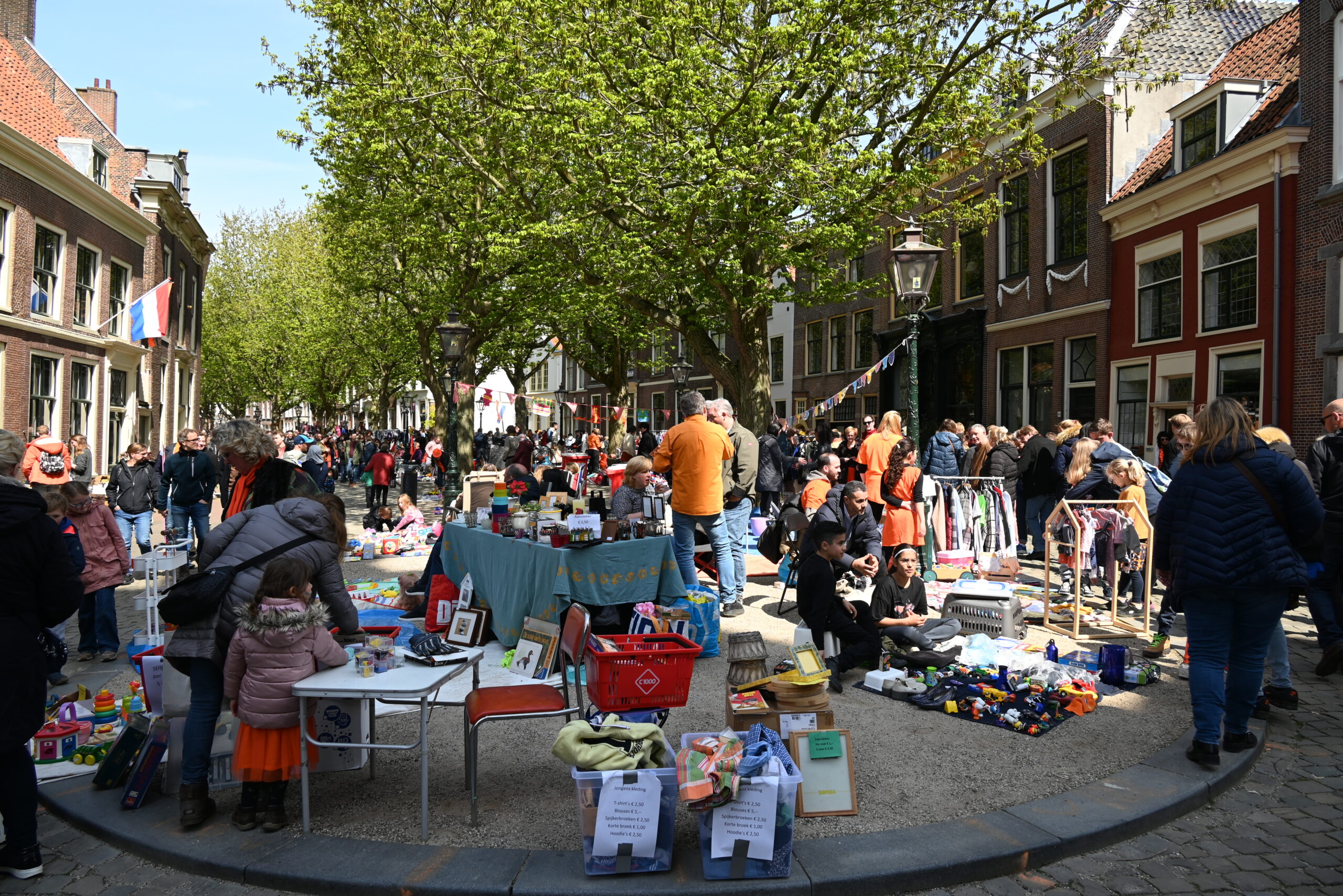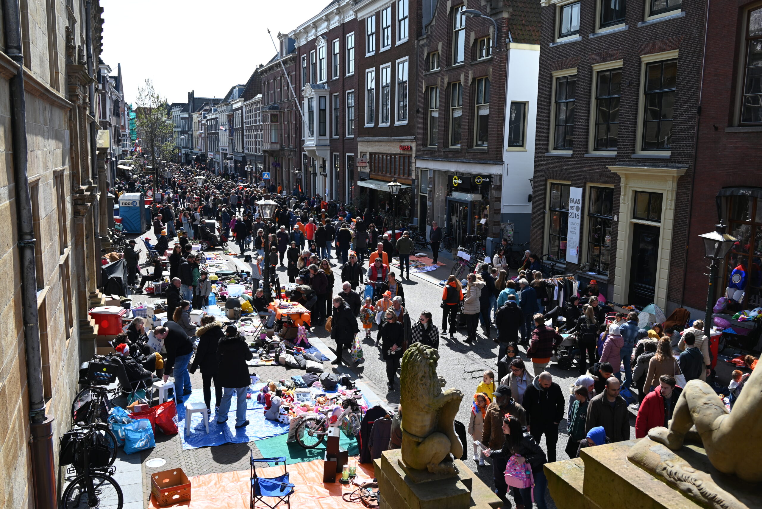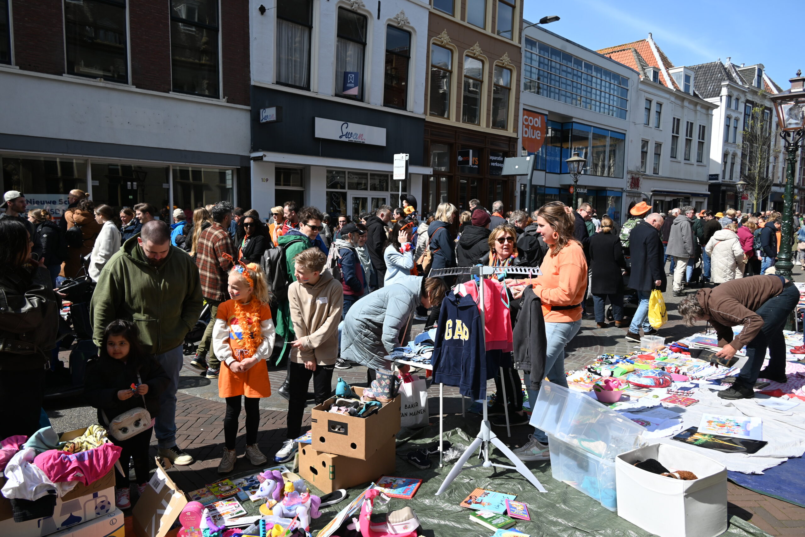 De Breestraat was traditiegetrouw afgesloten voor alle bussen en bood ruimte aan een drukke vrijmarkt: