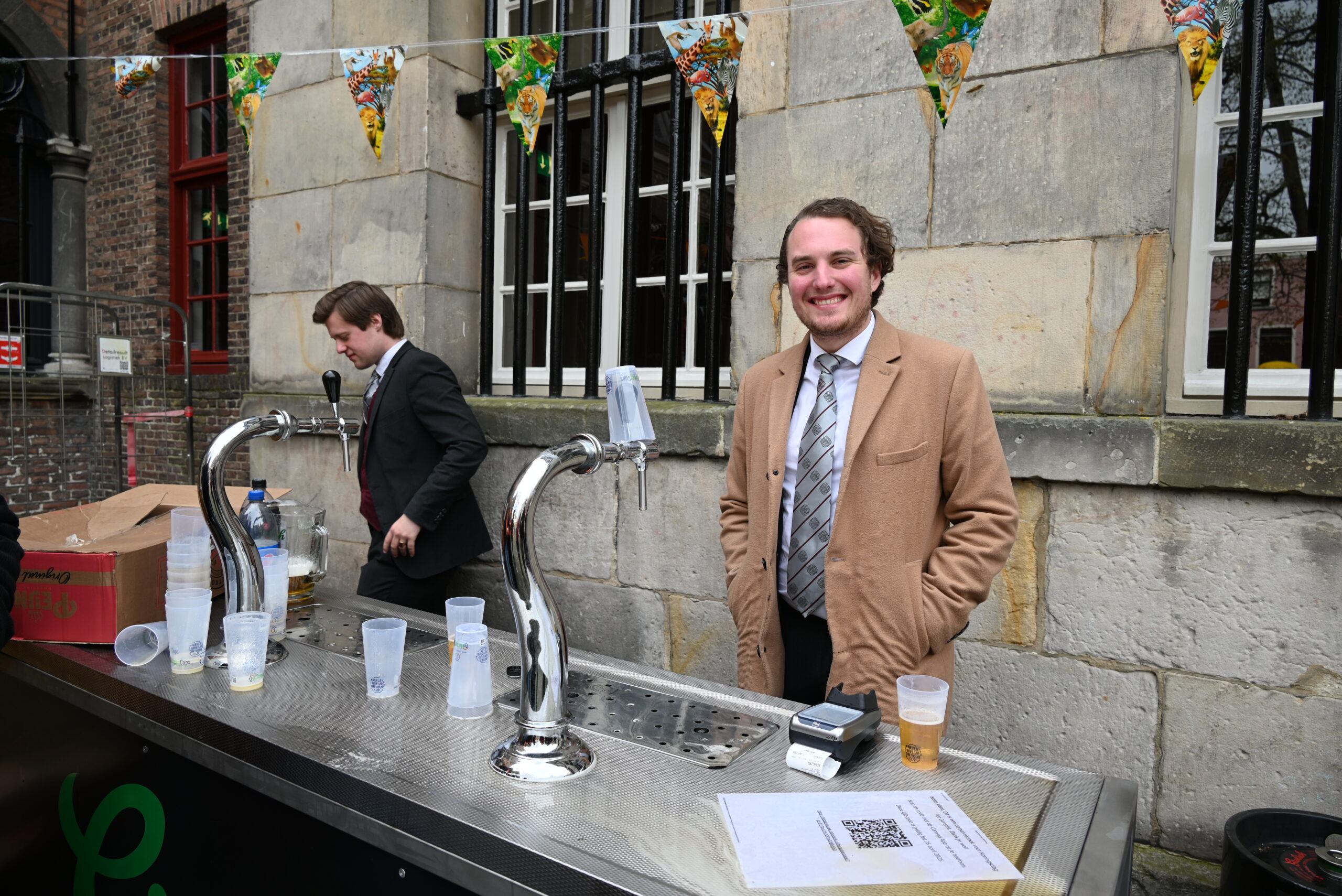 Ook op de Hooglandse Kerkgracht werden goede zaken gedaan in een mager zonnetje: