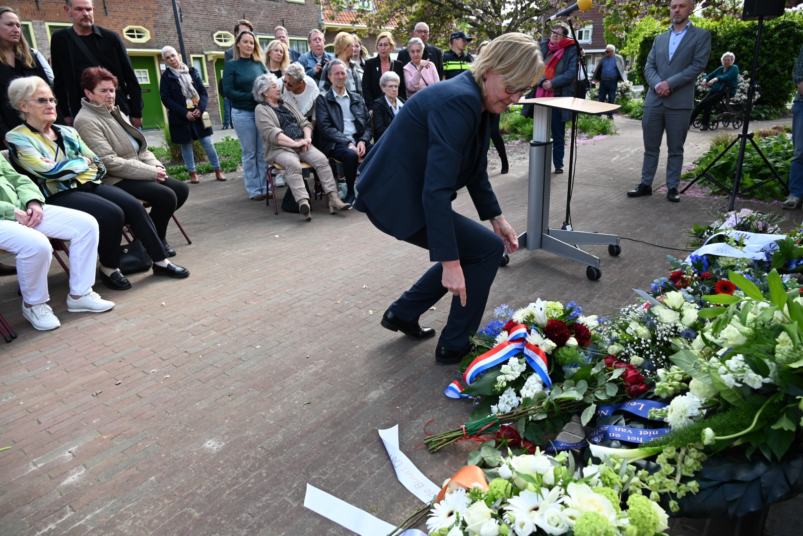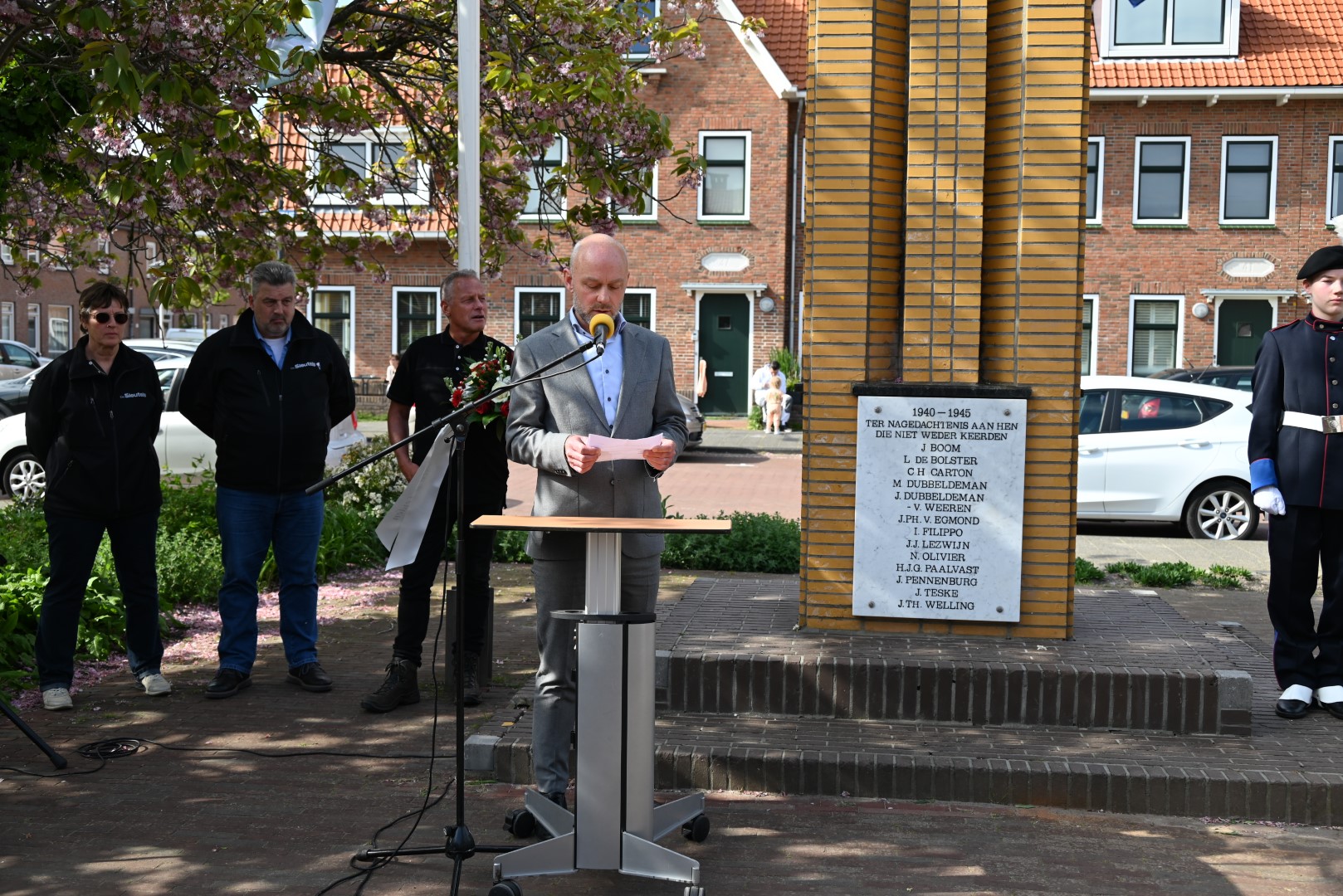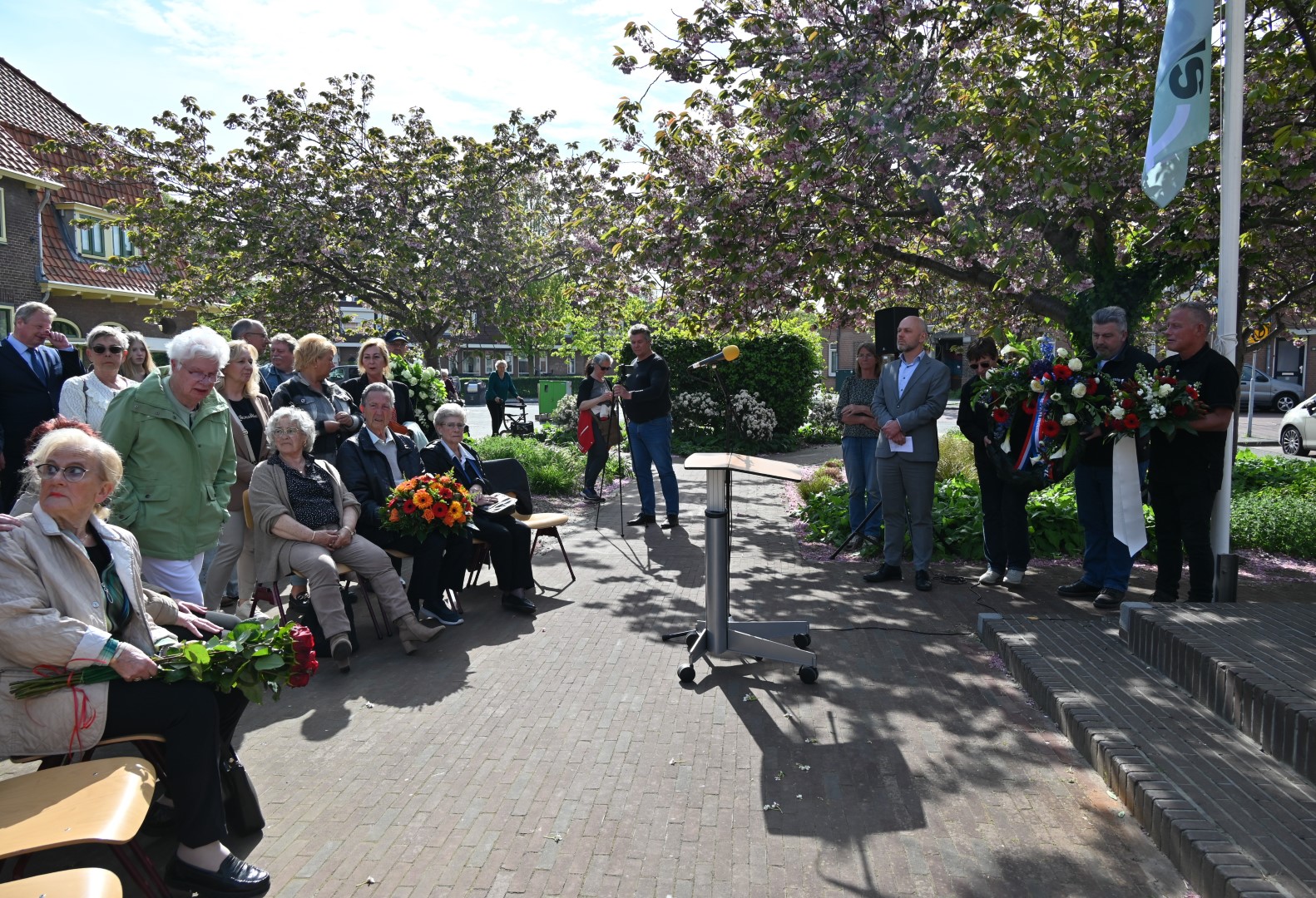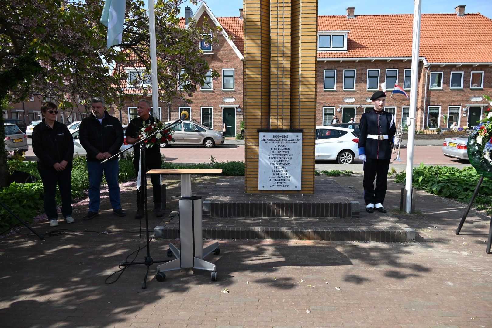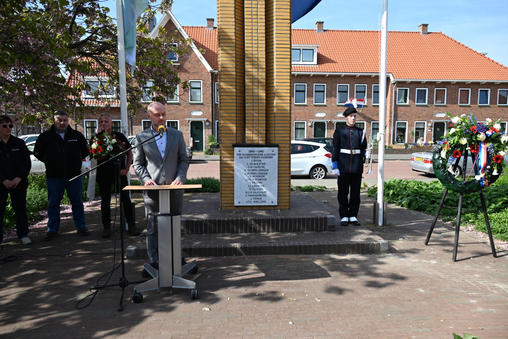 Er werd gesproken door de nieuwe directeur Danny Wijnbelt van De Sleutels en door locoburgemeester Ashley North die zelf ook in de wijk woont. Daarna werden de namen voorgelezen en legden nabestaanden en organisaties een krans of bloemen.