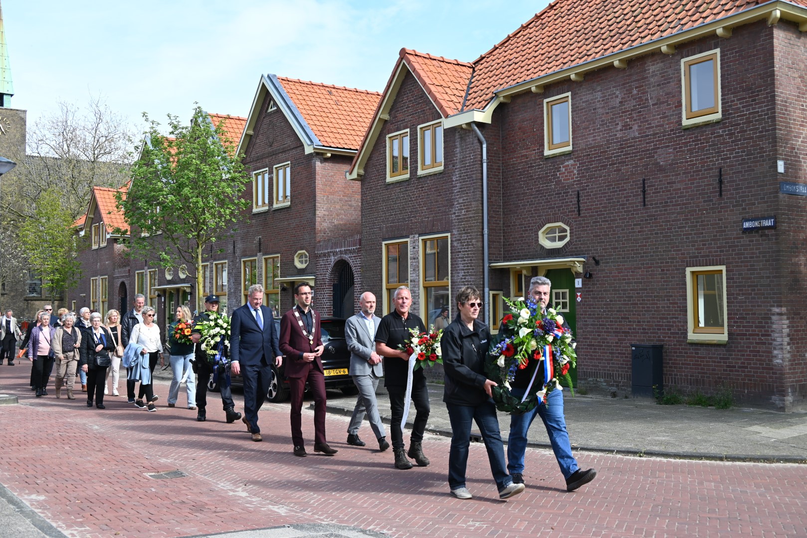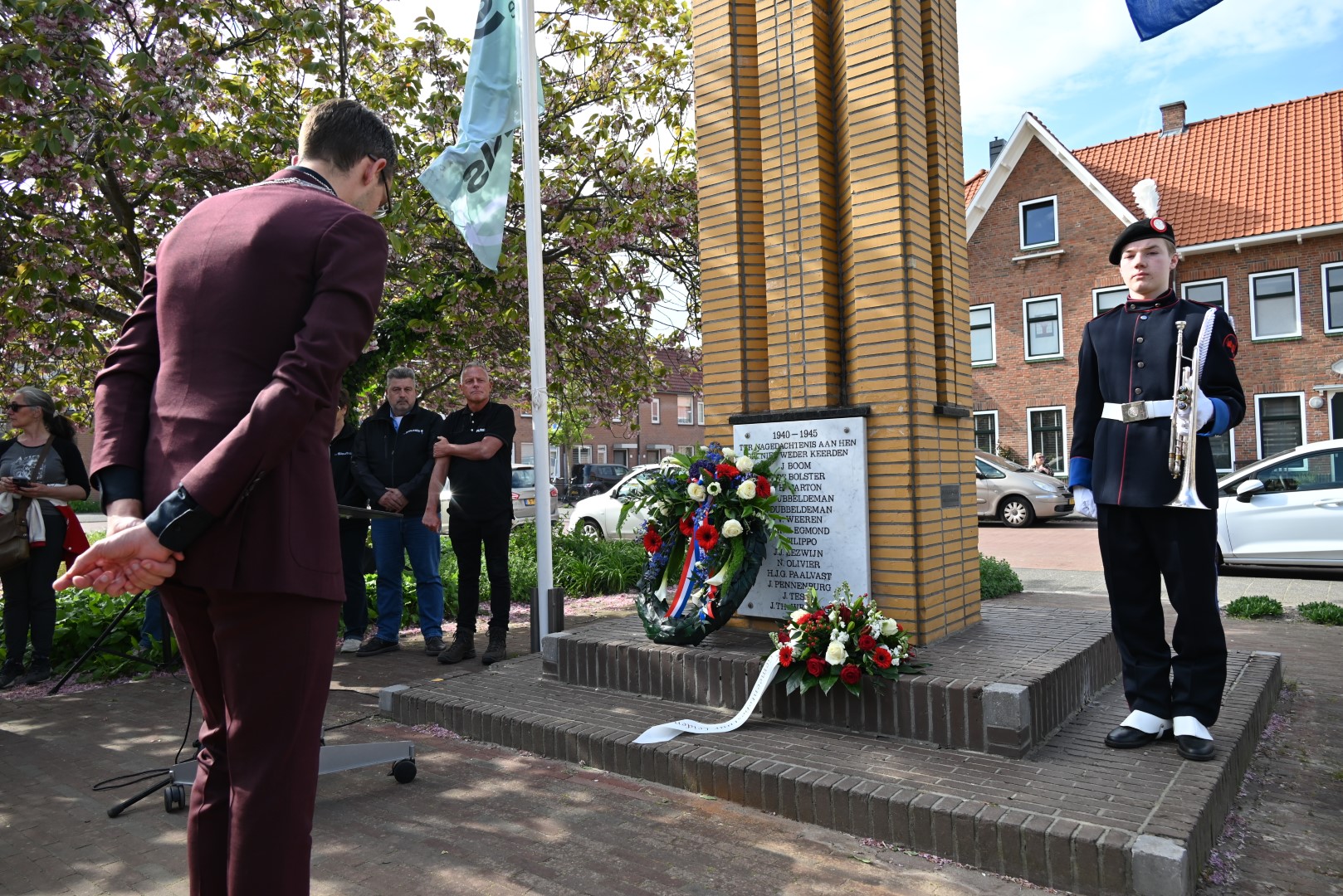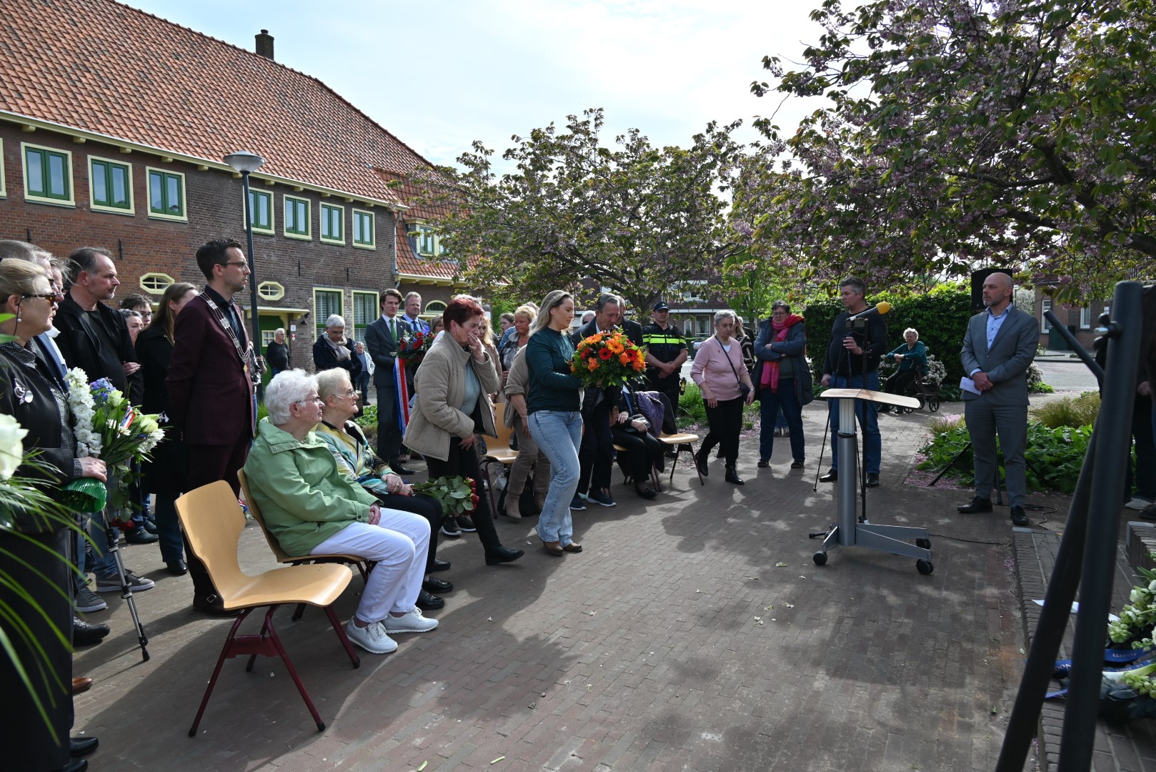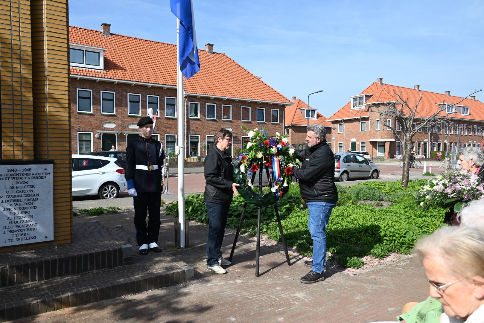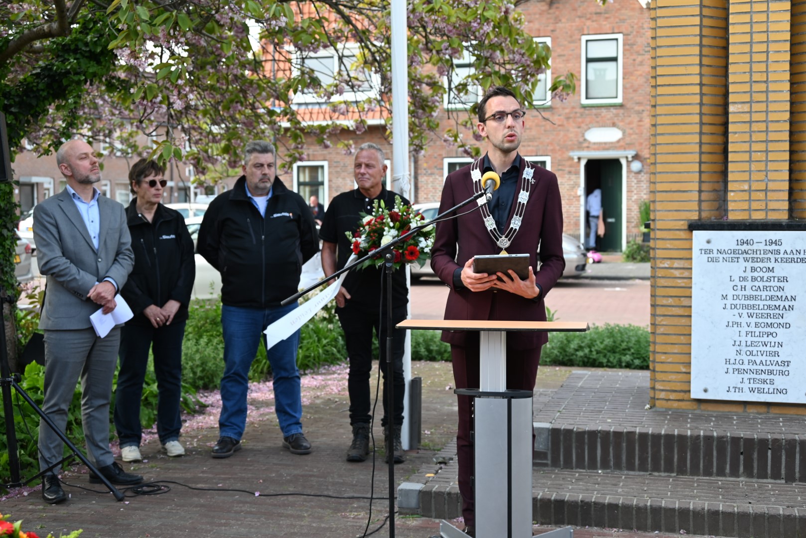 Er werd gesproken door de nieuwe directeur Danny Wijnbelt van De Sleutels en door locoburgemeester Ashley North die zelf ook in de wijk woont. Daarna werden de namen voorgelezen en legden nabestaanden en organisaties een krans of bloemen.