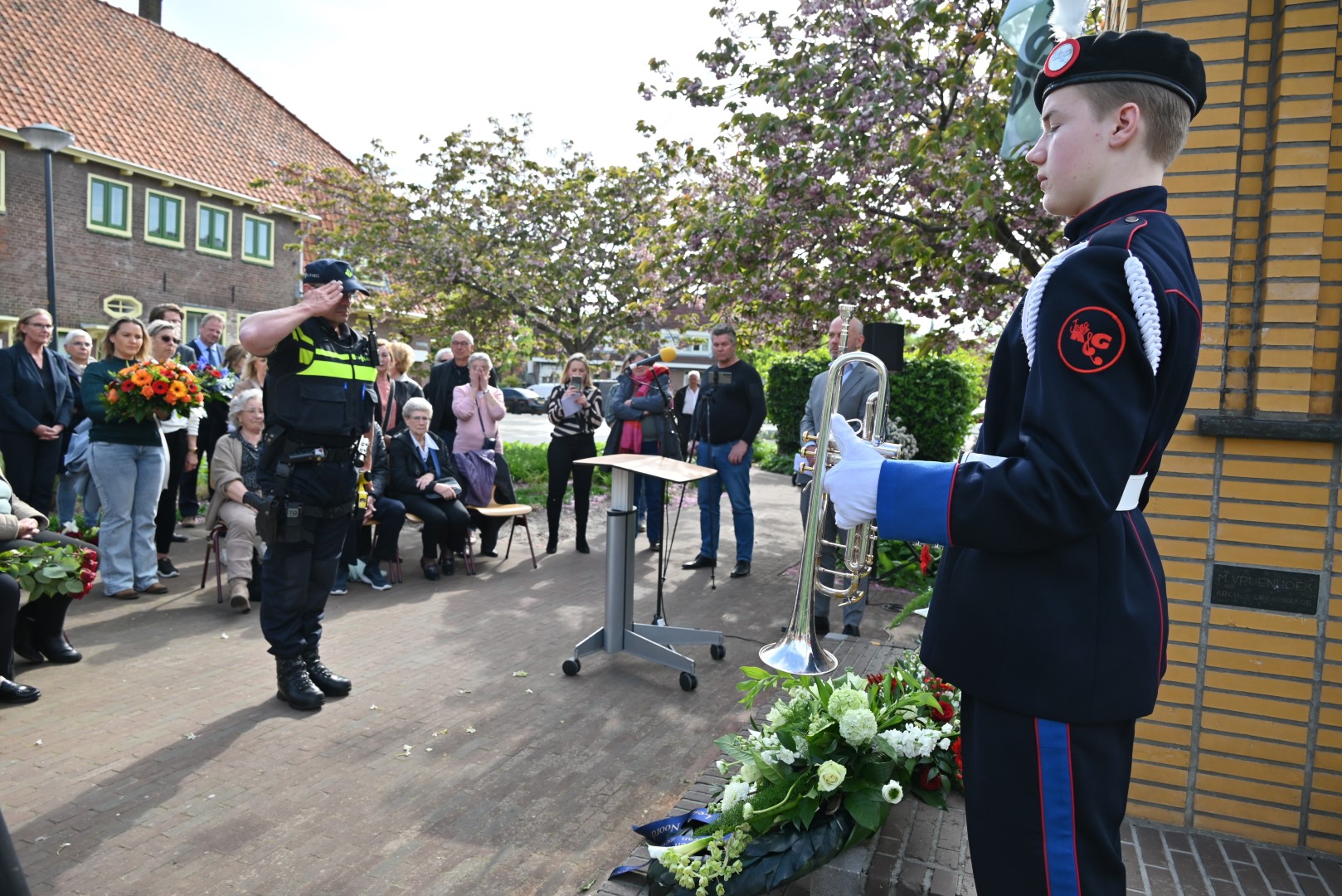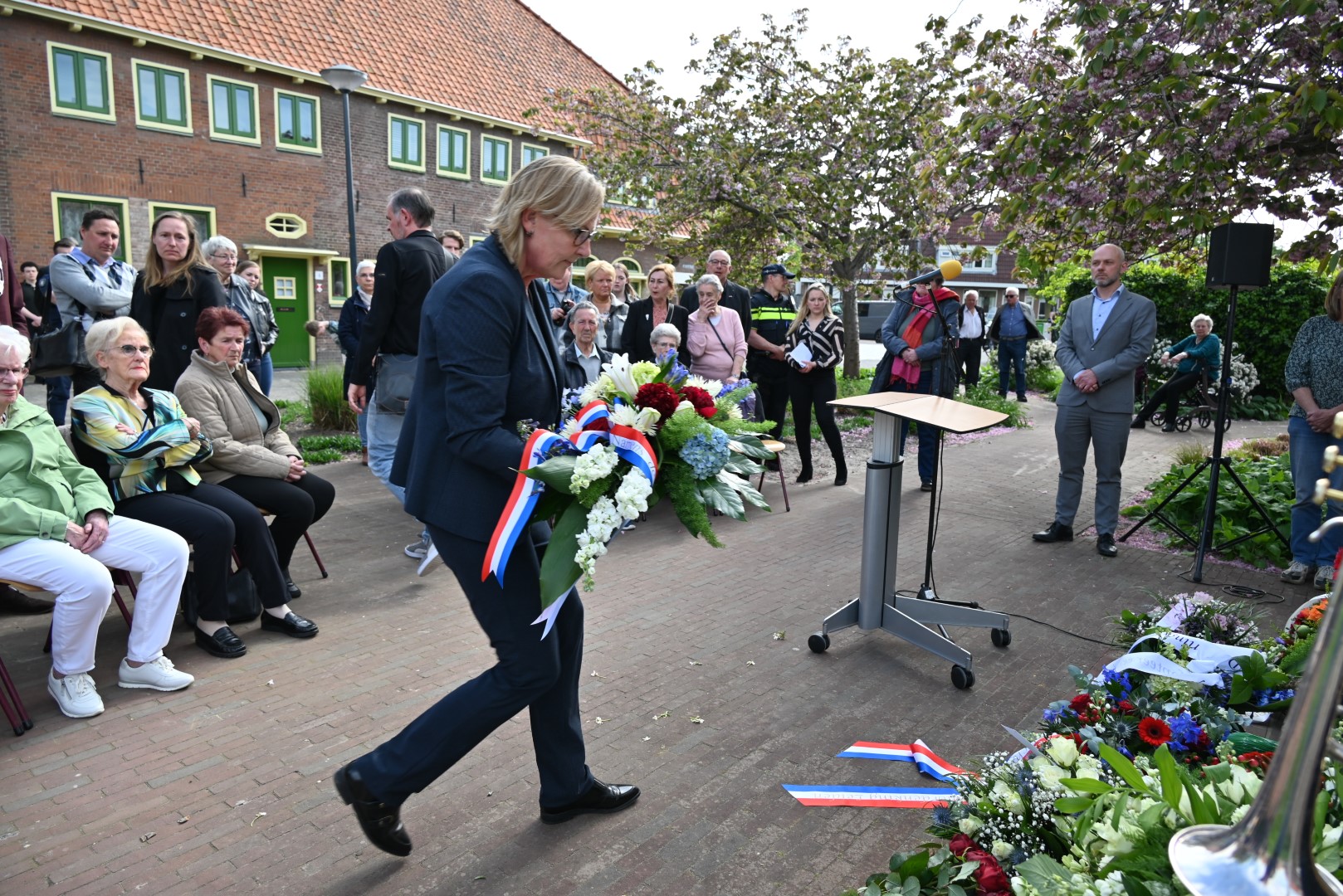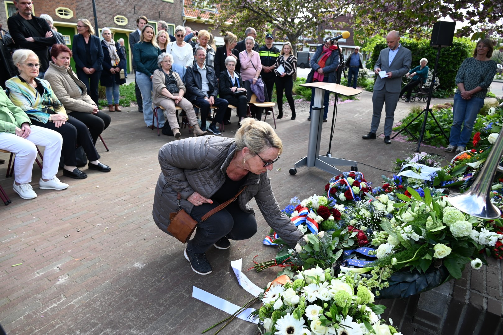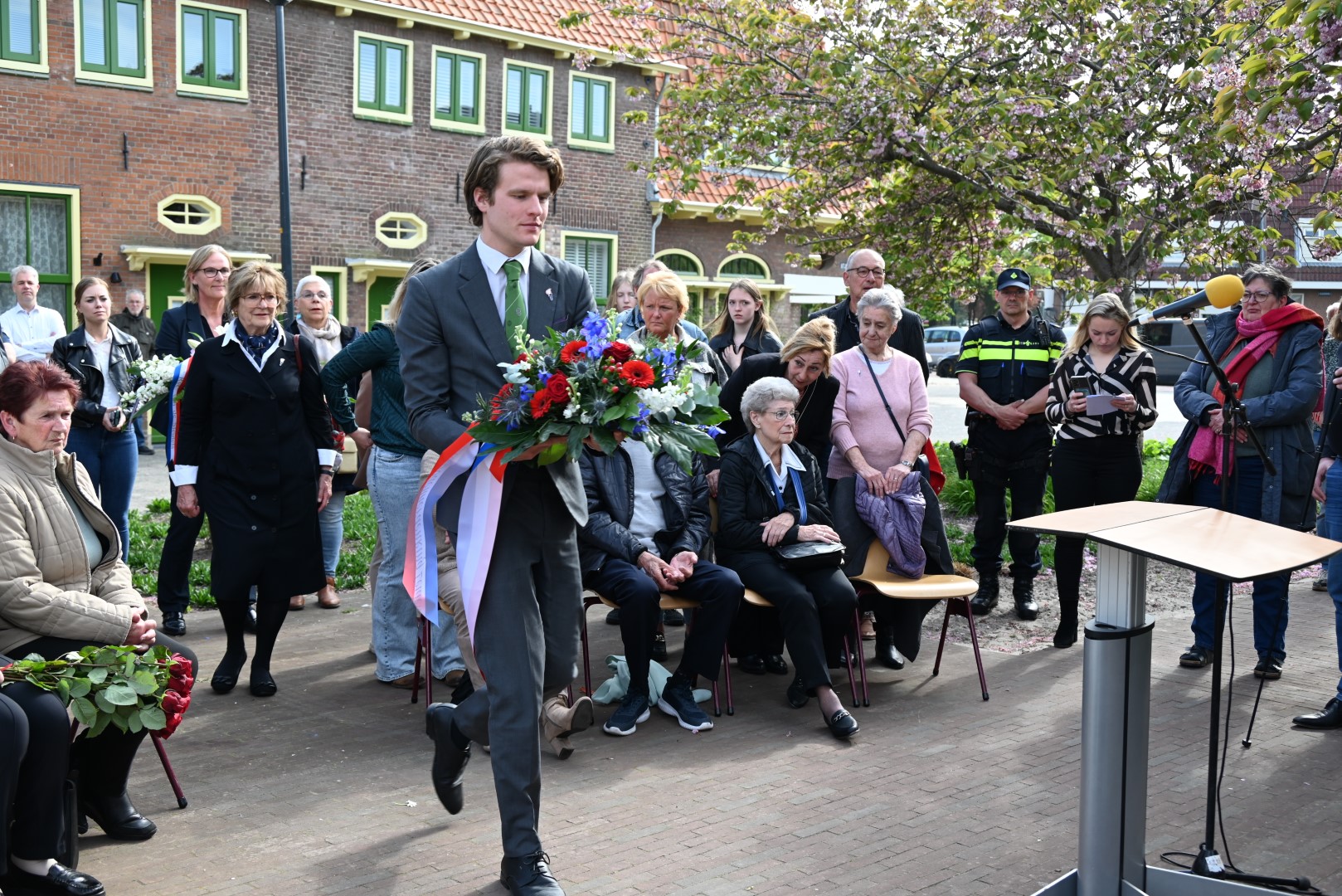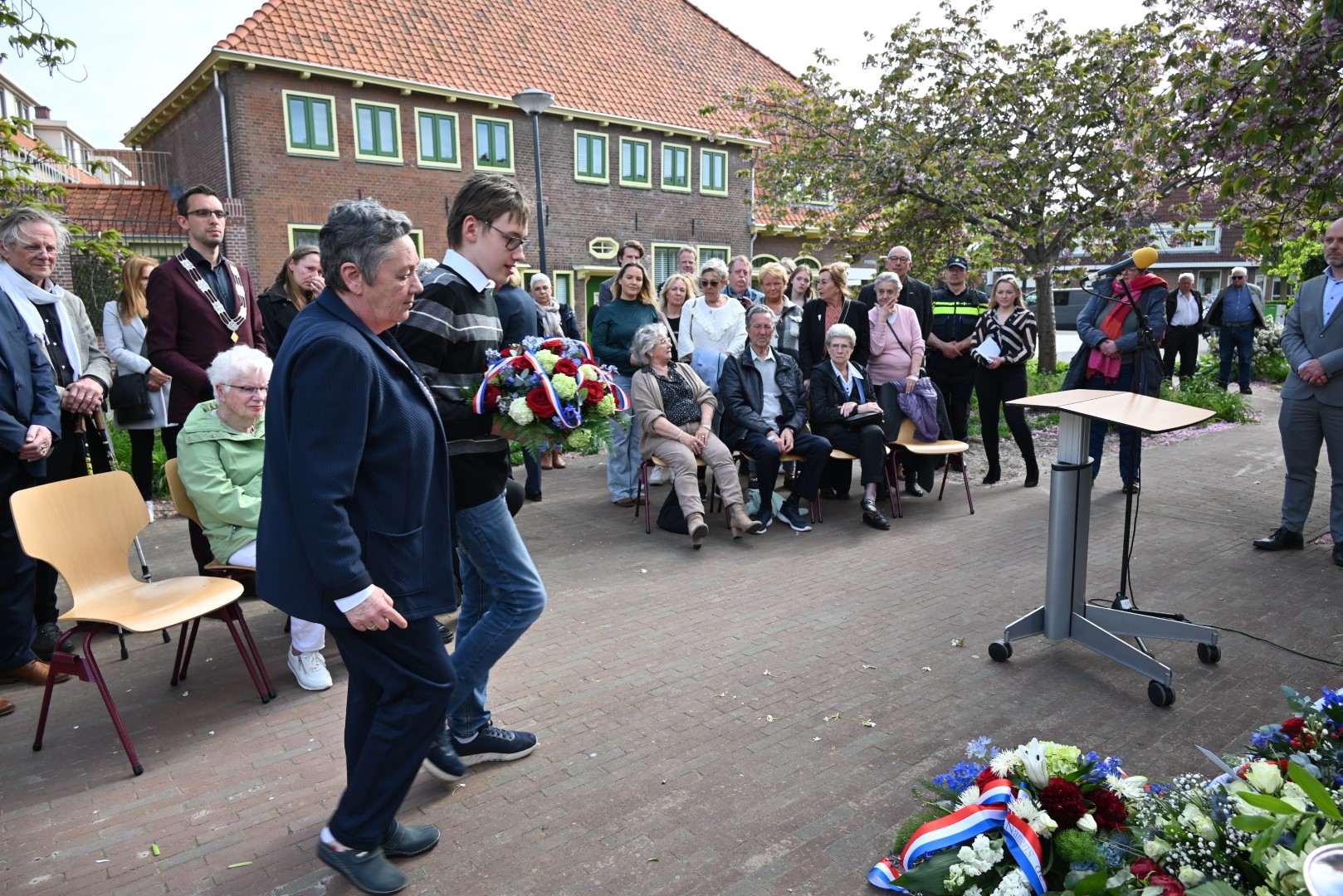Er werd gesproken door de nieuwe directeur Danny Wijnbelt van De Sleutels en door locoburgemeester Ashley North die zelf ook in de wijk woont. Daarna werden de namen voorgelezen en legden nabestaanden en organisaties een krans of bloemen.