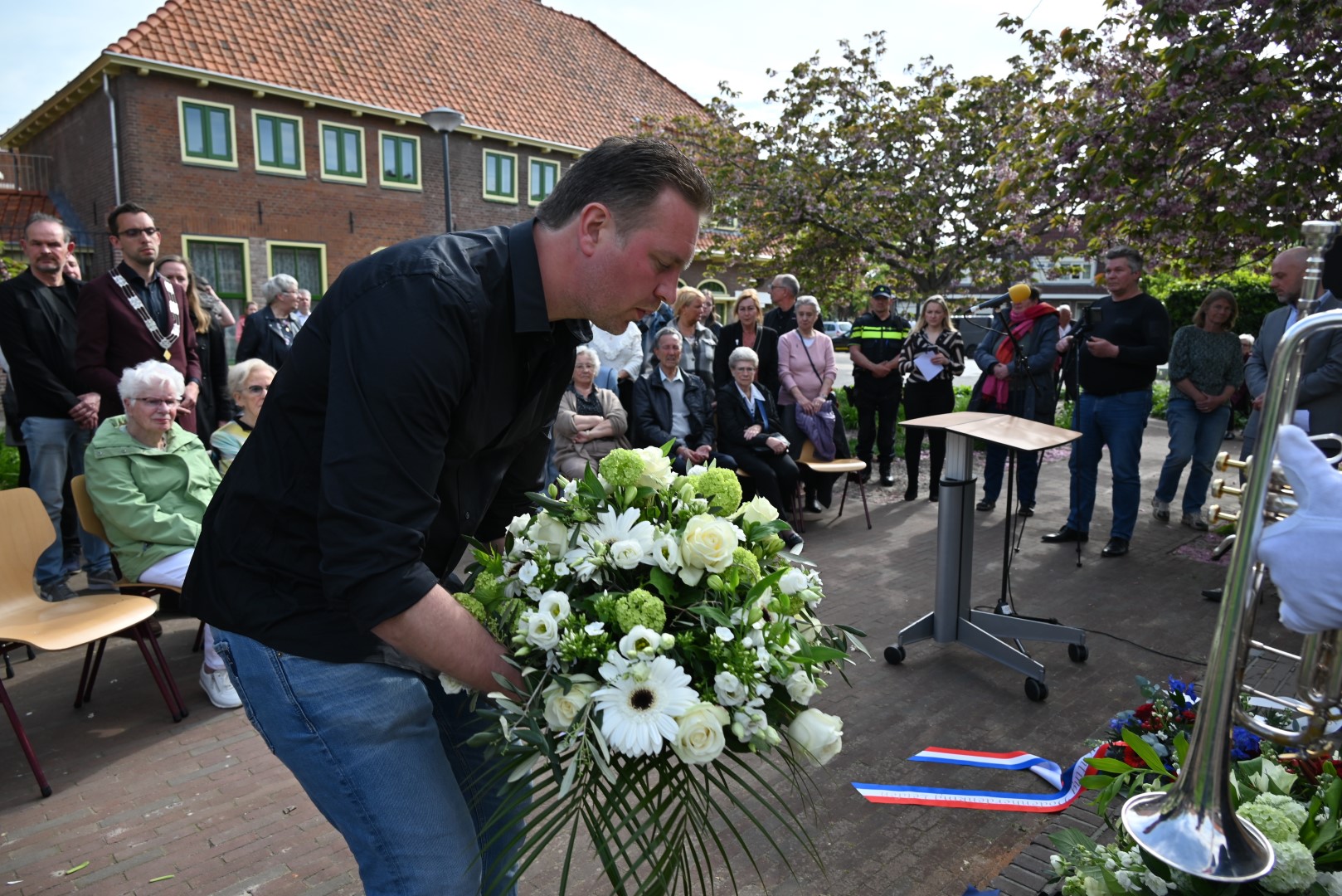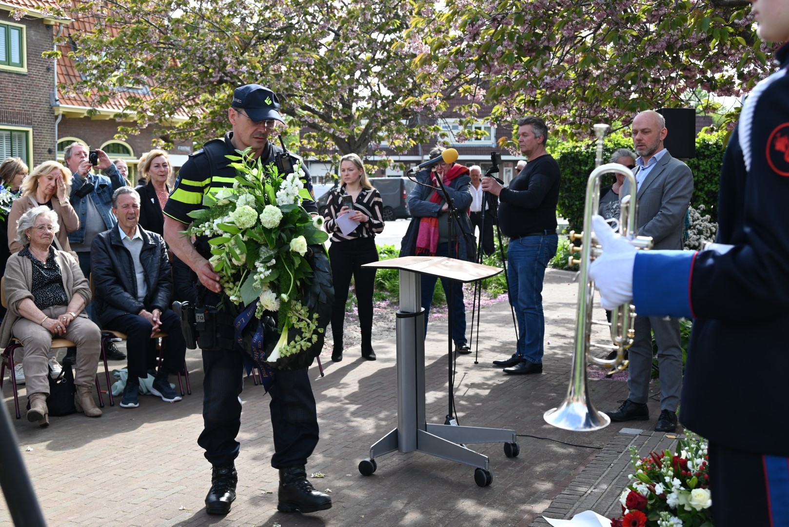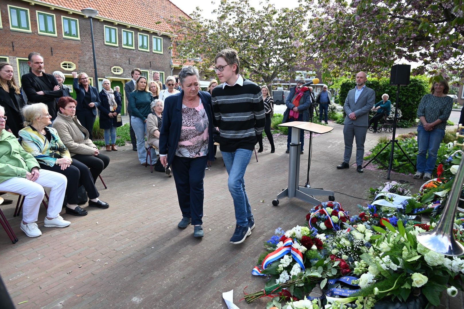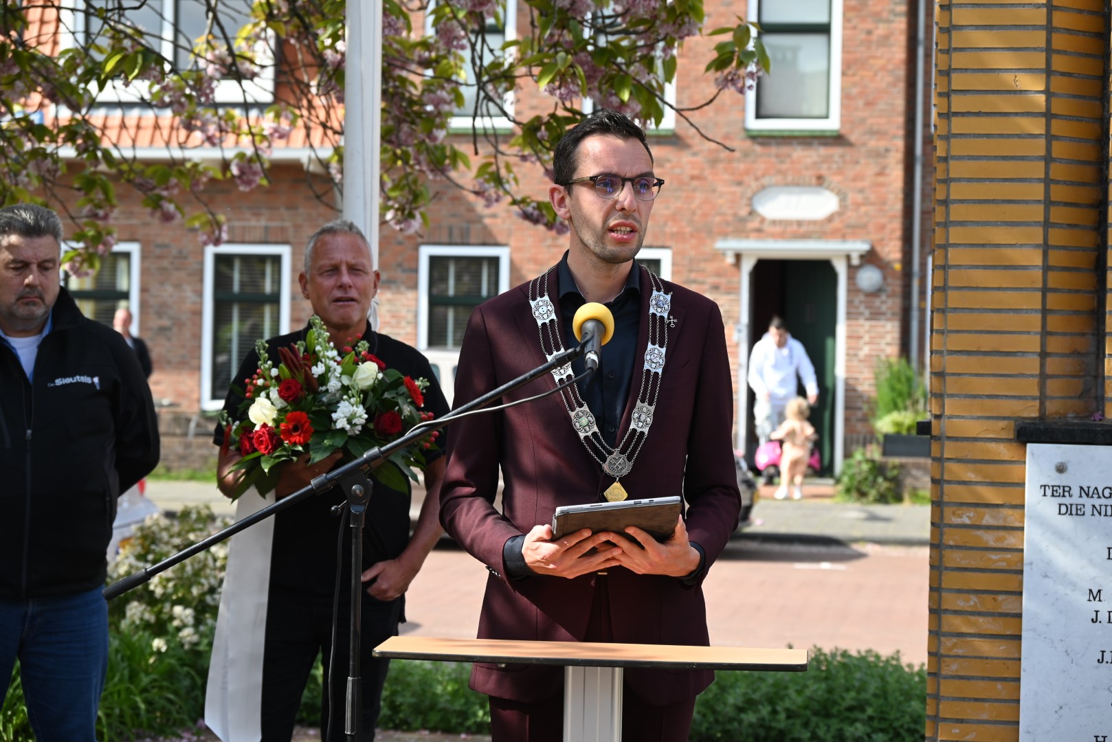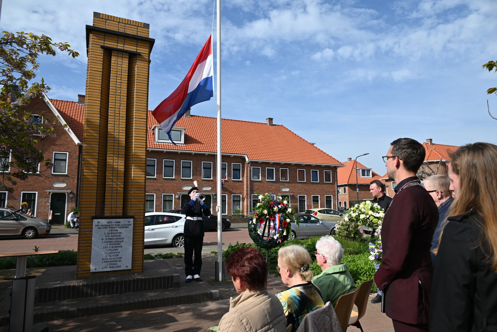 Er werd gesproken door de nieuwe directeur Danny Wijnbelt van De Sleutels en door locoburgemeester Ashley North die zelf ook in de wijk woont. Daarna werden de namen voorgelezen en legden nabestaanden en organisaties een krans of bloemen.