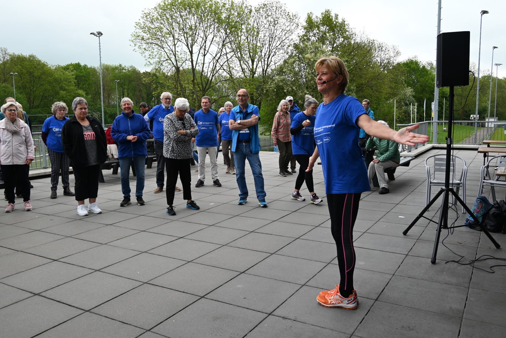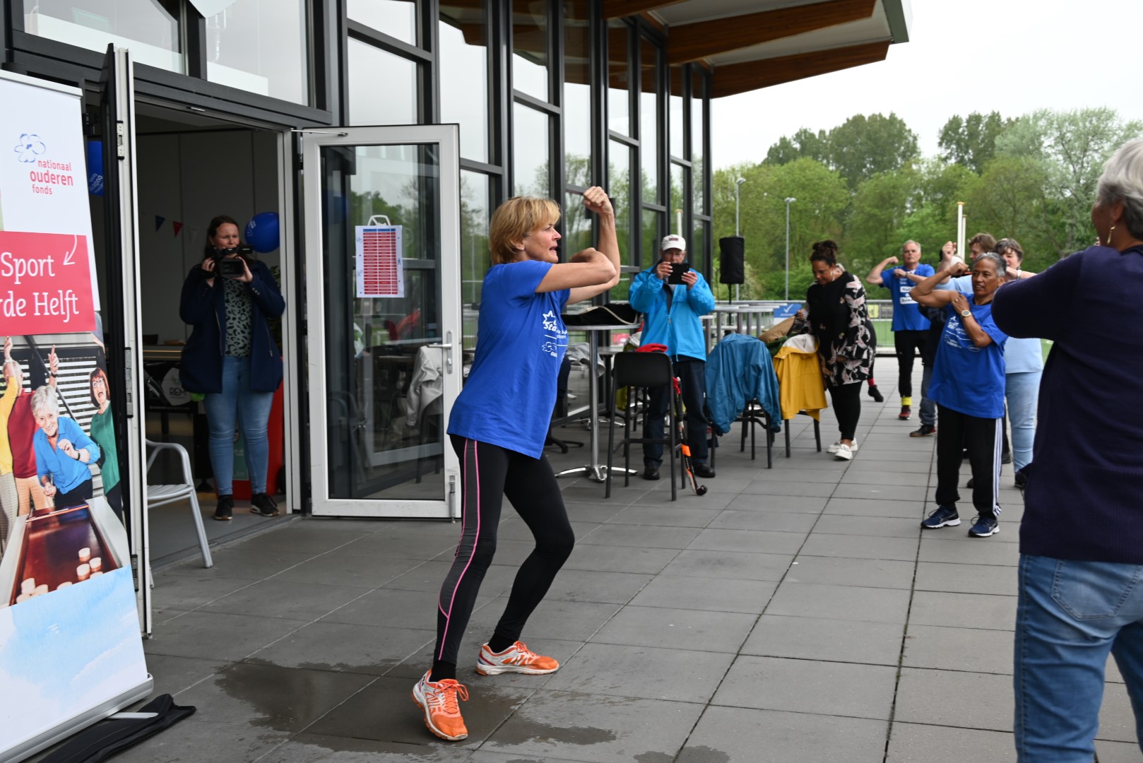 Wegens de goede connectie met het Nationaal Ouderenfonds was het voor Clubhuis de Derde Helft al snel duidelijk dat Olga Commandeur de juiste persoon was om een les bewegen te geven op het Vitaliteitsplein. Het enthousiasme van Commandeur en de deelnemers van haar les bevestigden dat alleen maar. “Ik dacht dat ze aan een kwartiertje genoeg had, maar ze is al drie kwartier bezig”, zegt voorzitter Koos Koster van Clubhuis de Derde Helft vol bewondering. “Ze heeft er zin in, en de mensen ook.”