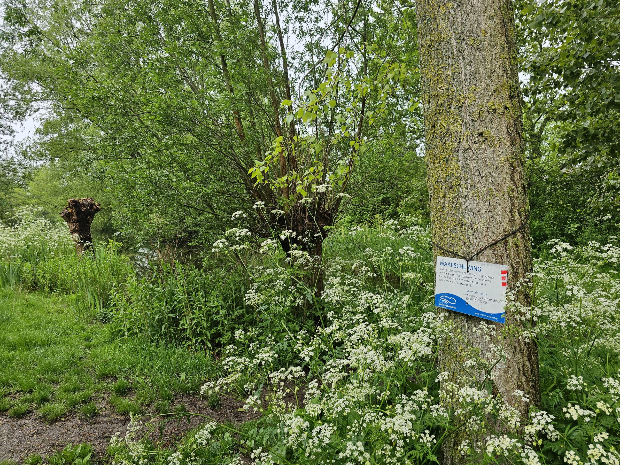 In het Roomburgerpark in Leiden hangen sinds kort waarschuwingsborden voor hondenbezitters. “Houd uw huisdieren aan de lijn en uit het water”, zo staat er te lezen. De reden daarvoor is dat het Hoogheemraadschap van Rijnland klemmen heeft laten plaatsen om muskusratten te vangen.
