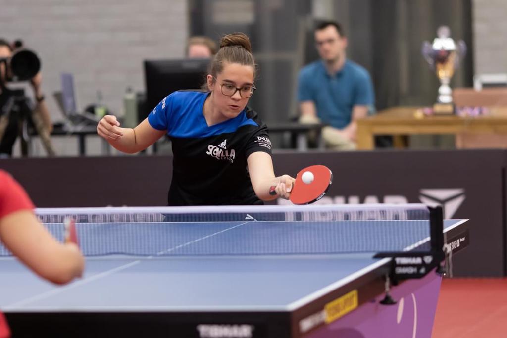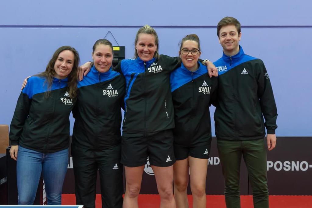 Namens Scylla mocht verdedigster Evelien Hengstman het spits afbijten tegen Sanne de Hoop. Een op papier ongelijke strijd: Hengstman staat op de huidige NTTB-ranglijst op positie 28 en De Hoop is de nummer 6. Ook in de praktijk bleek het verschil groot. Hengstman bracht terug wat ze kon, maar haar tegenstander wachtte geduldig de juiste momenten af om aan te vallen en deed dat vrijwel foutloos. Een 3-0 nederlaag was het gevolg voor de Leidse ploeg.