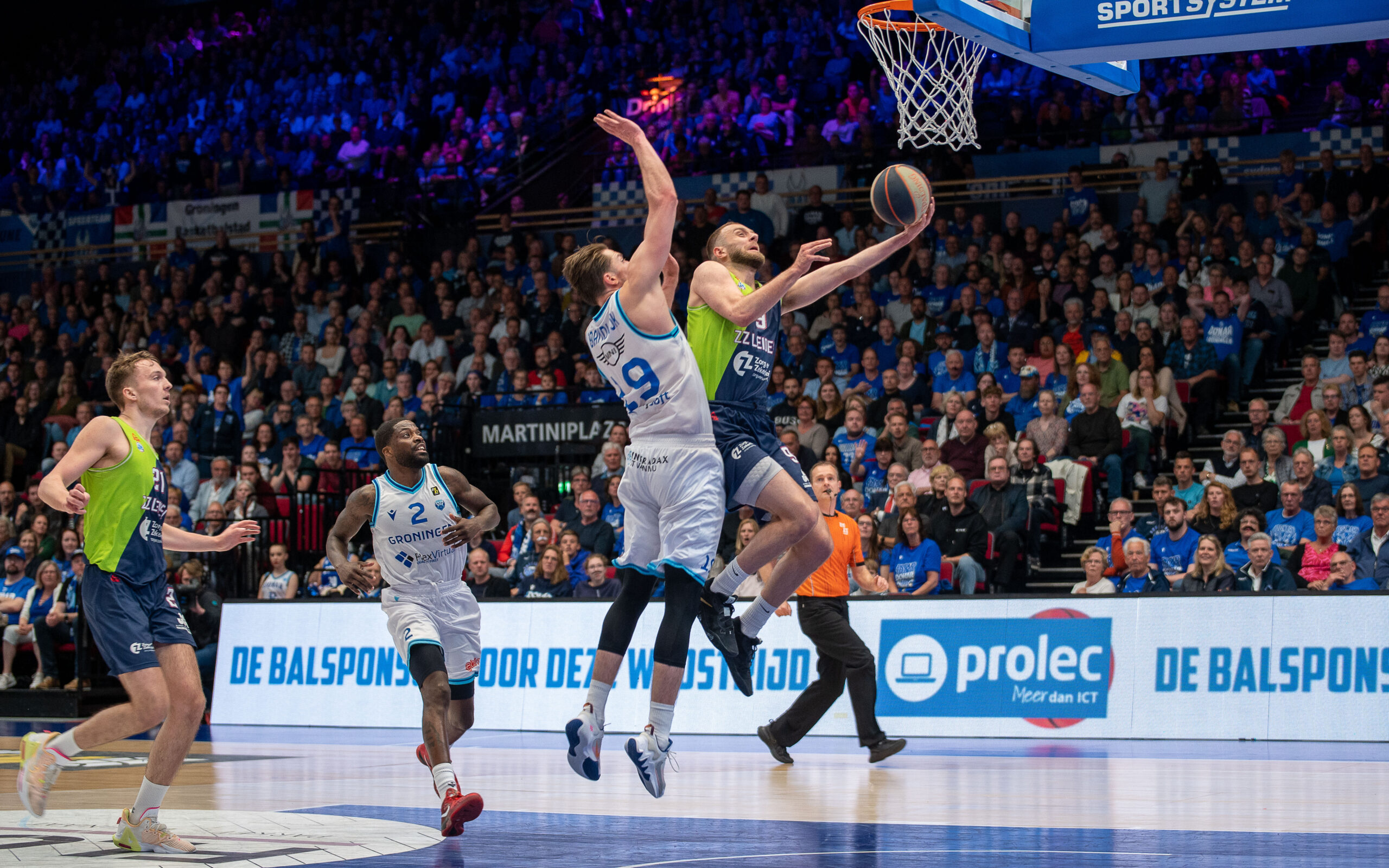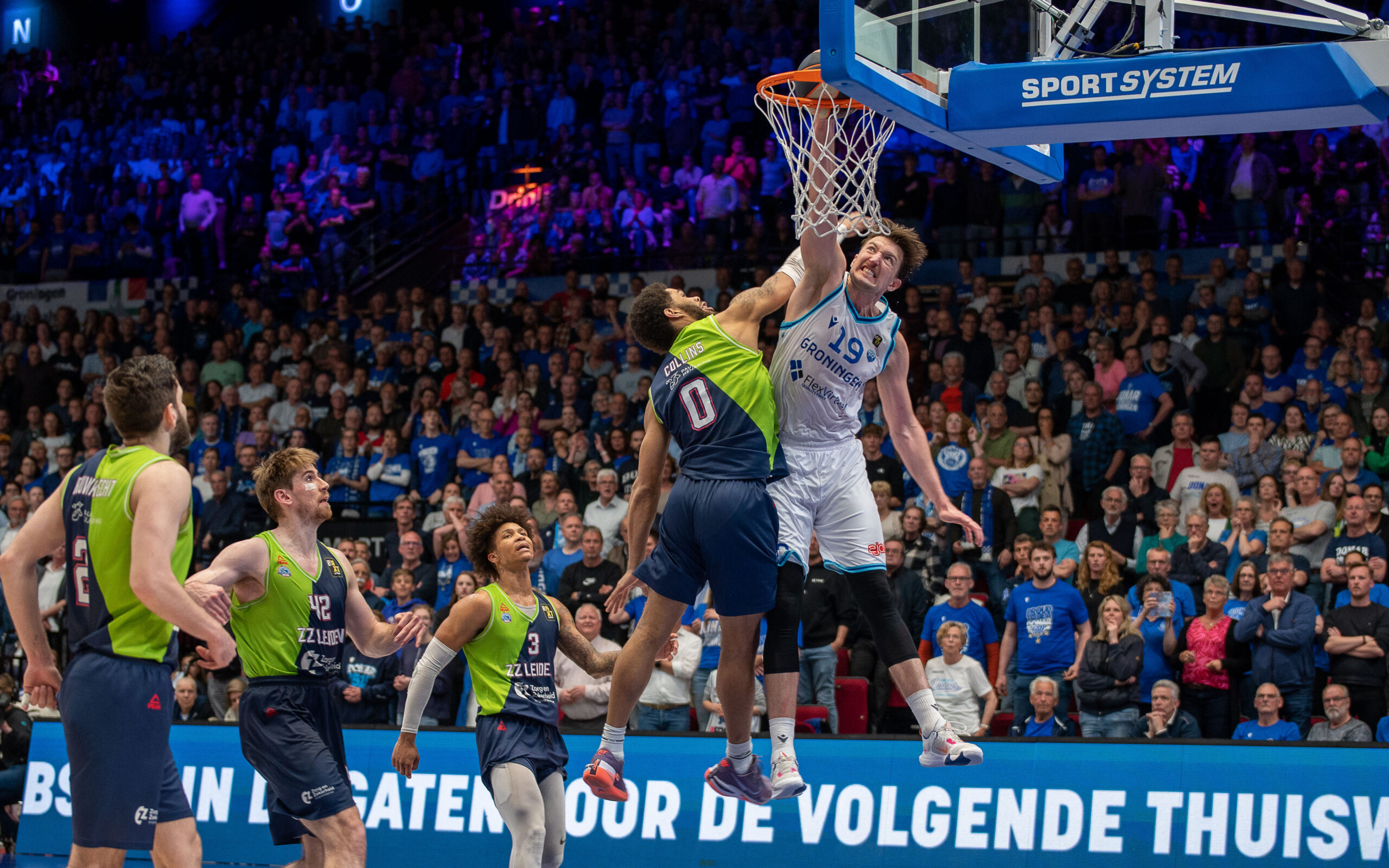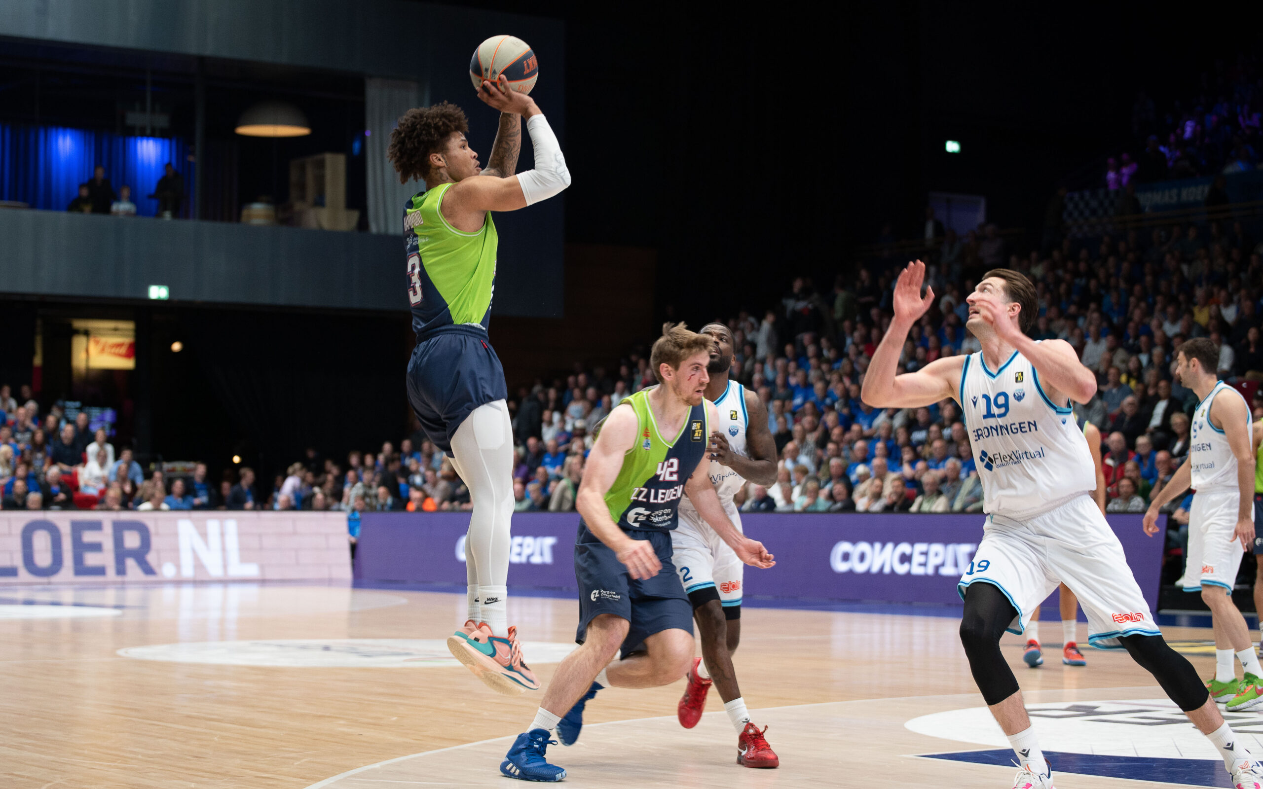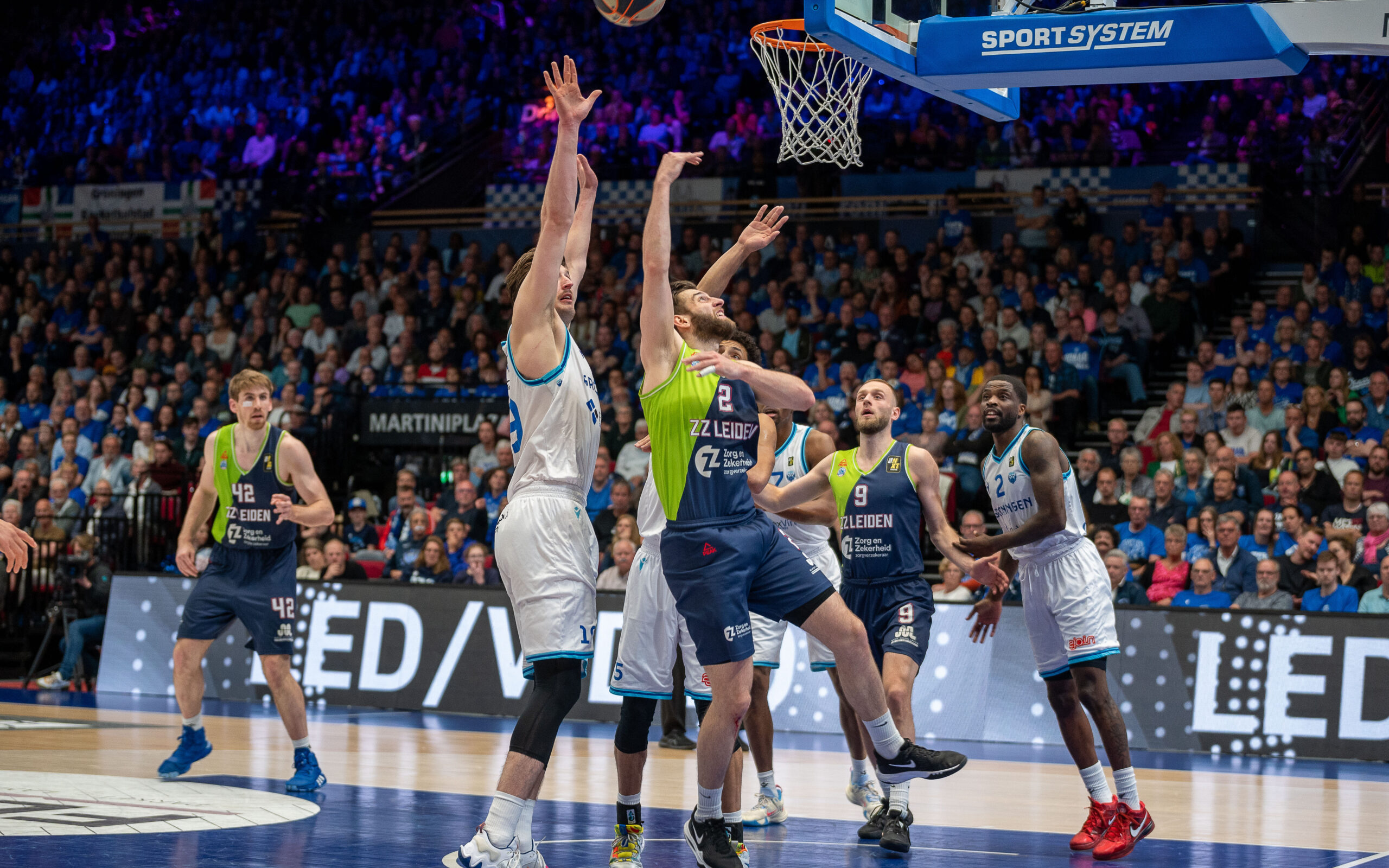 Zorg en Zekerheid Leiden heeft in een nagenoeg uitverkocht MartiniPlaza in Groningen de stand in de finale van de Nederlandse play-offs weer gelijk getrokken. In een spannende en intens gespeelde wedstrijd werd met 65-68 gewonnen van Donar.