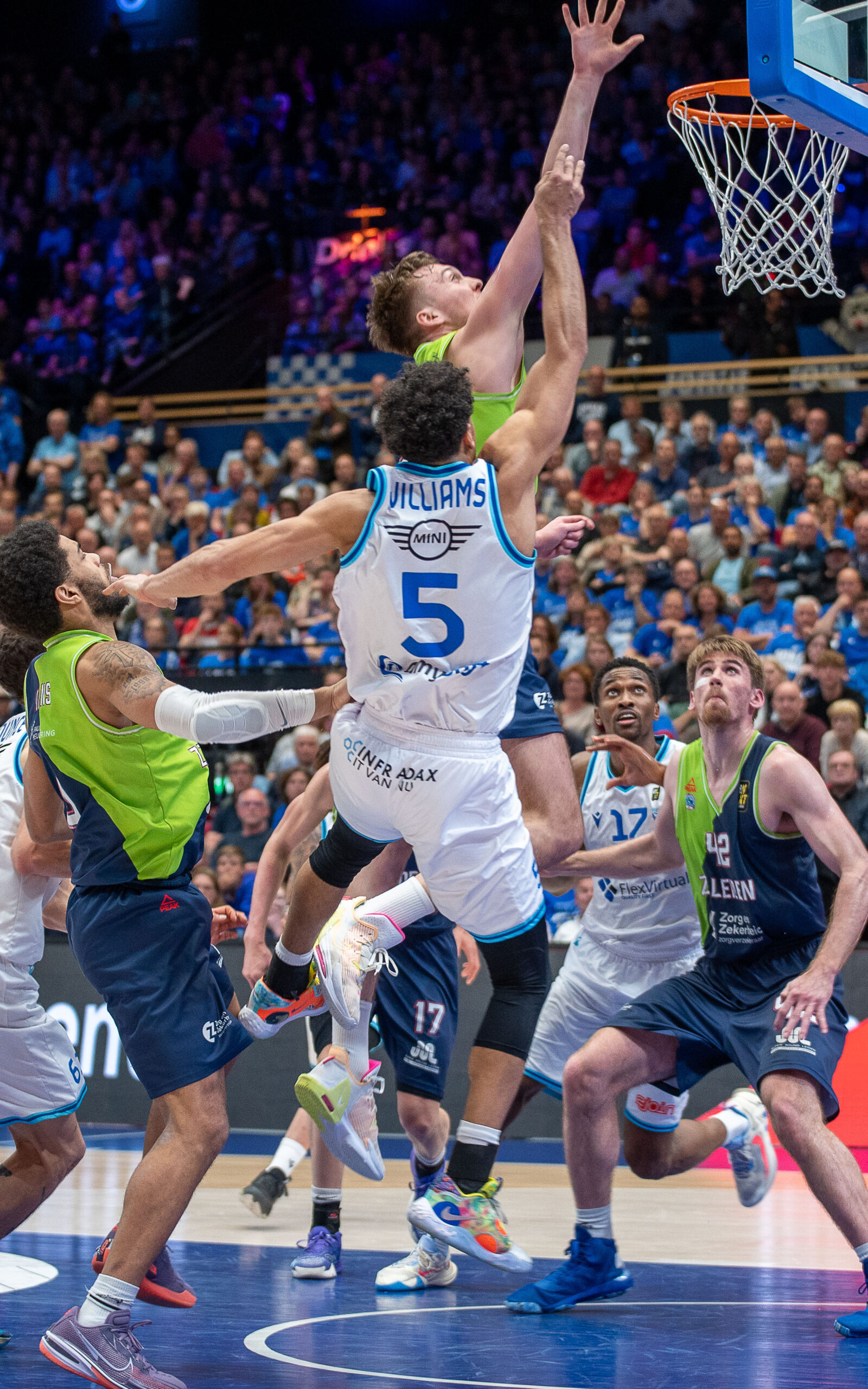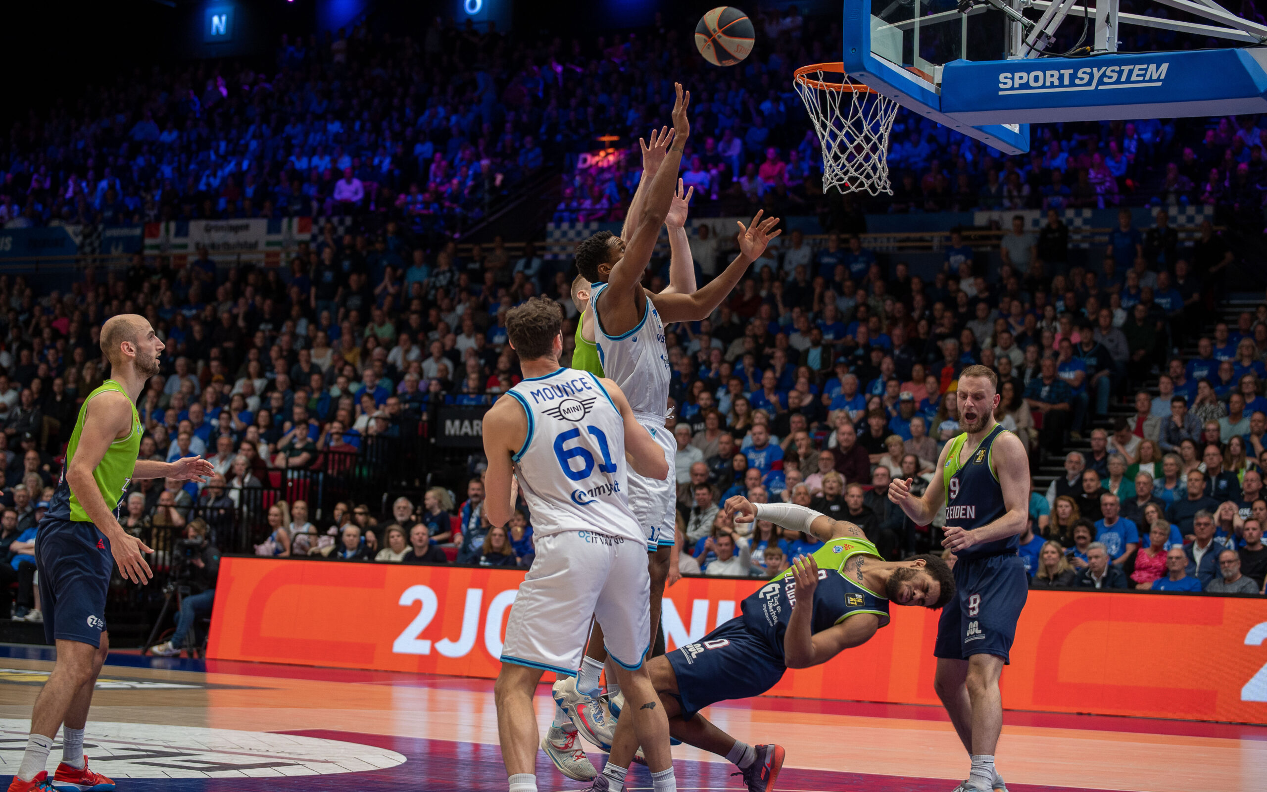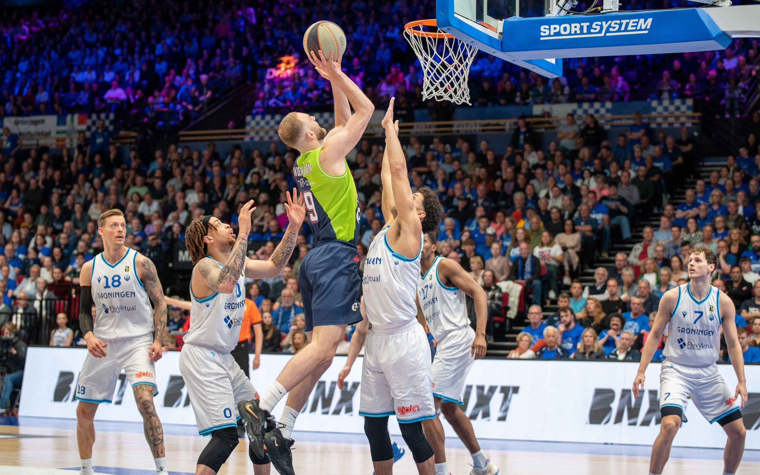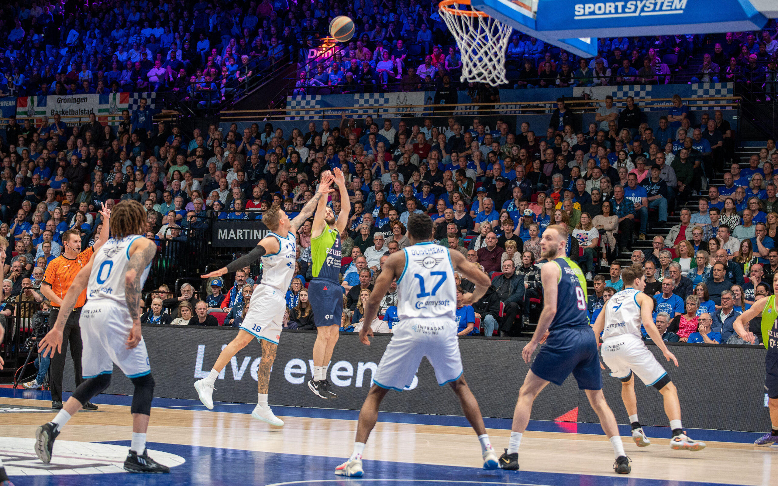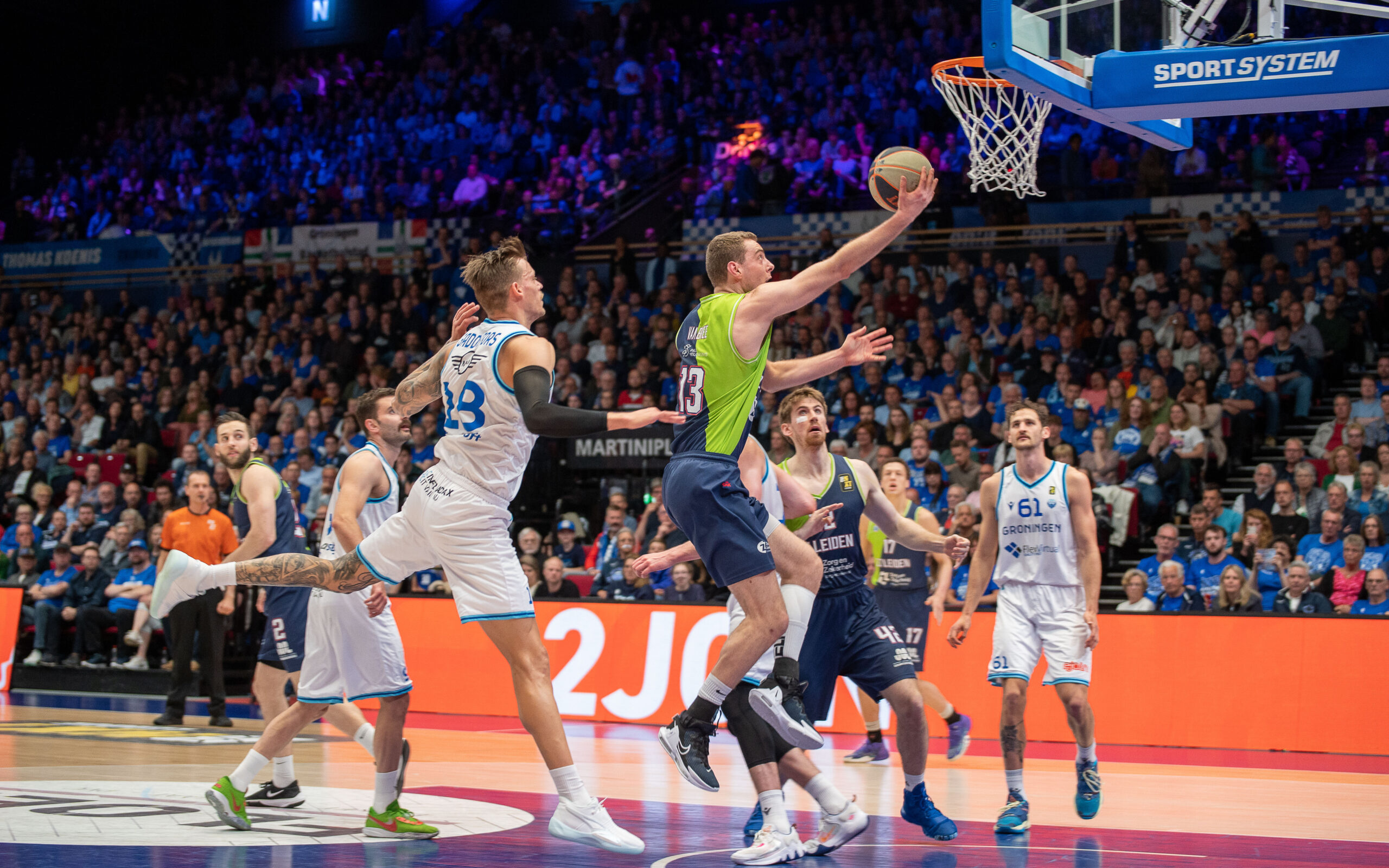Zorg en Zekerheid Leiden heeft in een nagenoeg uitverkocht MartiniPlaza in Groningen de stand in de finale van de Nederlandse play-offs weer gelijk getrokken. In een spannende en intens gespeelde wedstrijd werd met 65-68 gewonnen van Donar.