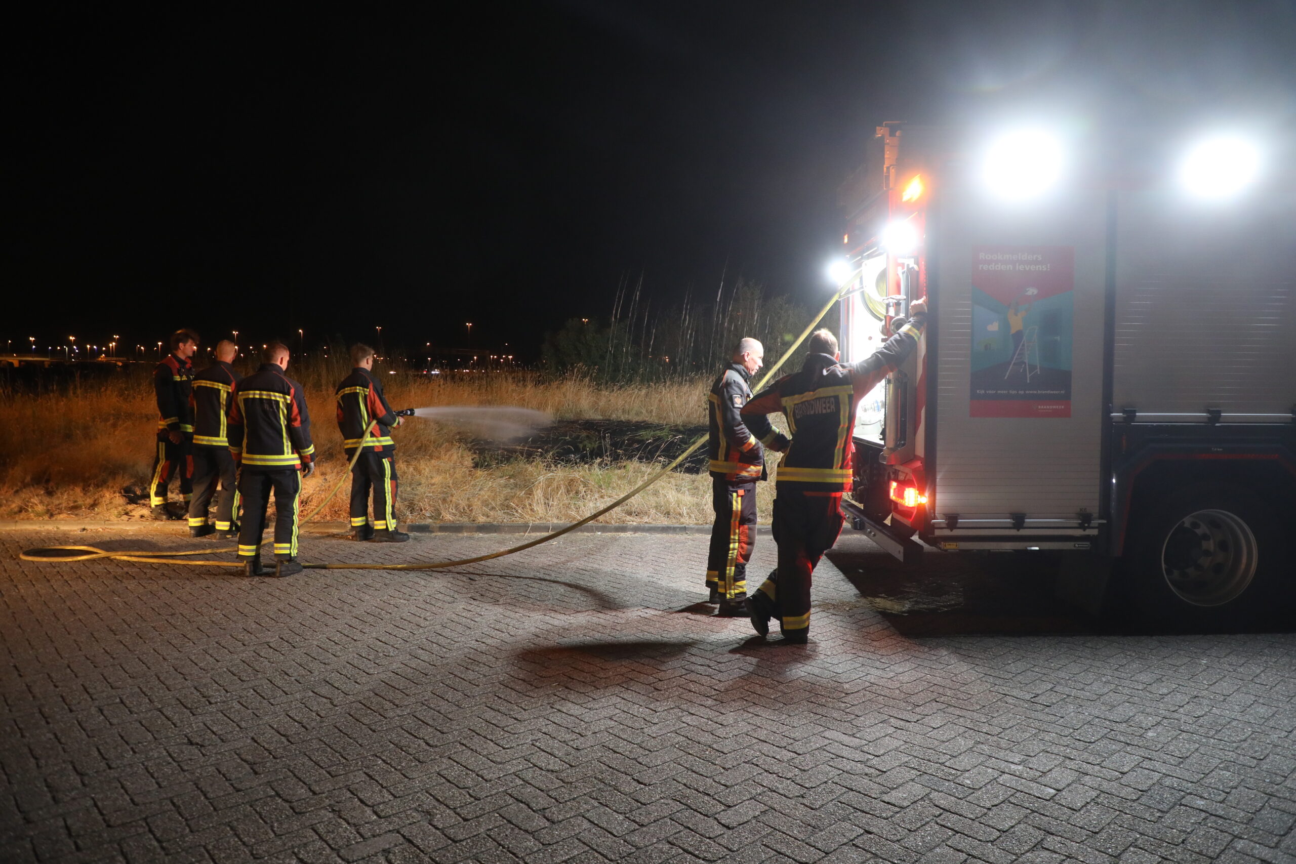 De brandweer heeft de bermstrook nageblust.