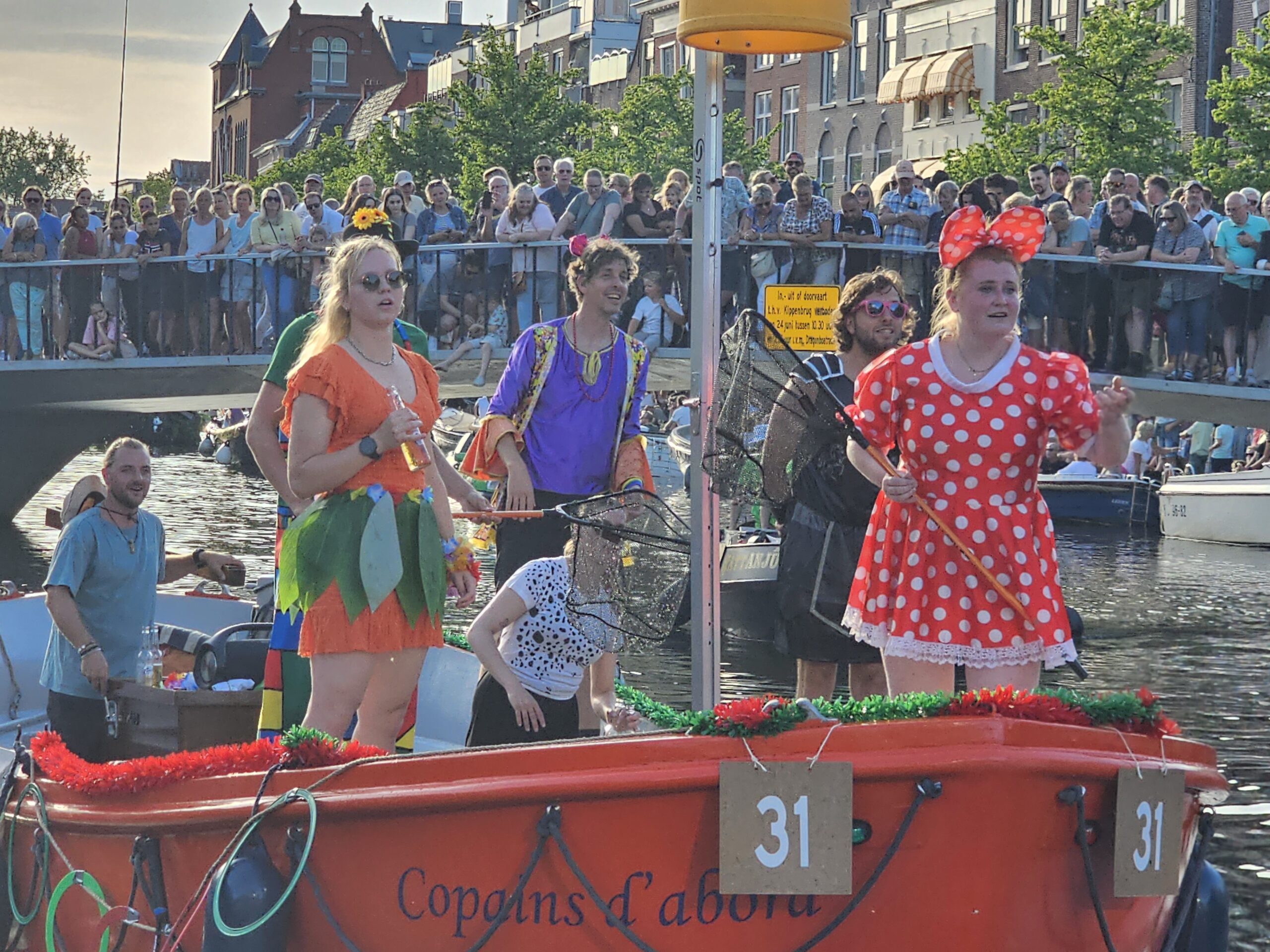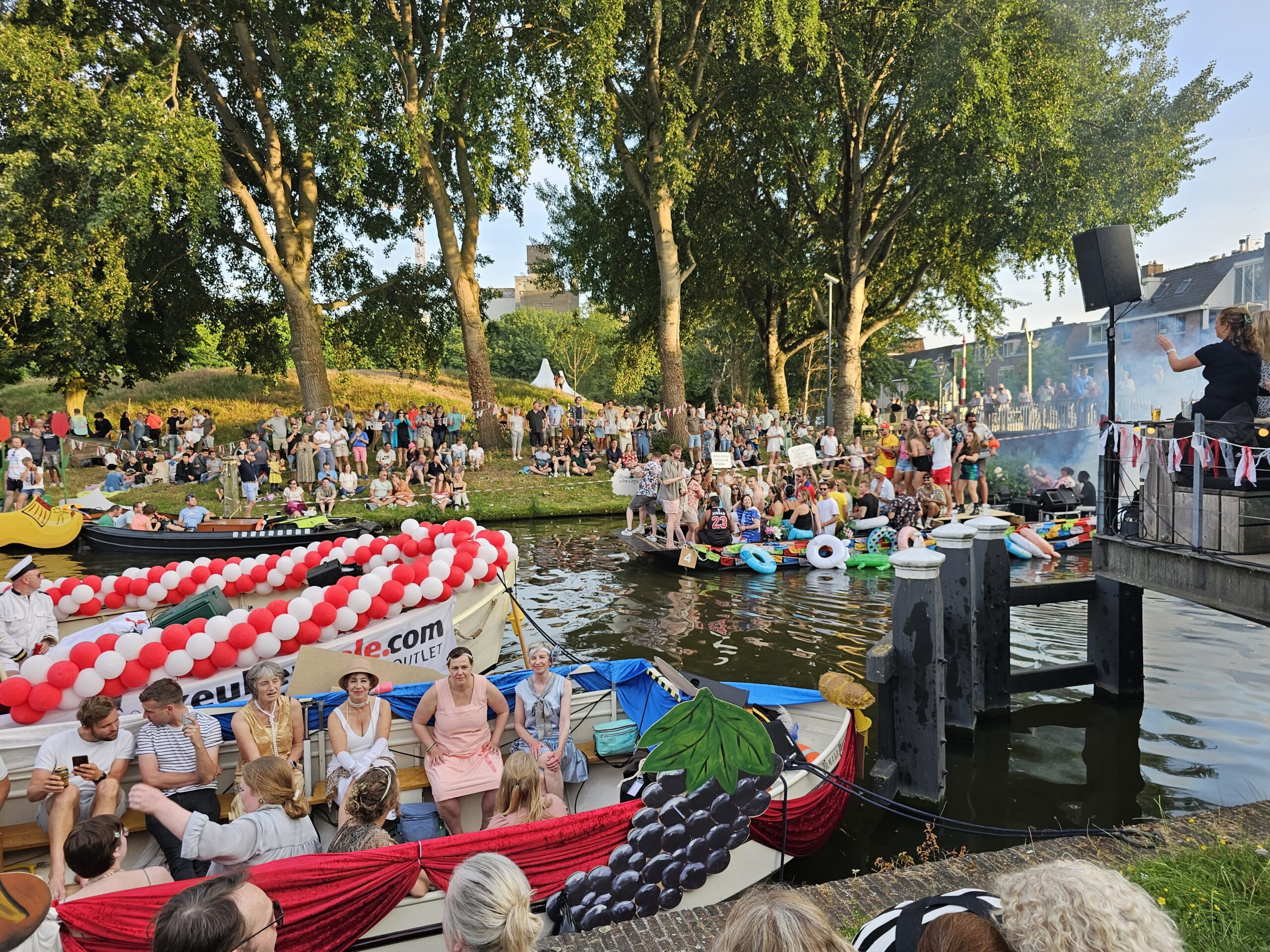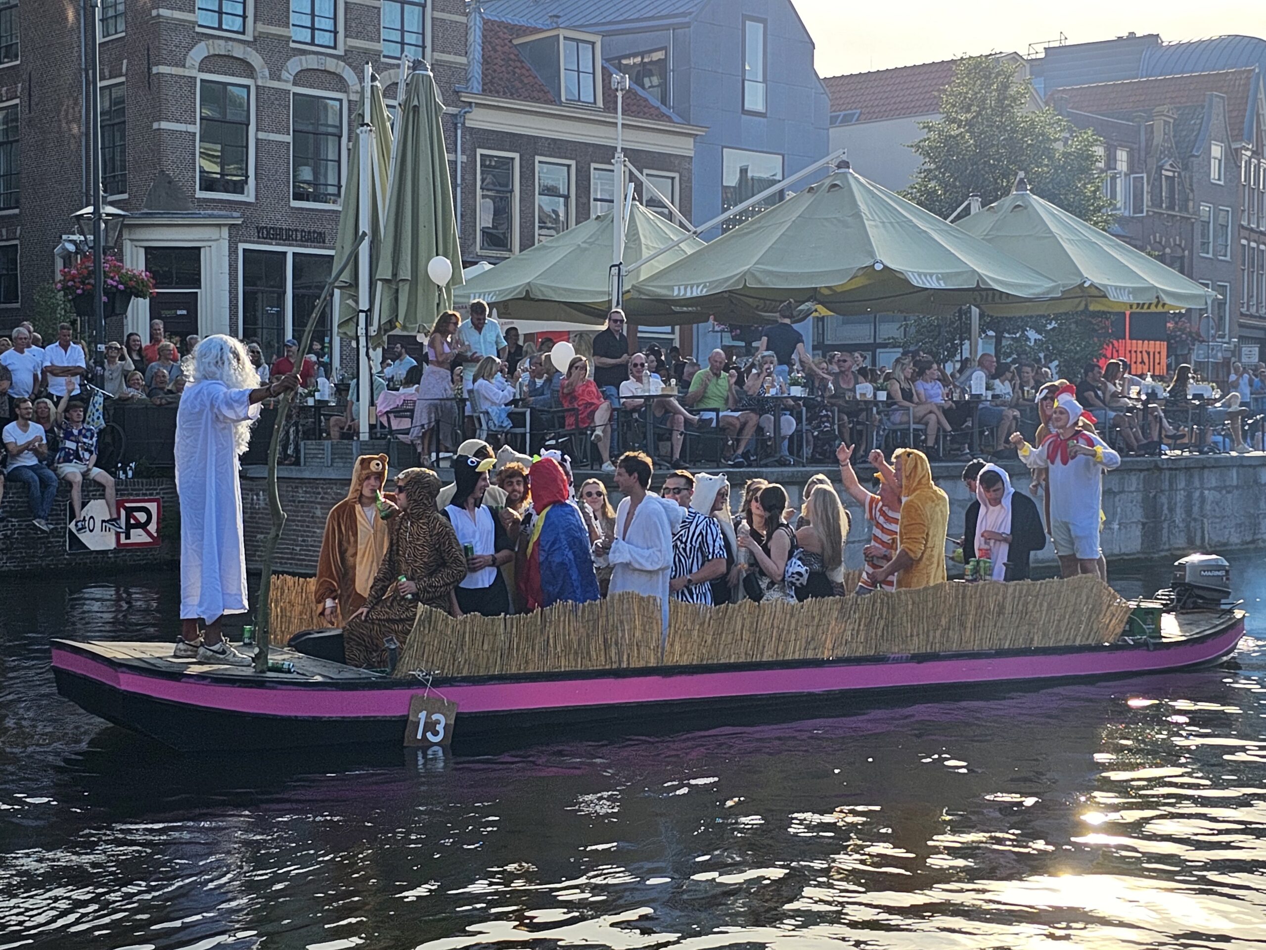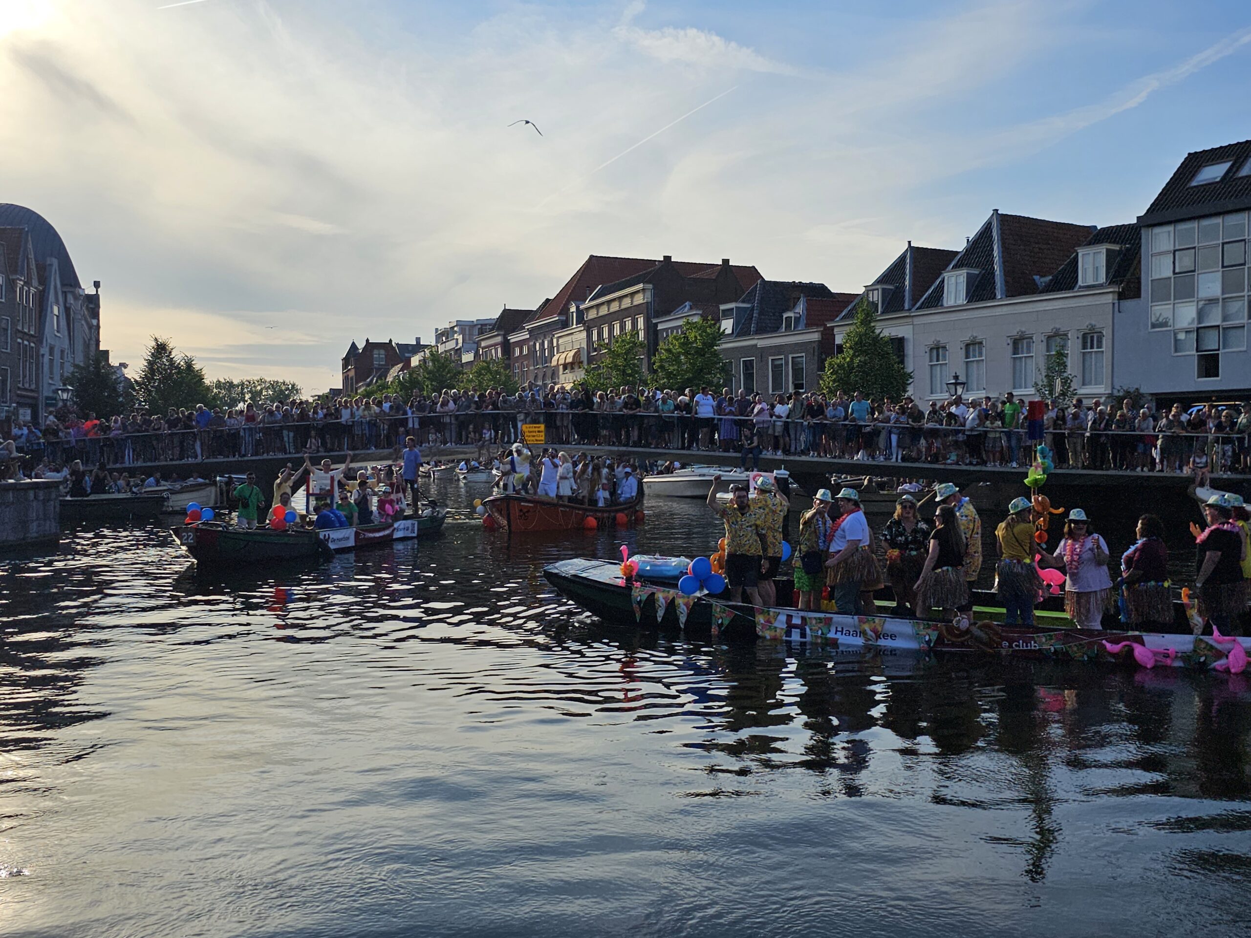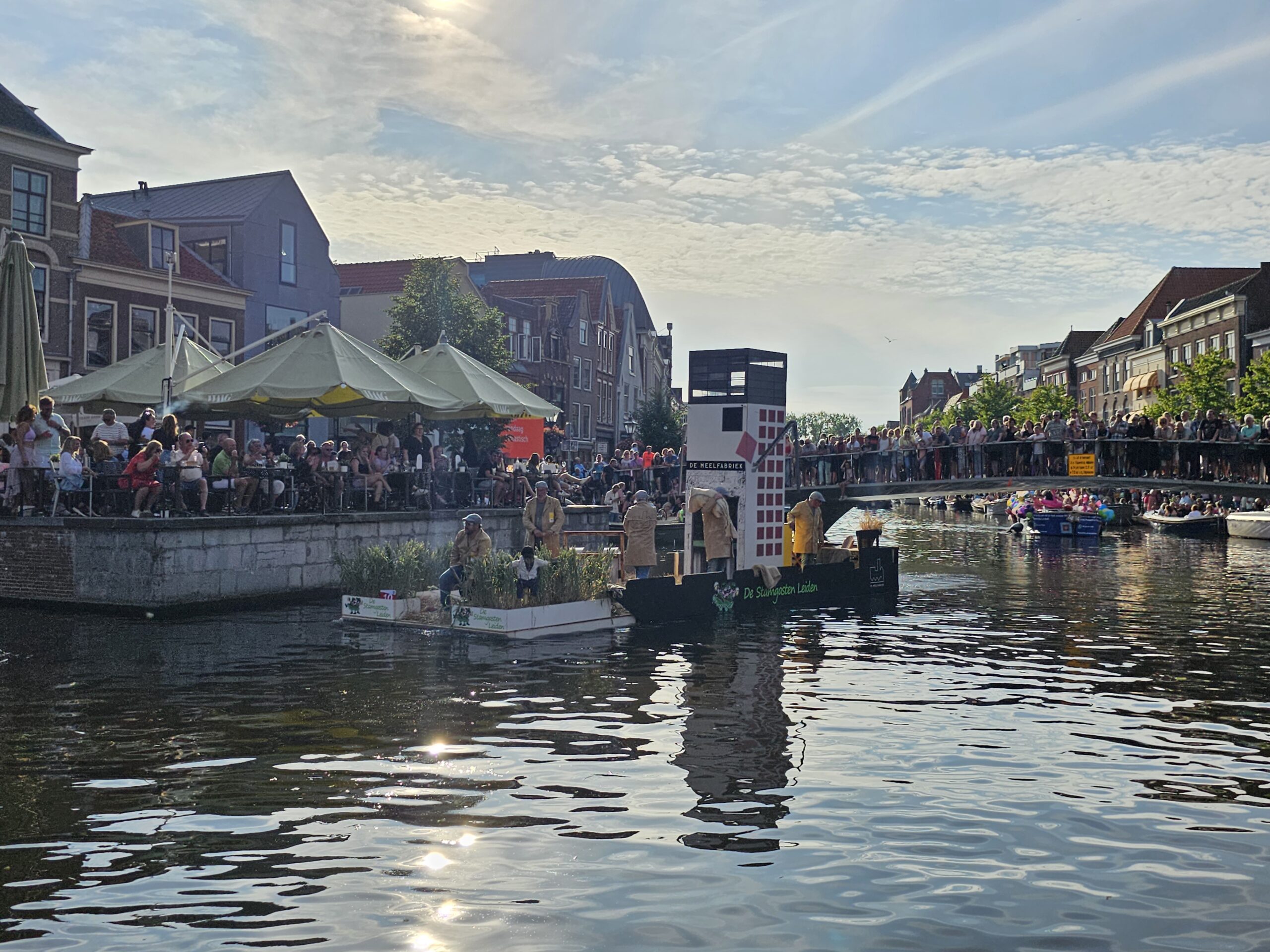 De Peurbakkentocht die gisteren in het centrum van Leiden voor veel gezelligheid en drukte zorgde, is vrijdagavond vlekkeloos verlopen. Na de jurering vanaf het terras van Annie’s waar ook het presentatieduo Erwin Roodhart en Rik van der Geest alle bootjes vakkundig aan elkaar babbelden, voer de kleurrijke stoet door naar de Zijlpoort waar later op de avond de prijsuitreiking plaatsvond.