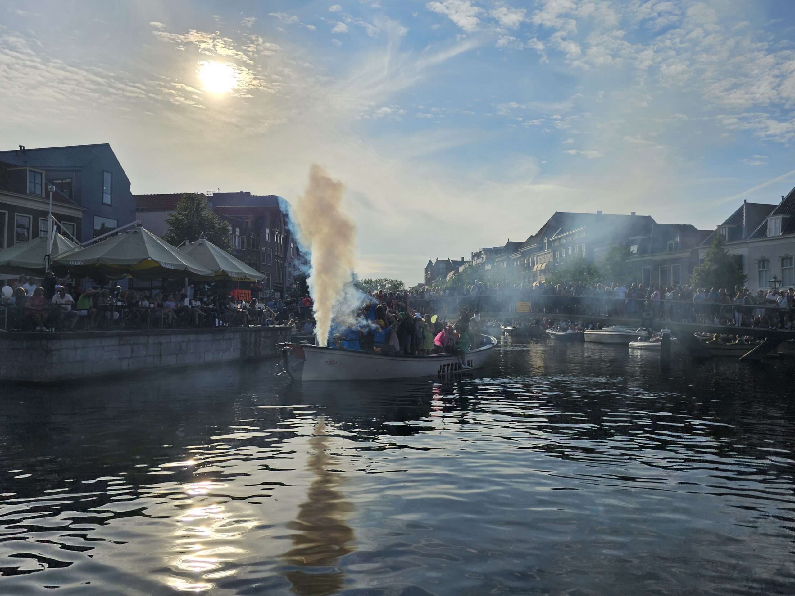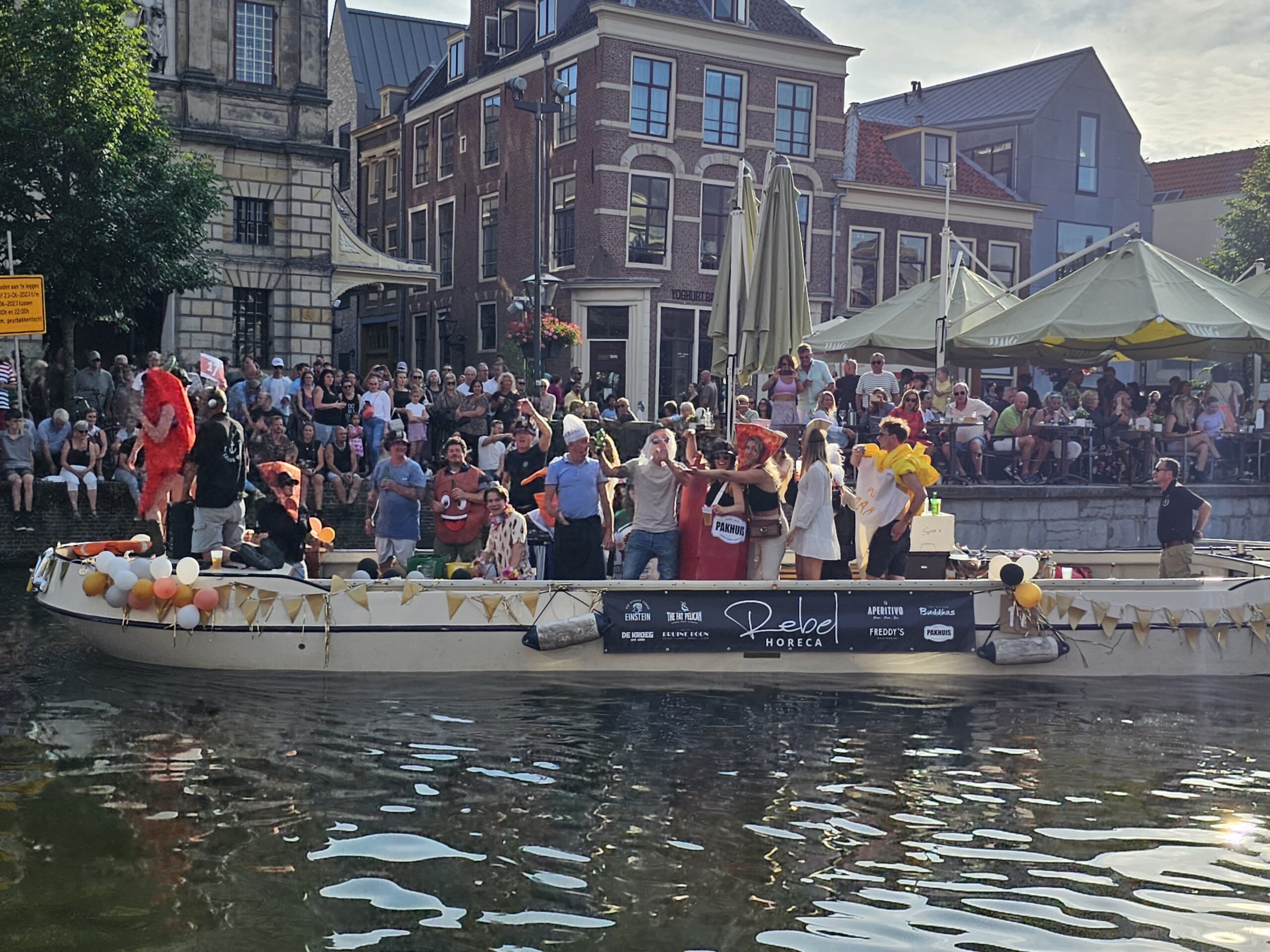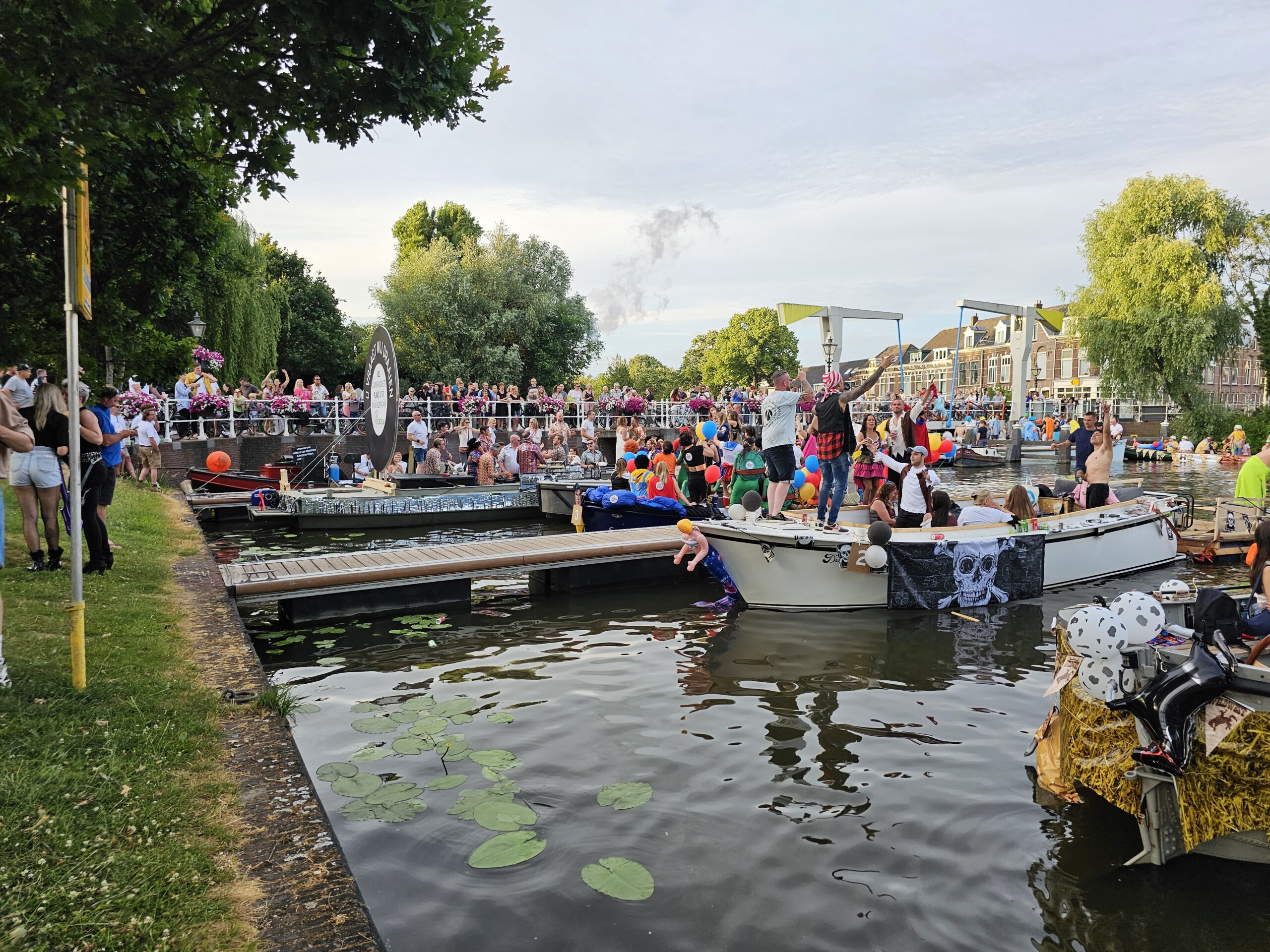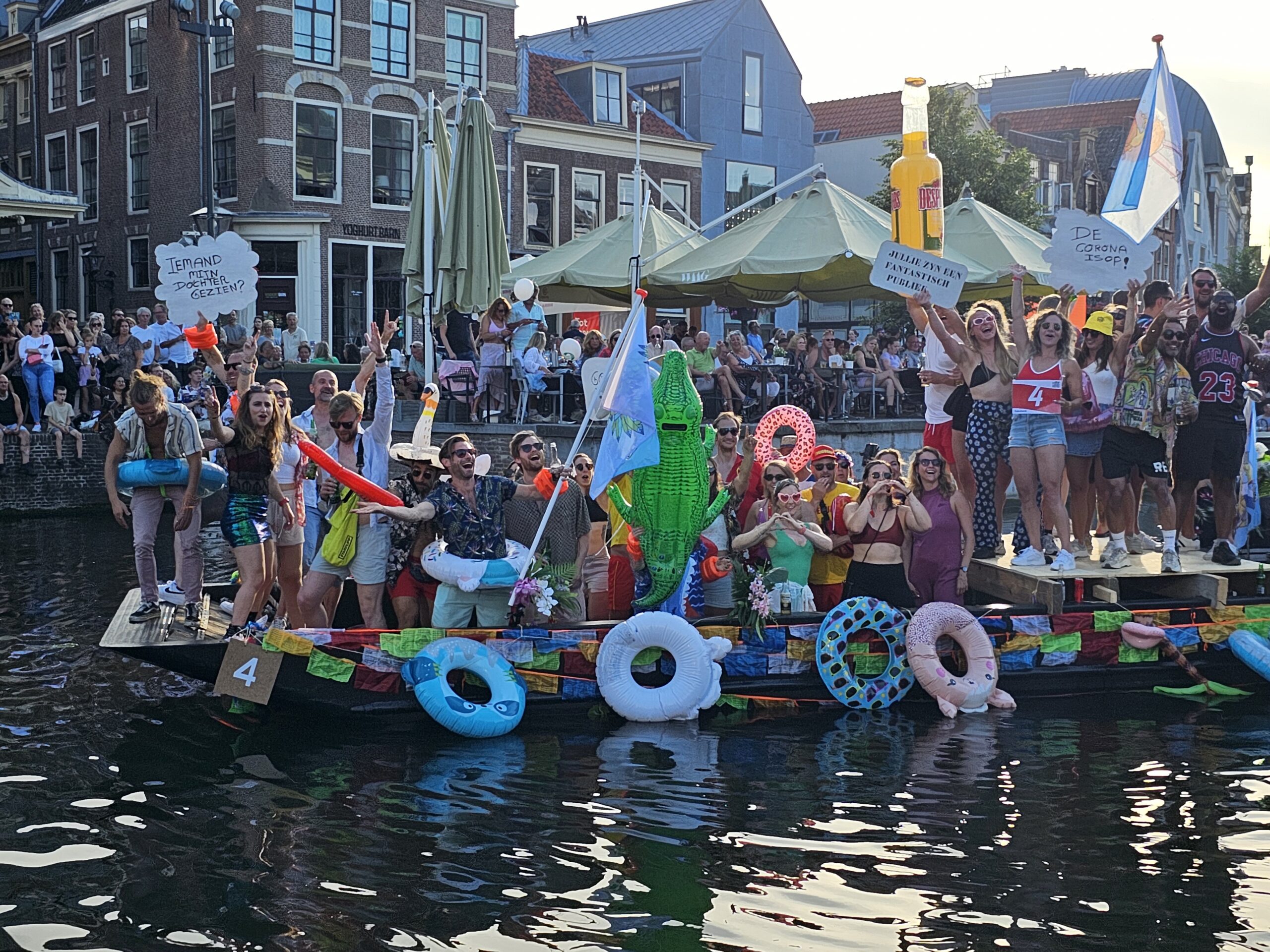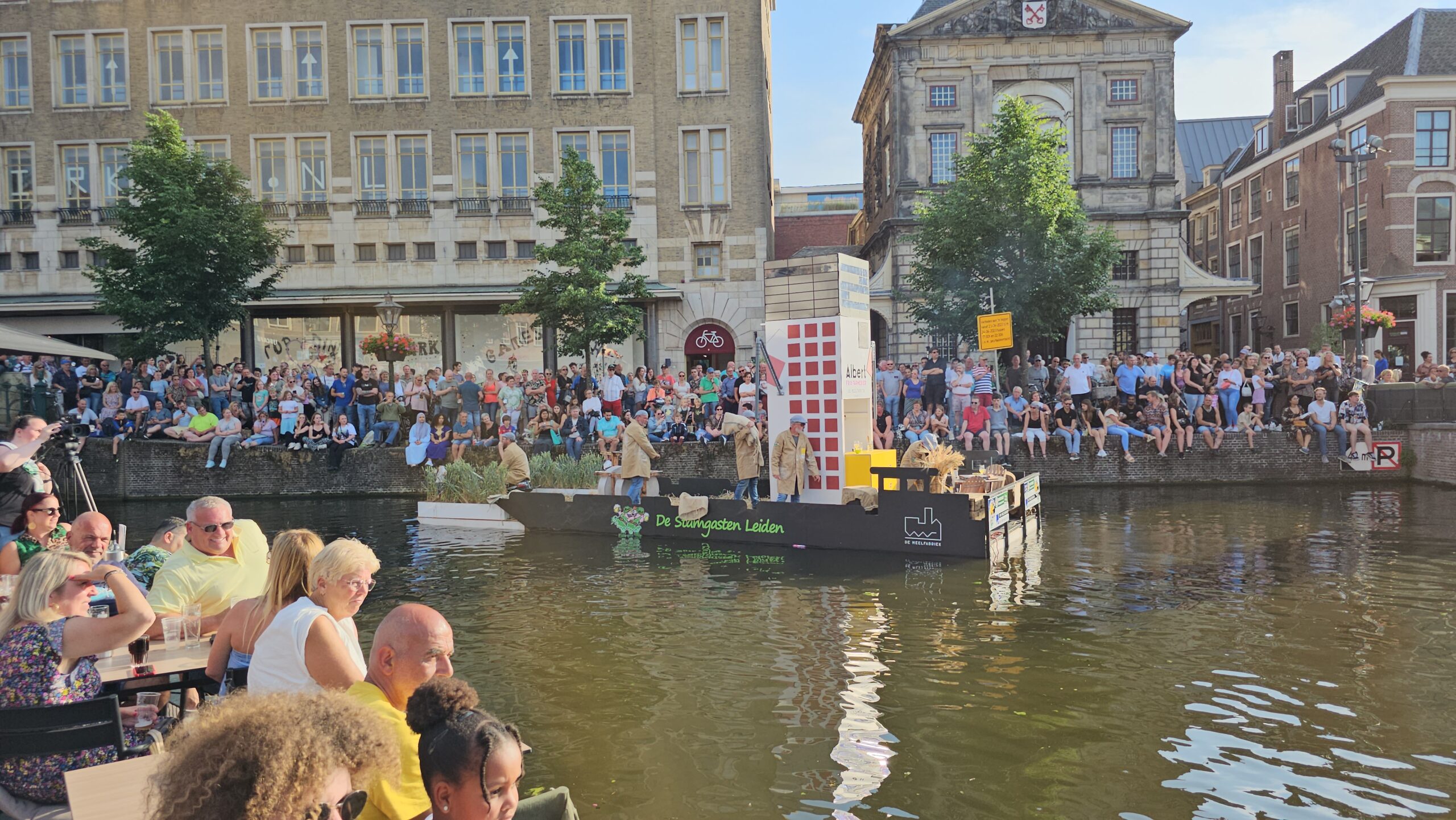 De Peurbakkentocht die gisteren in het centrum van Leiden voor veel gezelligheid en drukte zorgde, is vrijdagavond vlekkeloos verlopen. Na de jurering vanaf het terras van Annie’s waar ook het presentatieduo Erwin Roodhart en Rik van der Geest alle bootjes vakkundig aan elkaar babbelden, voer de kleurrijke stoet door naar de Zijlpoort waar later op de avond de prijsuitreiking plaatsvond.