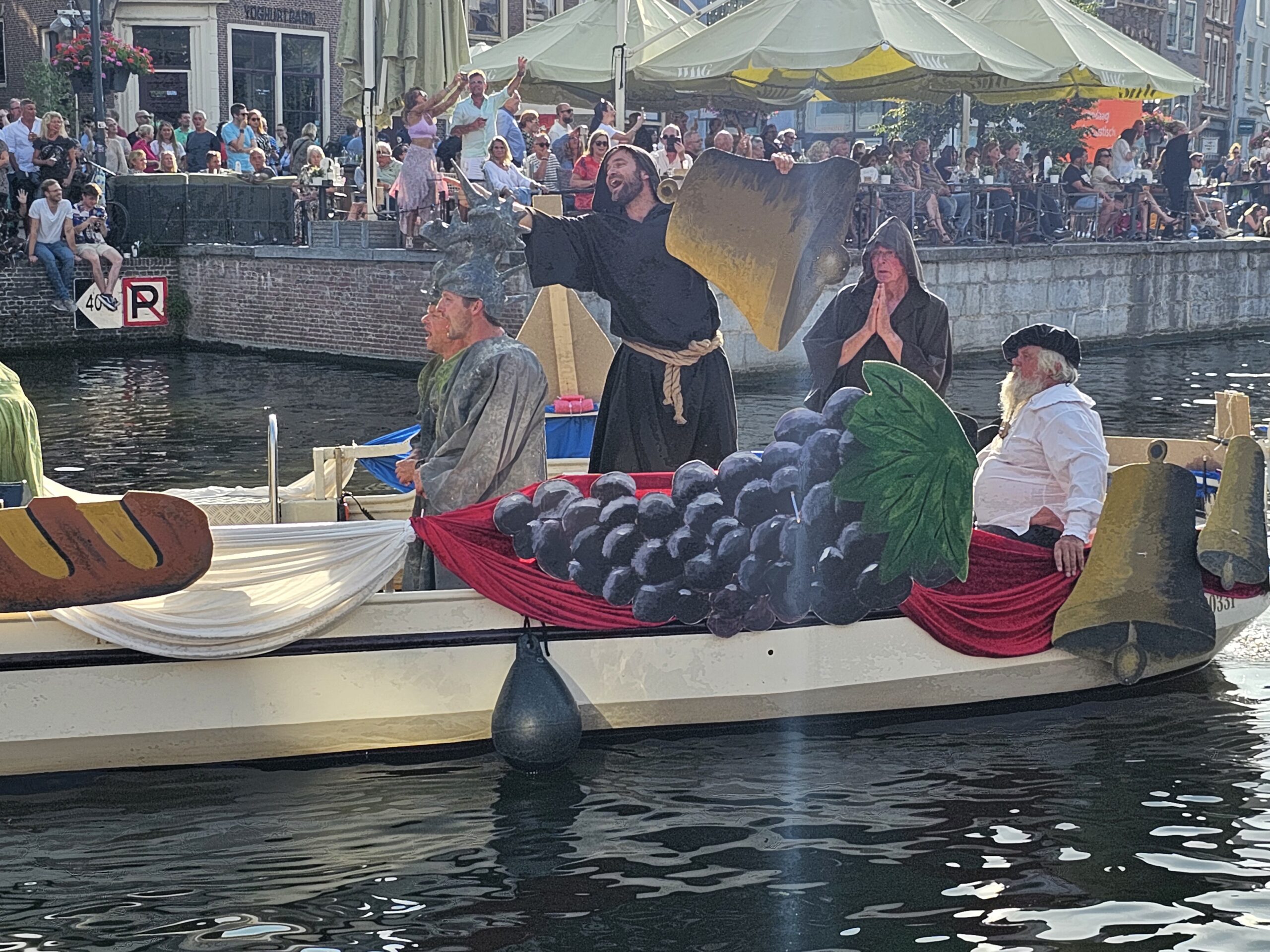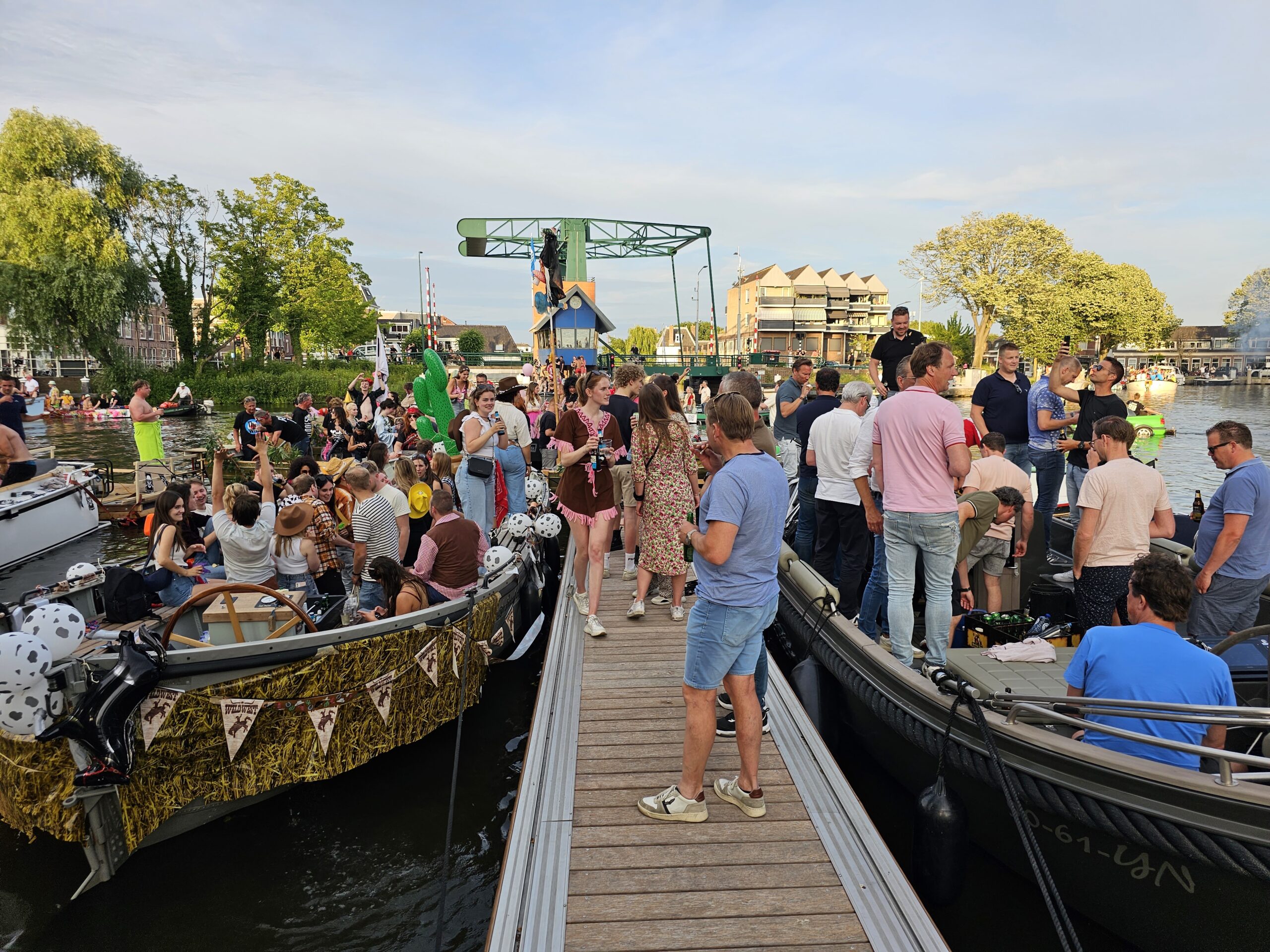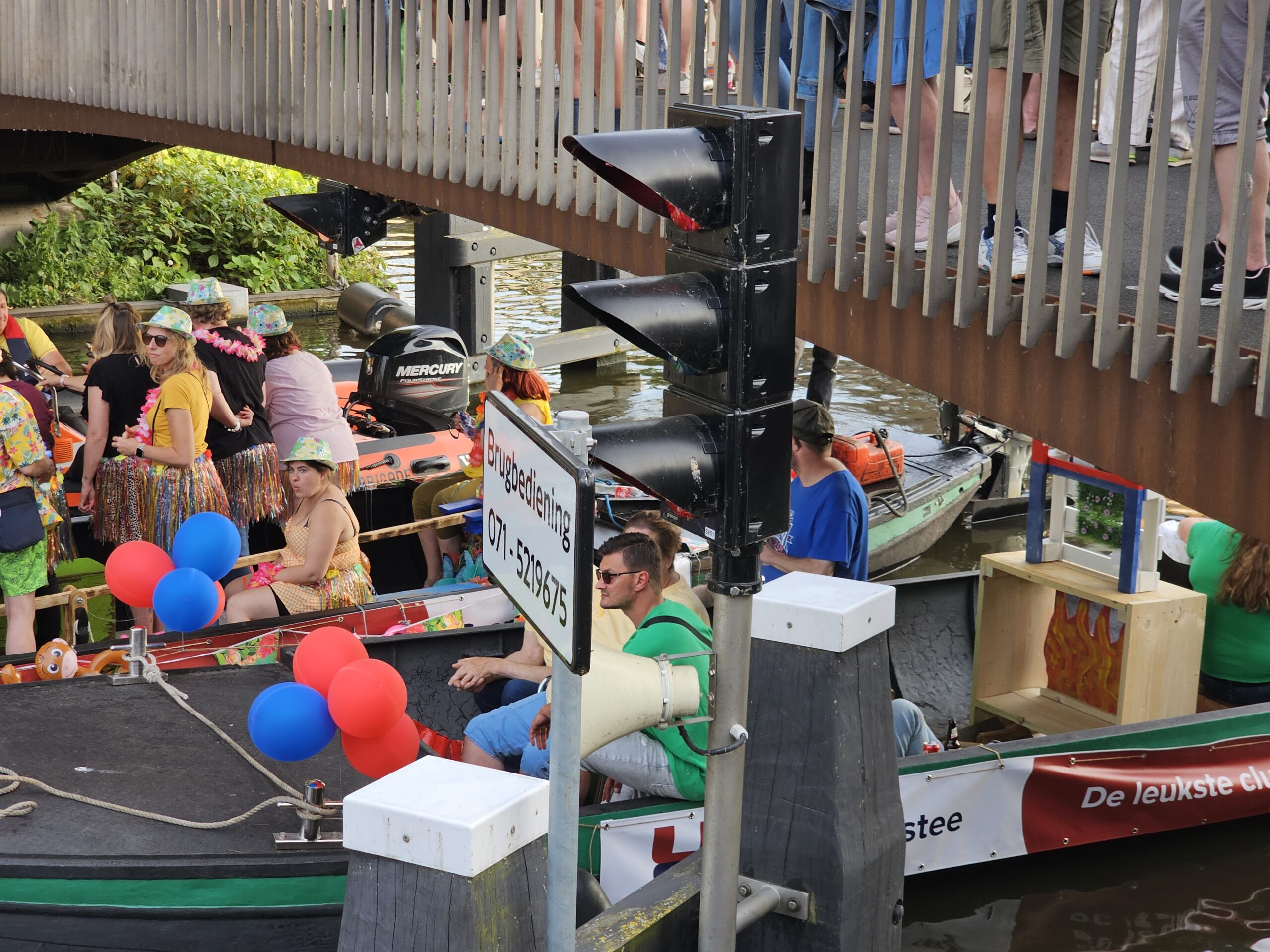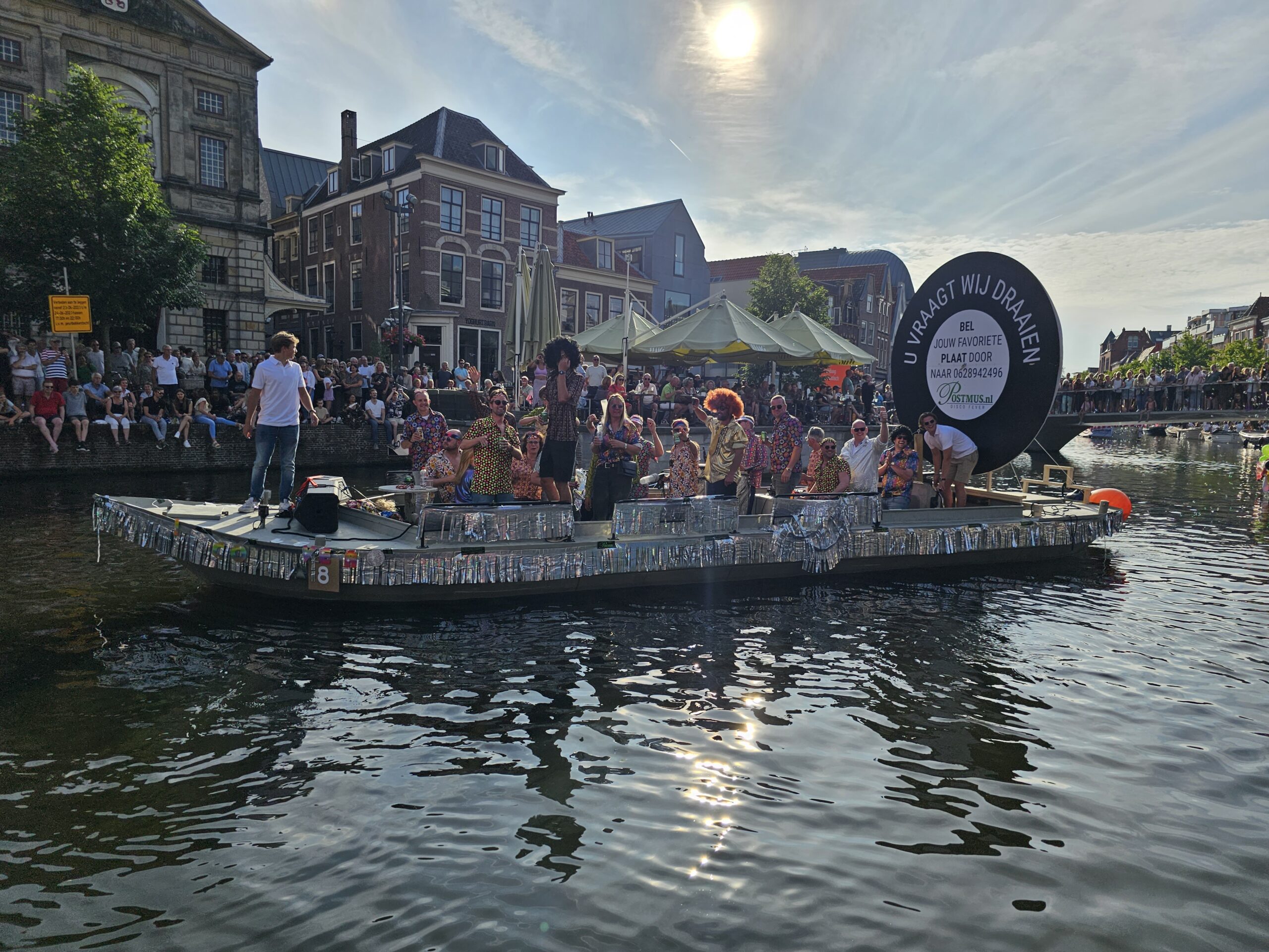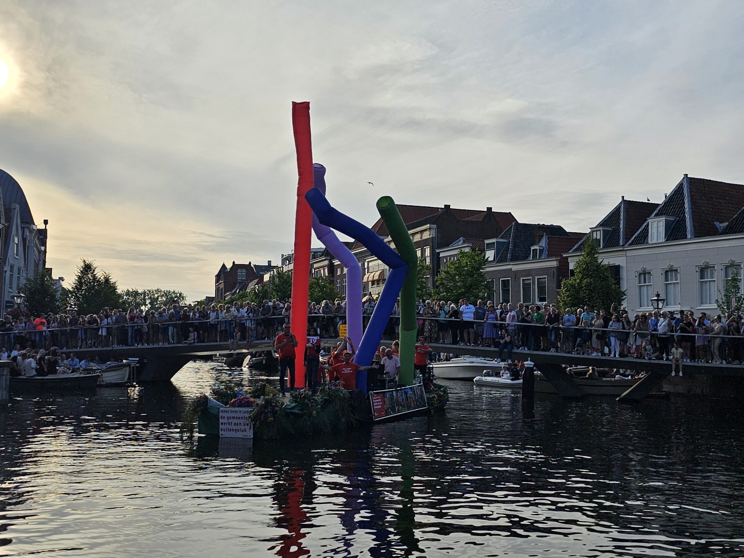 De Peurbakkentocht die gisteren in het centrum van Leiden voor veel gezelligheid en drukte zorgde, is vrijdagavond vlekkeloos verlopen. Na de jurering vanaf het terras van Annie’s waar ook het presentatieduo Erwin Roodhart en Rik van der Geest alle bootjes vakkundig aan elkaar babbelden, voer de kleurrijke stoet door naar de Zijlpoort waar later op de avond de prijsuitreiking plaatsvond.