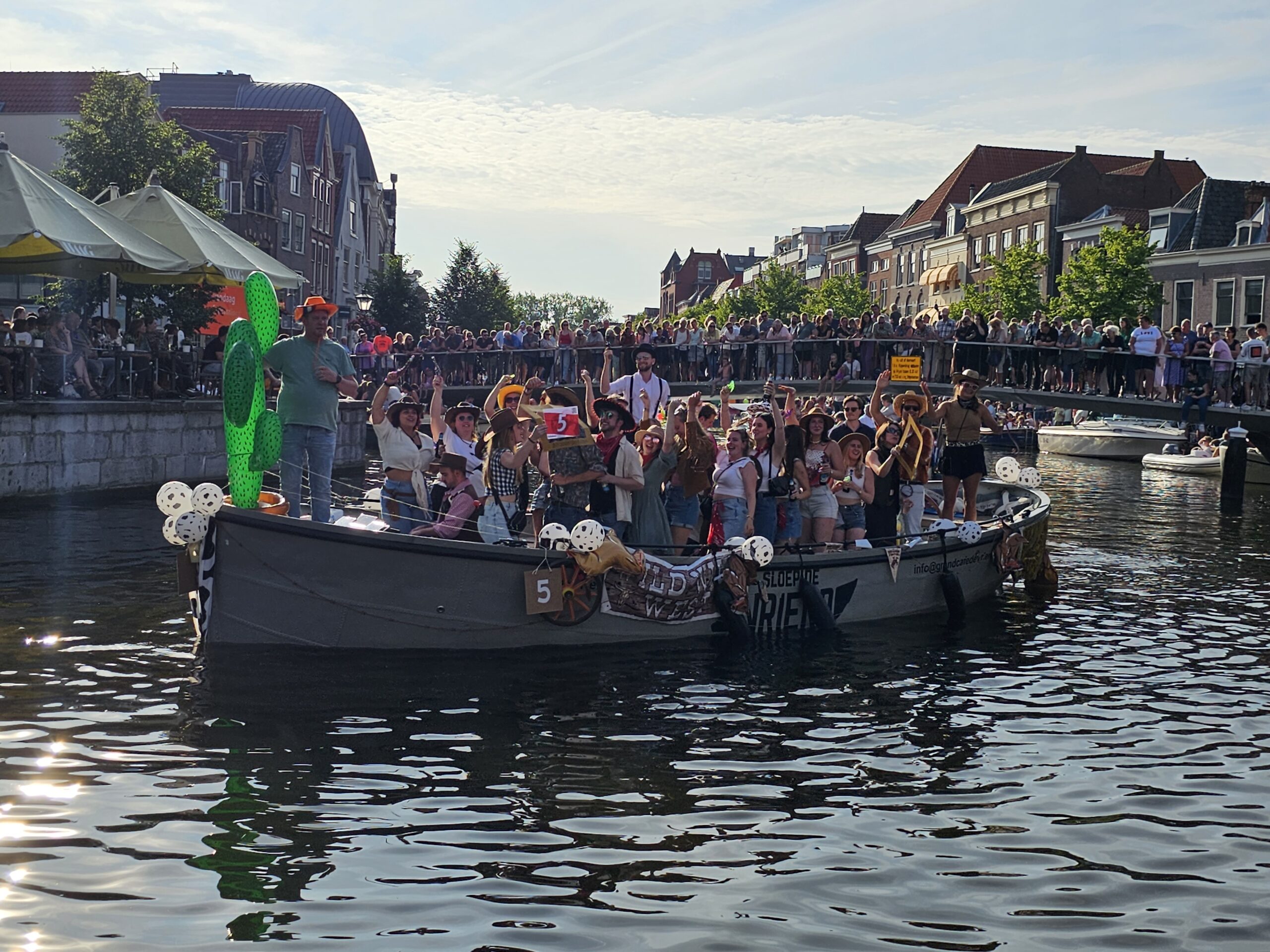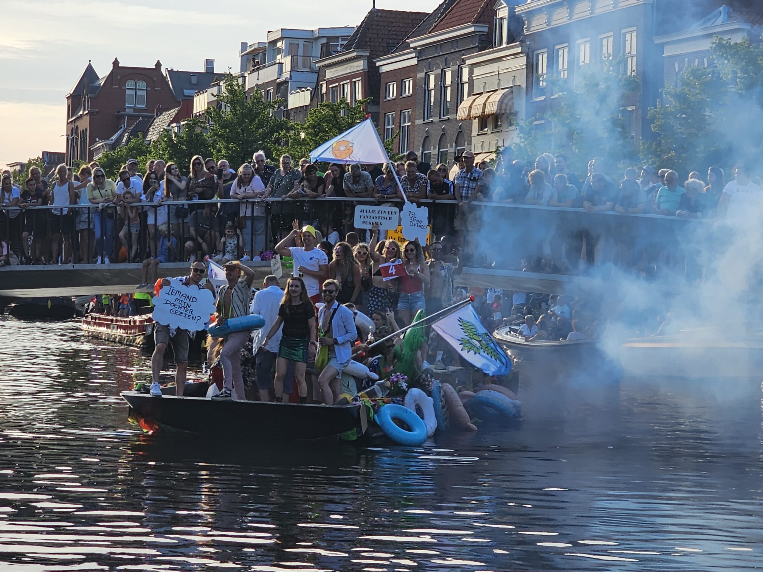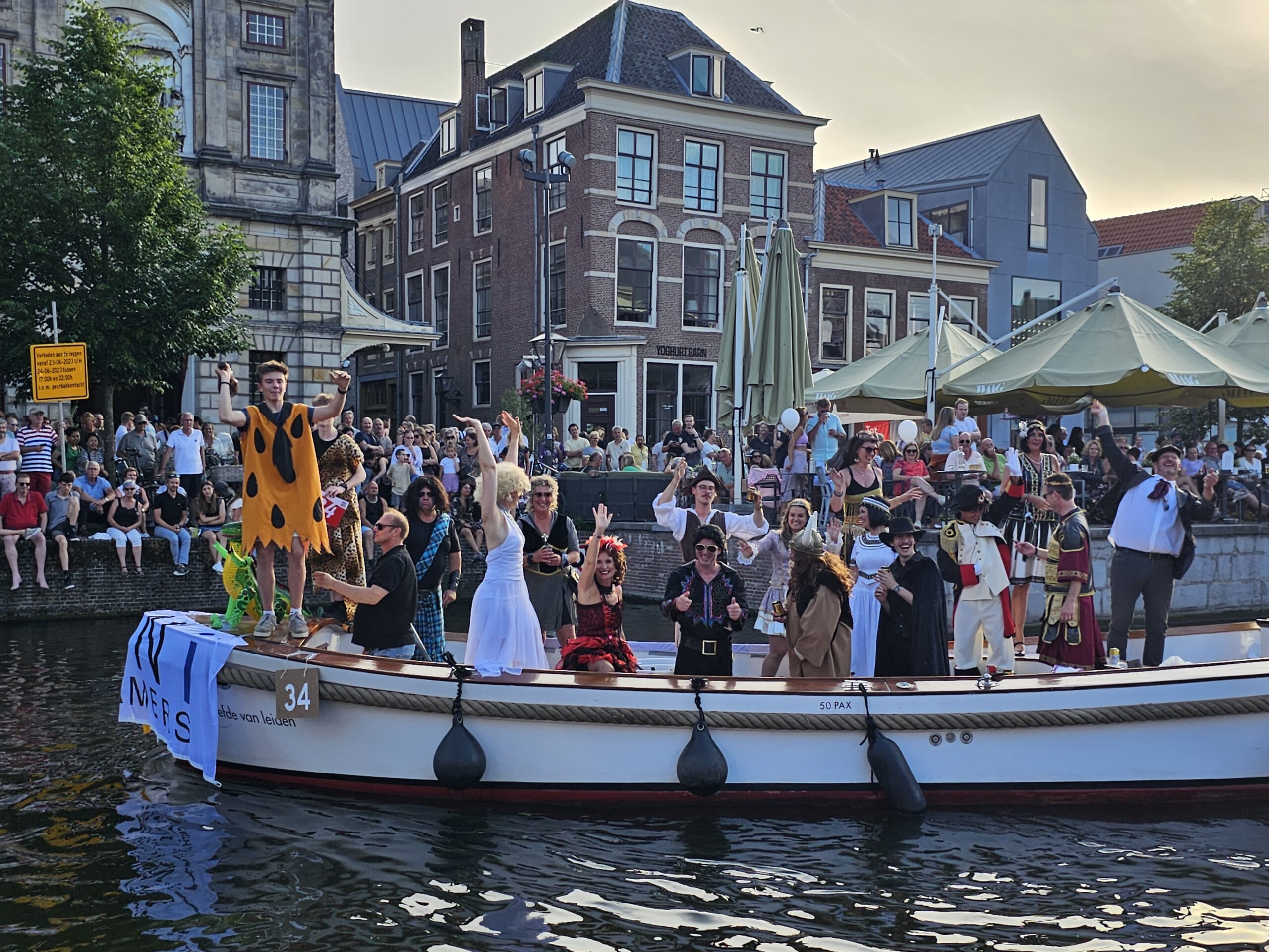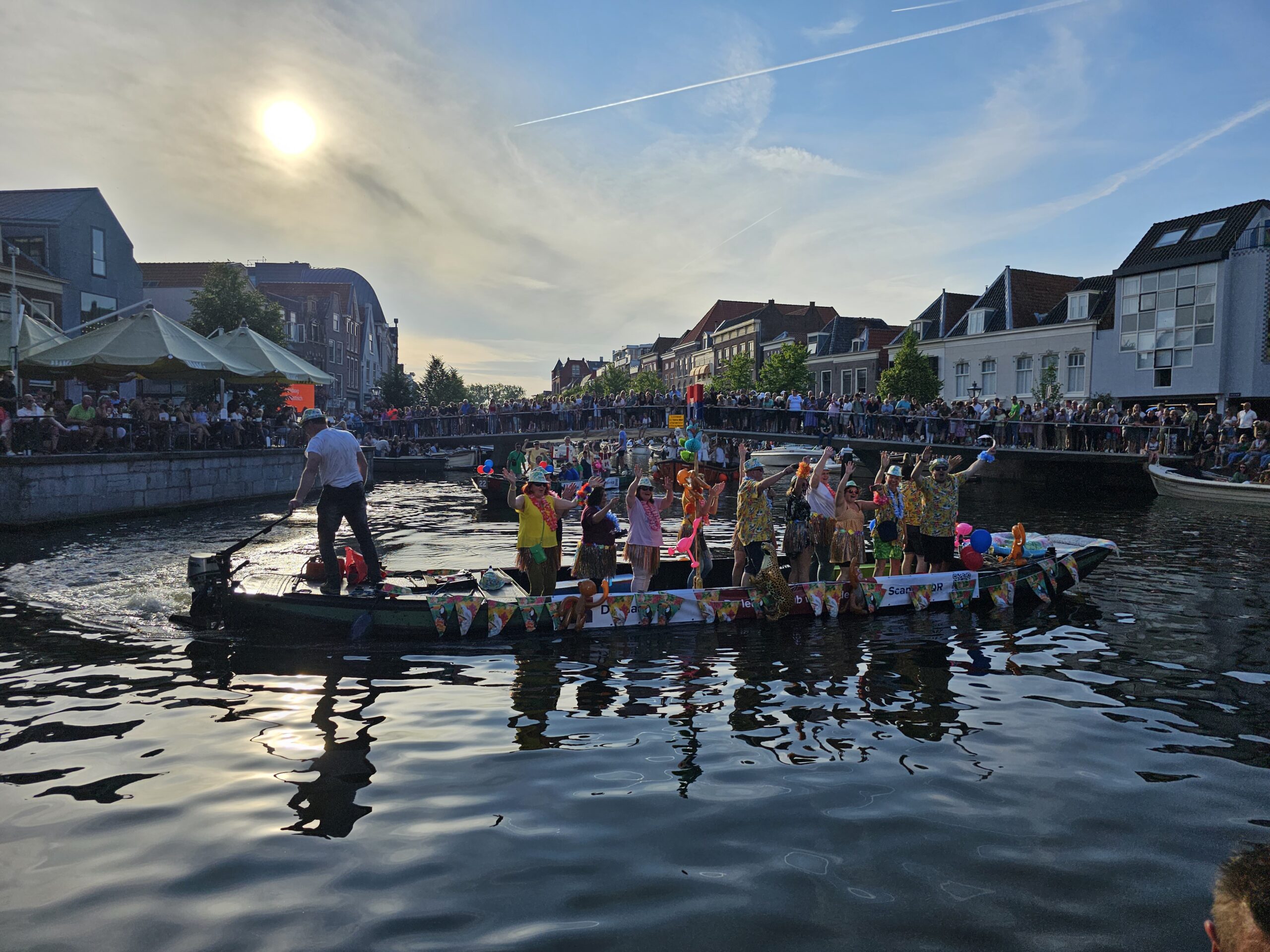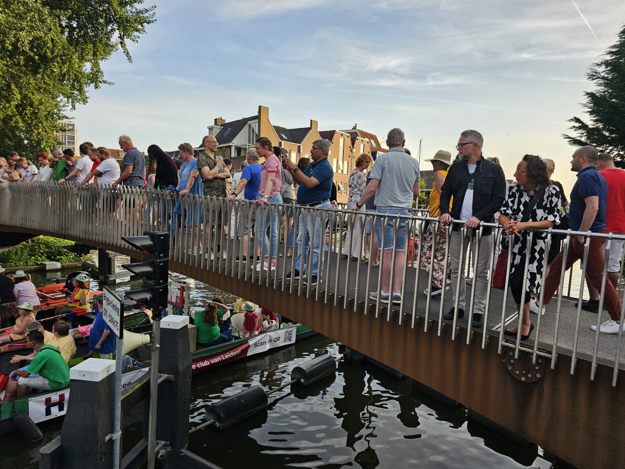 De Peurbakkentocht die gisteren in het centrum van Leiden voor veel gezelligheid en drukte zorgde, is vrijdagavond vlekkeloos verlopen. Na de jurering vanaf het terras van Annie’s waar ook het presentatieduo Erwin Roodhart en Rik van der Geest alle bootjes vakkundig aan elkaar babbelden, voer de kleurrijke stoet door naar de Zijlpoort waar later op de avond de prijsuitreiking plaatsvond.