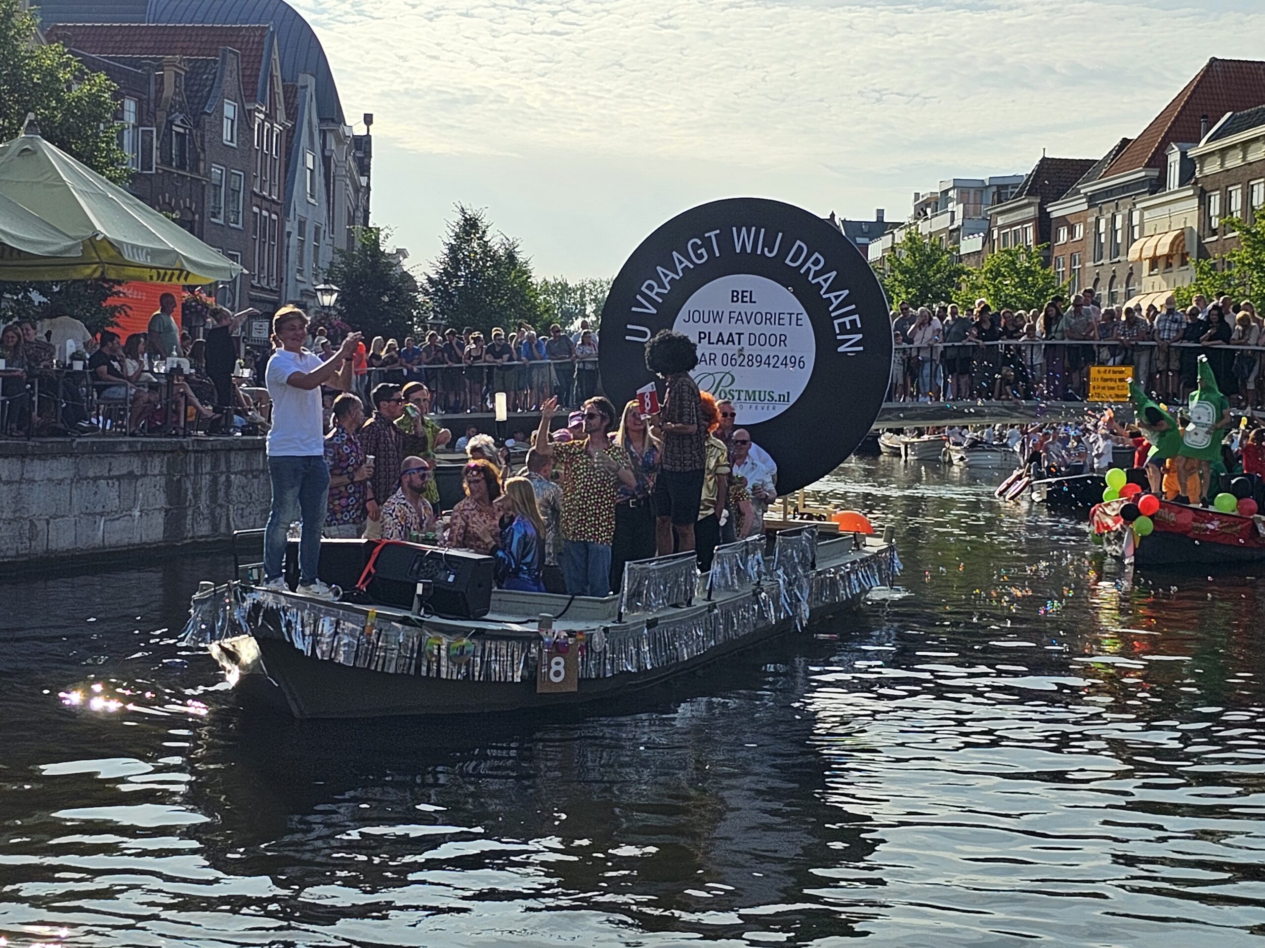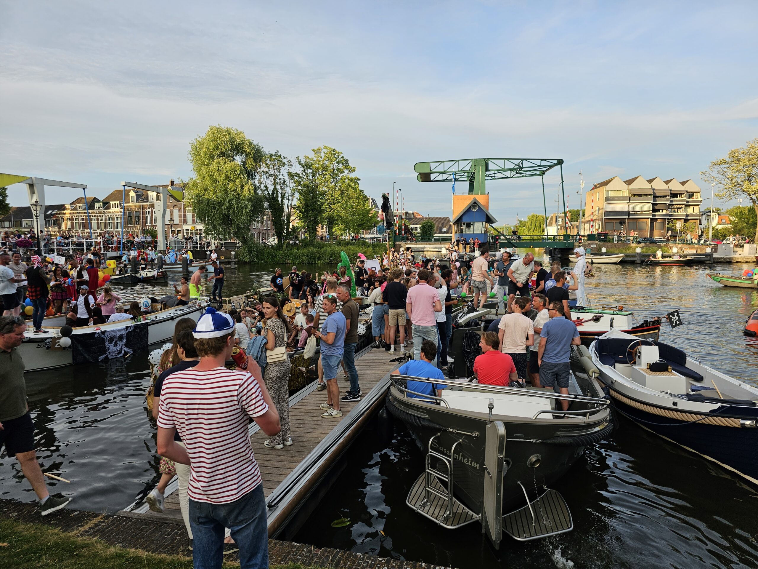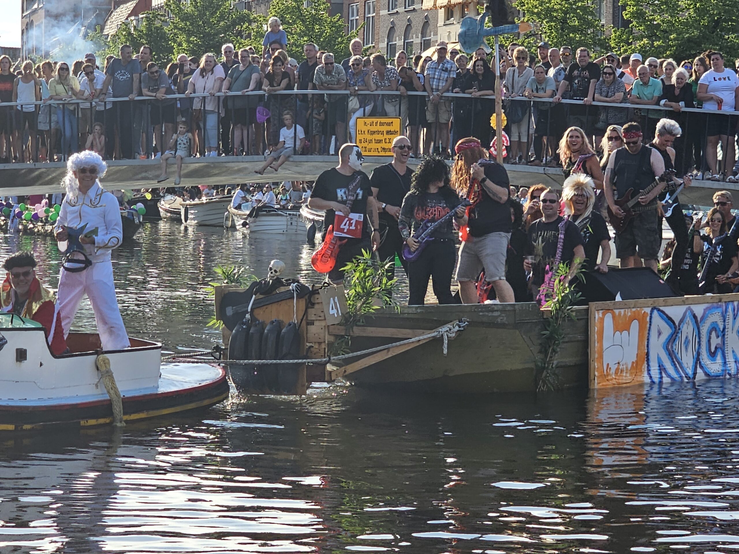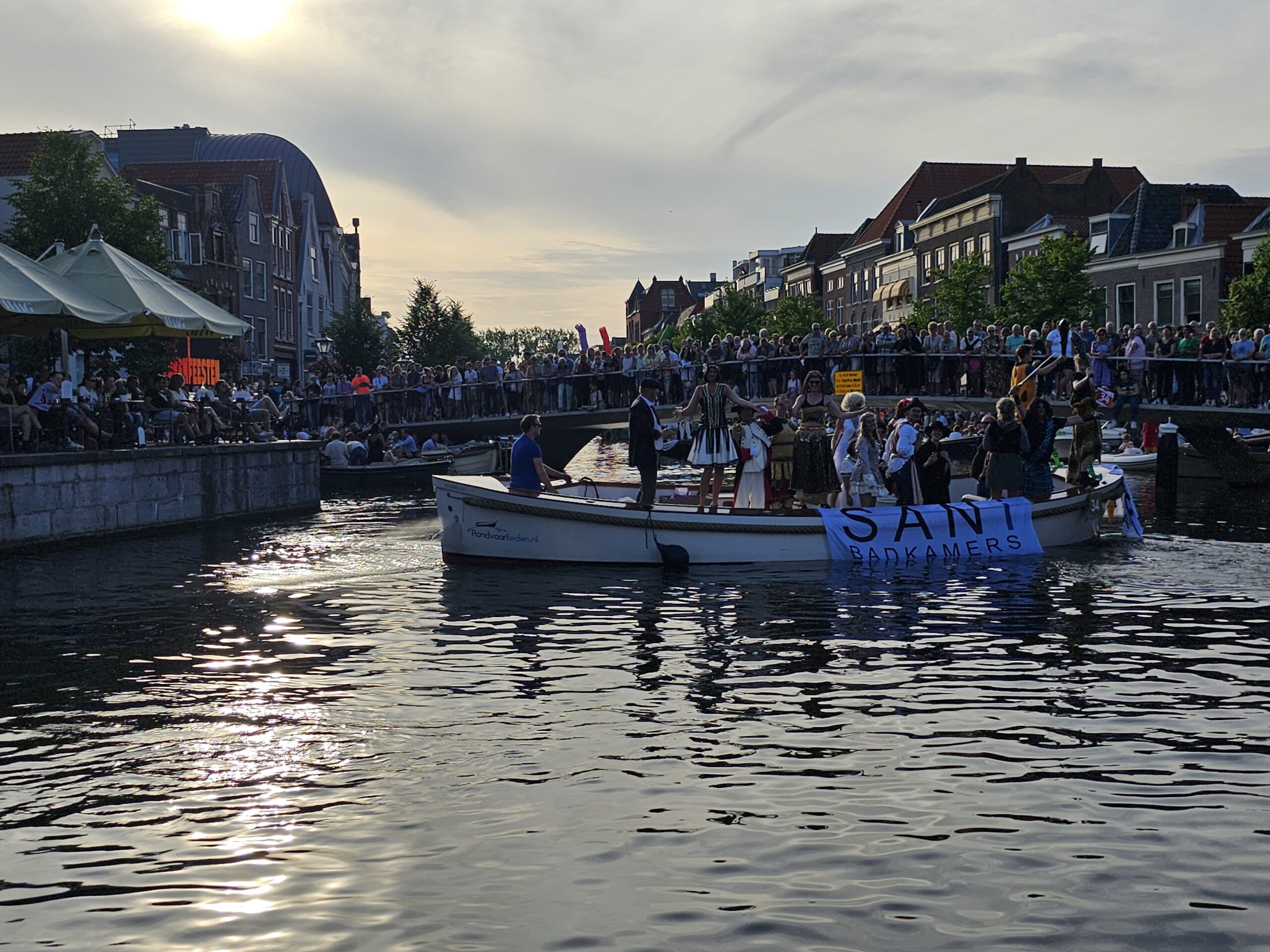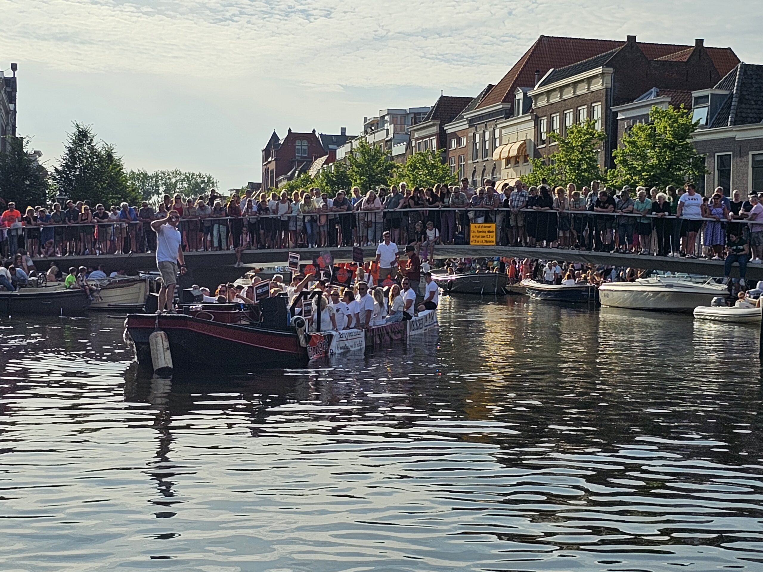 De Peurbakkentocht die gisteren in het centrum van Leiden voor veel gezelligheid en drukte zorgde, is vrijdagavond vlekkeloos verlopen. Na de jurering vanaf het terras van Annie’s waar ook het presentatieduo Erwin Roodhart en Rik van der Geest alle bootjes vakkundig aan elkaar babbelden, voer de kleurrijke stoet door naar de Zijlpoort waar later op de avond de prijsuitreiking plaatsvond.