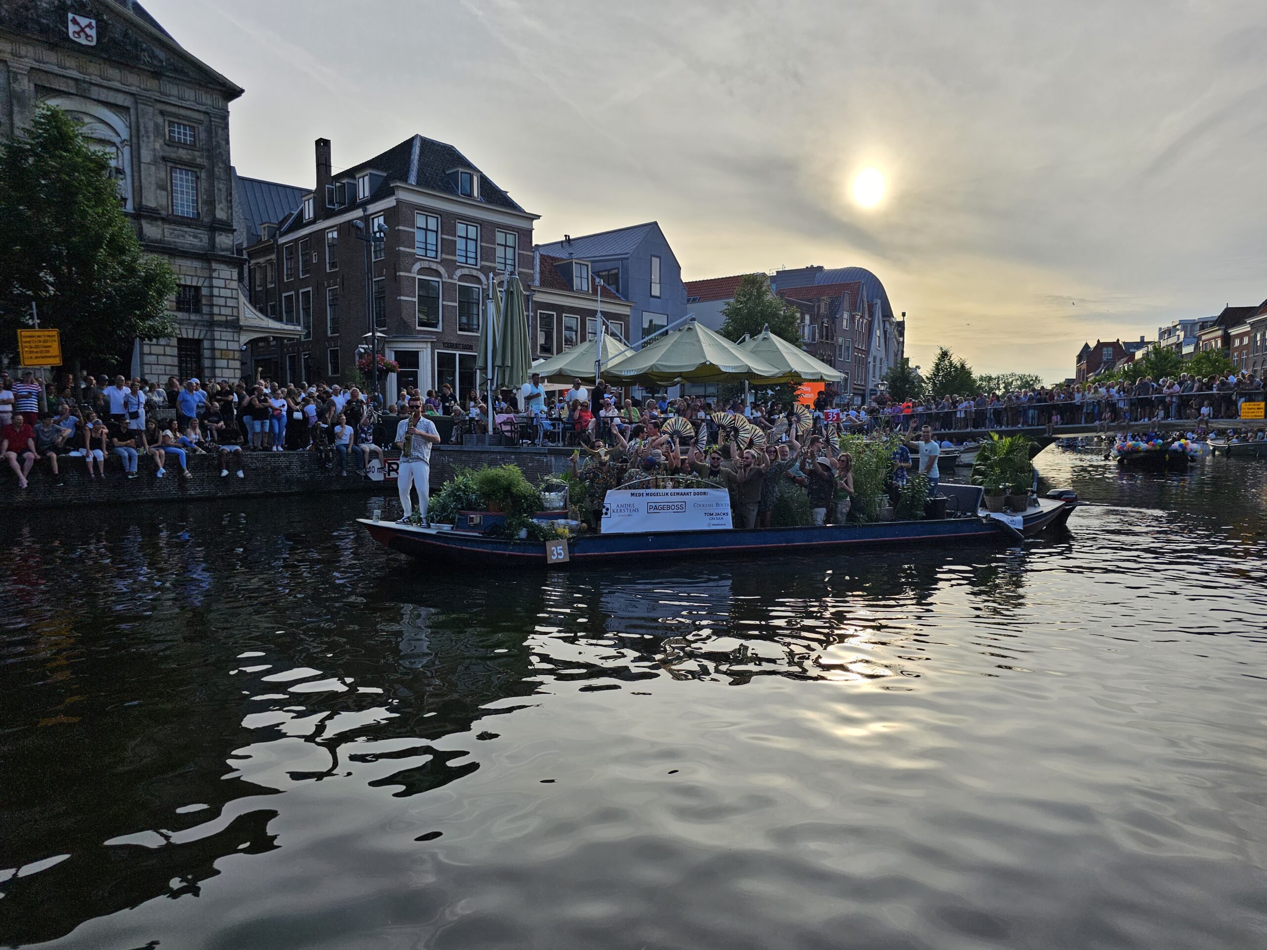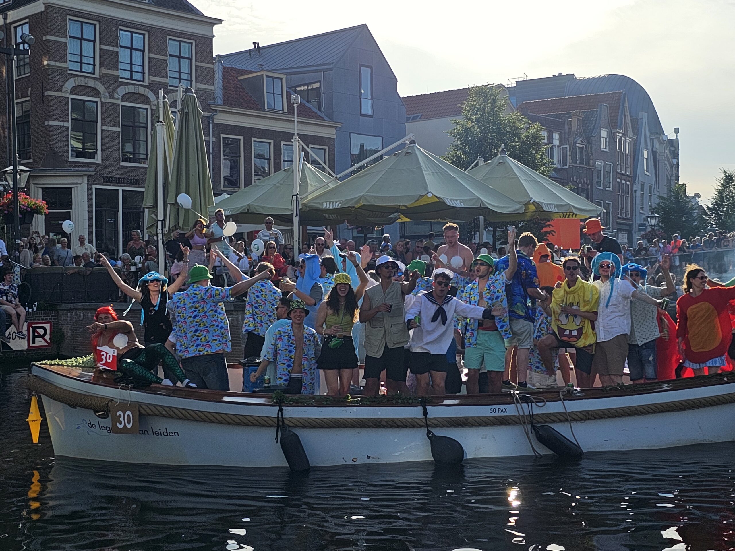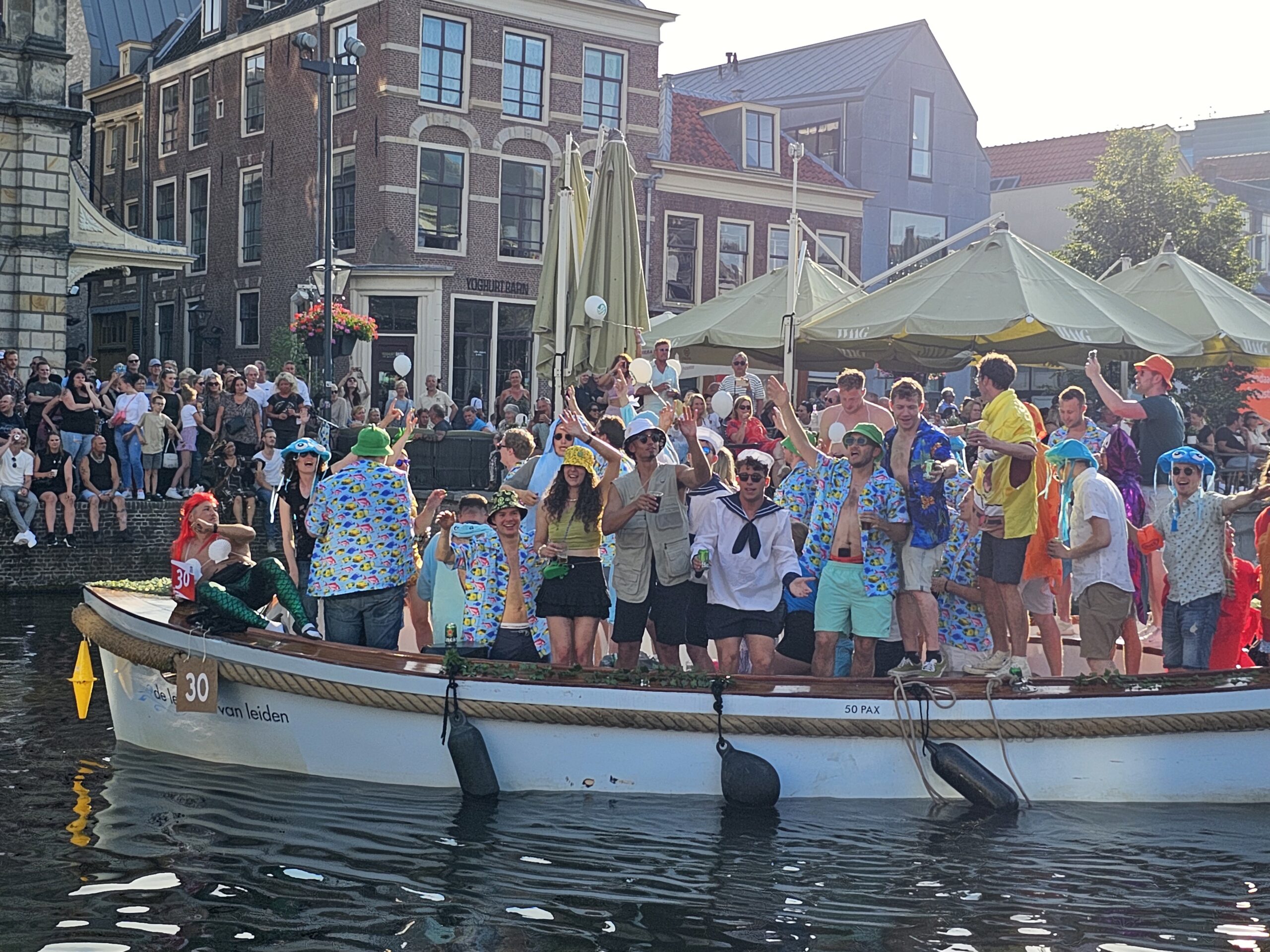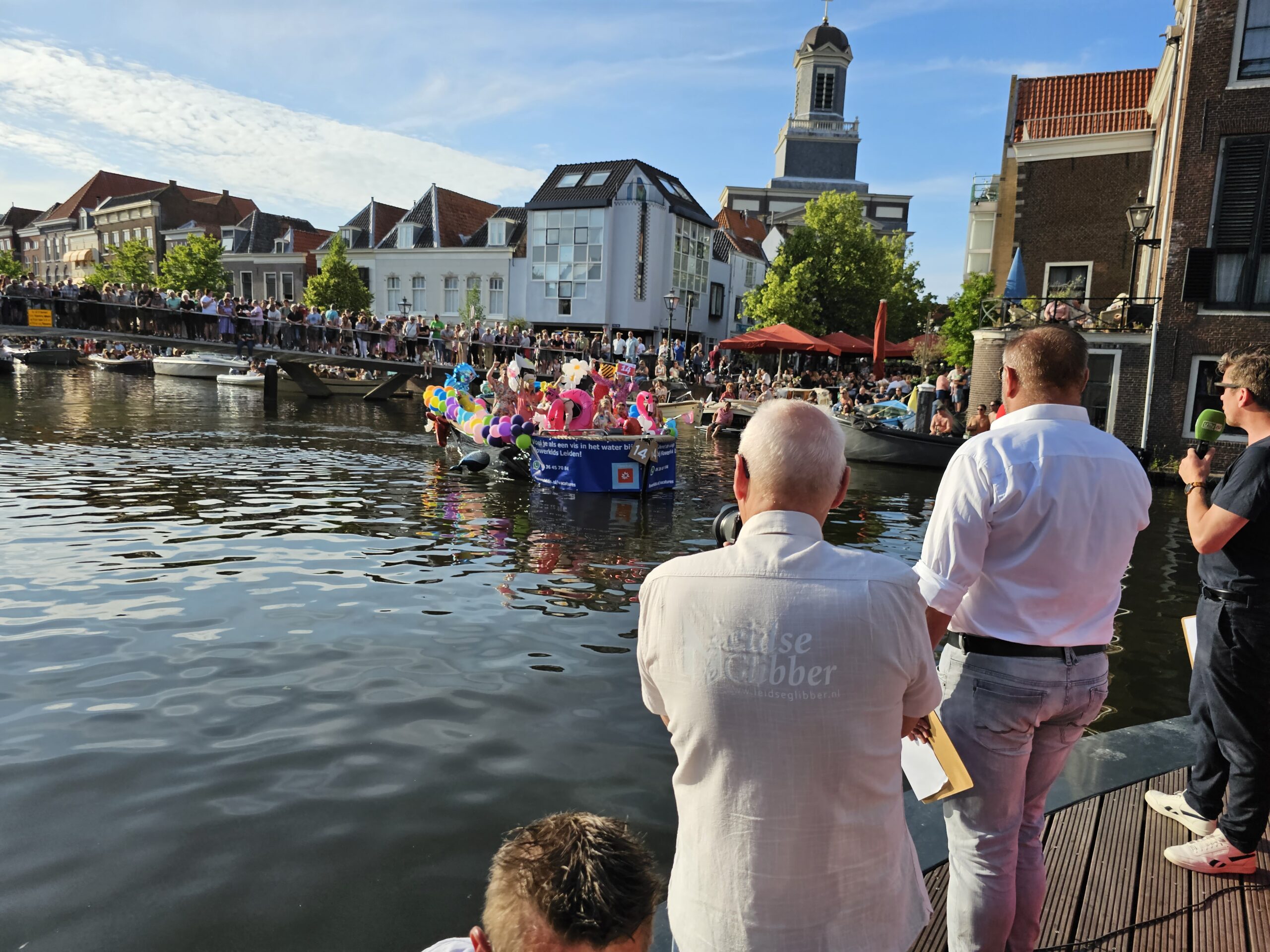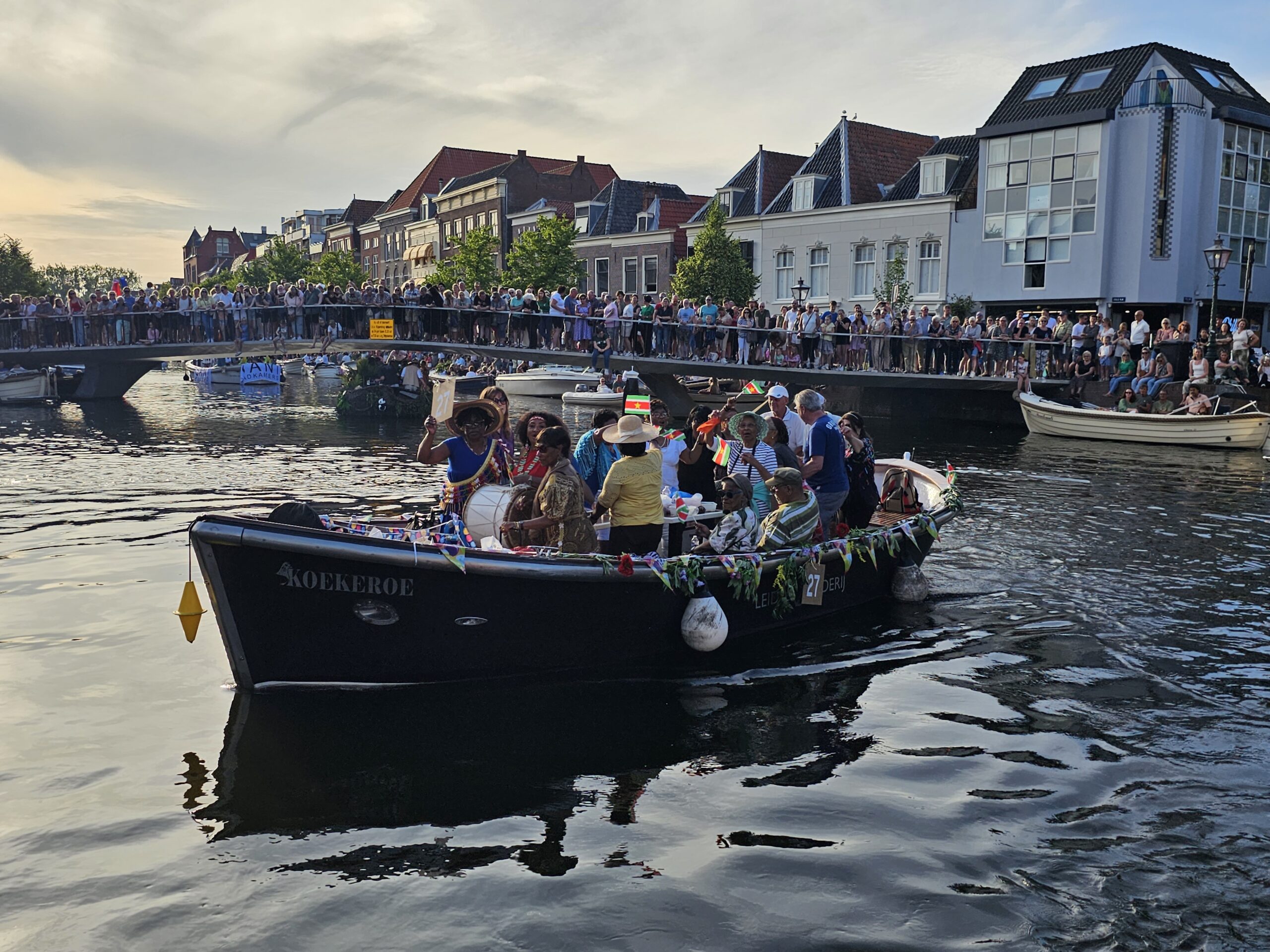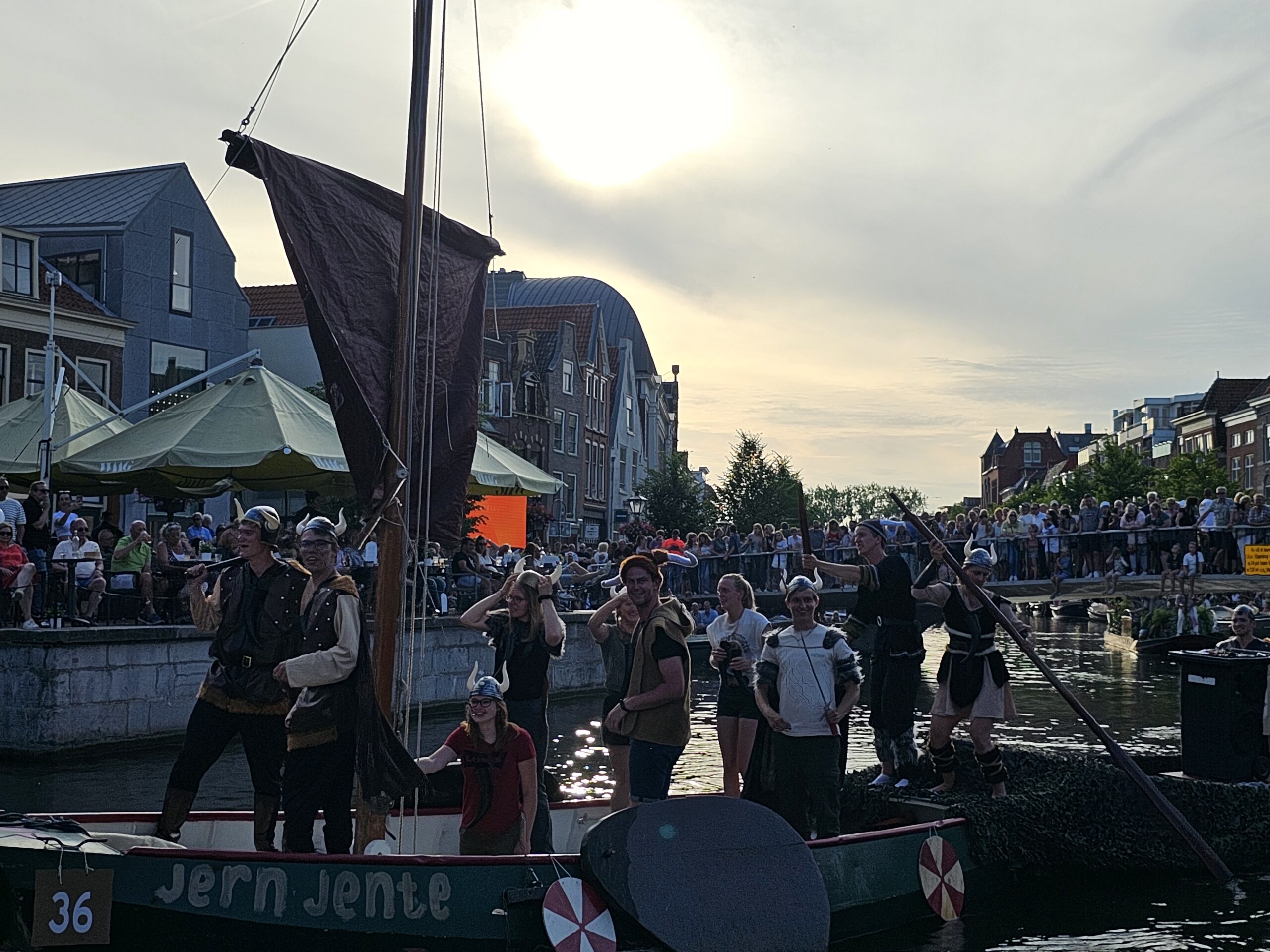 De Peurbakkentocht die gisteren in het centrum van Leiden voor veel gezelligheid en drukte zorgde, is vrijdagavond vlekkeloos verlopen. Na de jurering vanaf het terras van Annie’s waar ook het presentatieduo Erwin Roodhart en Rik van der Geest alle bootjes vakkundig aan elkaar babbelden, voer de kleurrijke stoet door naar de Zijlpoort waar later op de avond de prijsuitreiking plaatsvond.