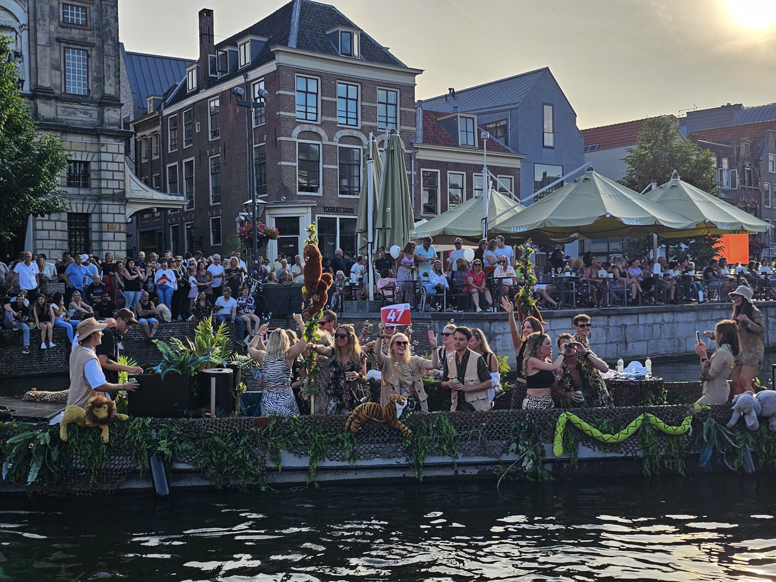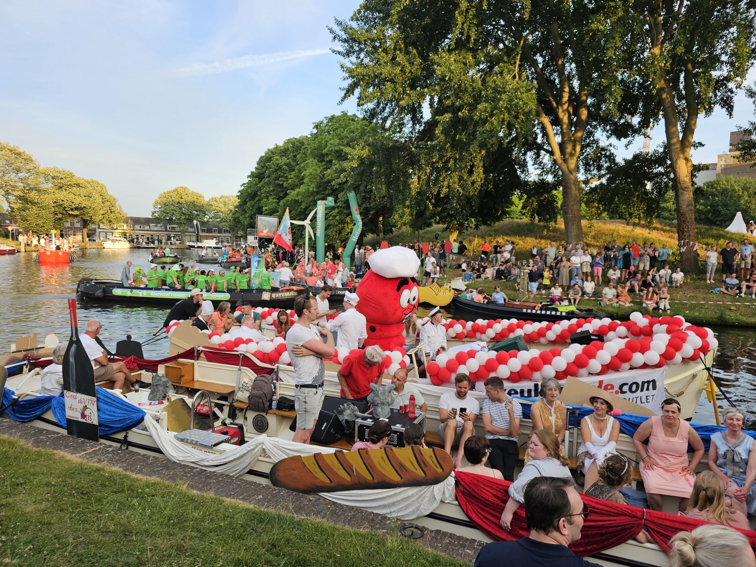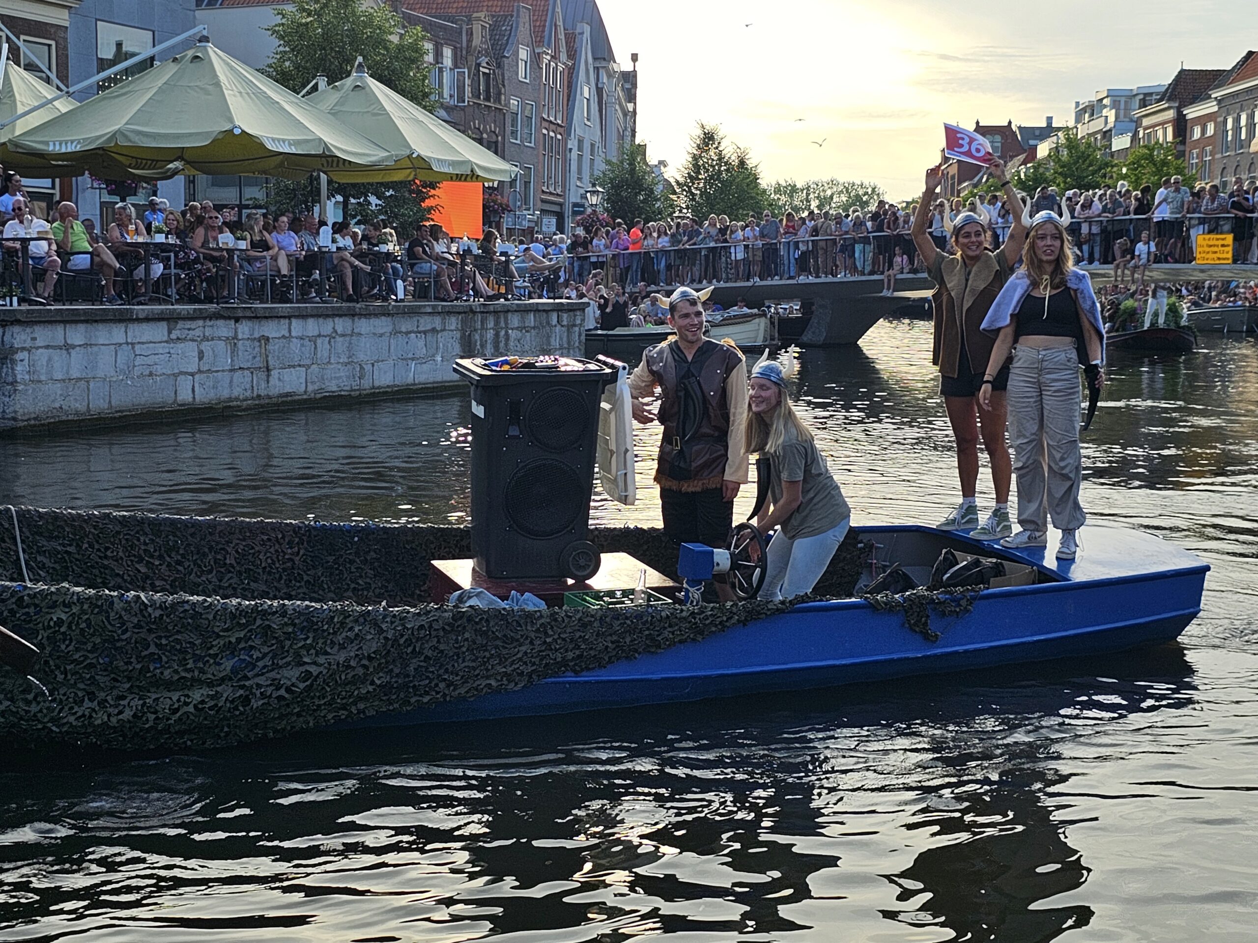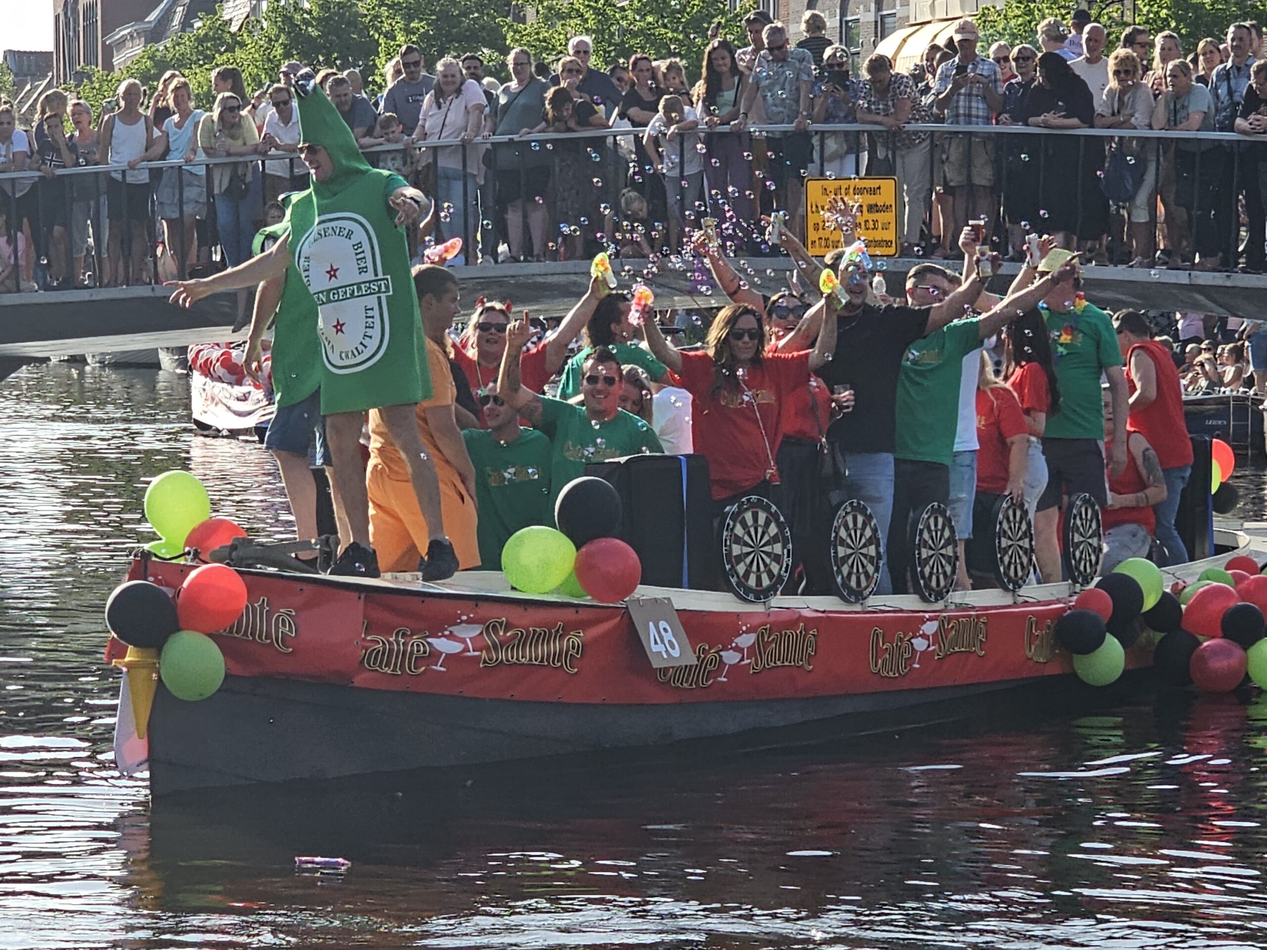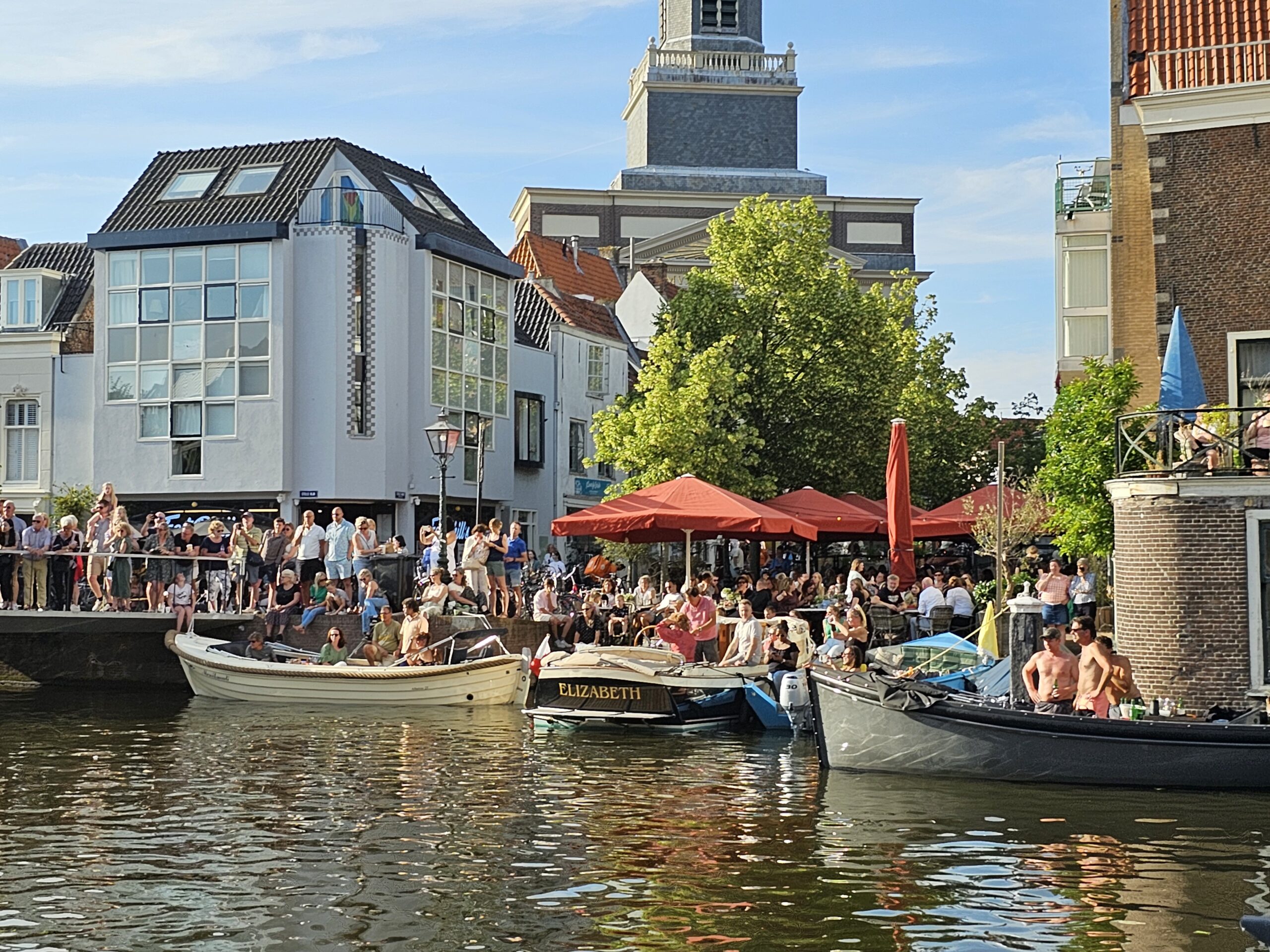 De Peurbakkentocht die gisteren in het centrum van Leiden voor veel gezelligheid en drukte zorgde, is vrijdagavond vlekkeloos verlopen. Na de jurering vanaf het terras van Annie’s waar ook het presentatieduo Erwin Roodhart en Rik van der Geest alle bootjes vakkundig aan elkaar babbelden, voer de kleurrijke stoet door naar de Zijlpoort waar later op de avond de prijsuitreiking plaatsvond.