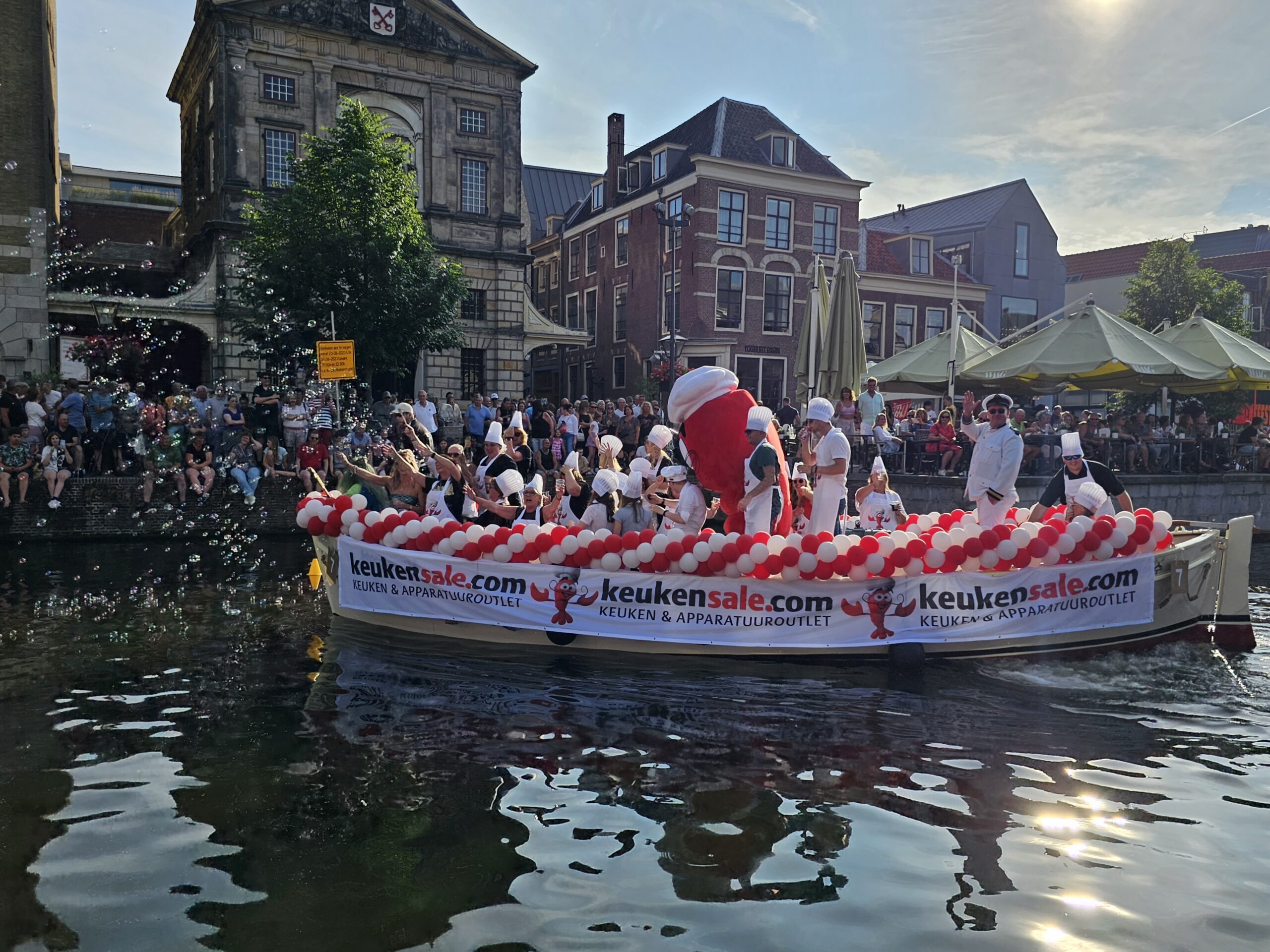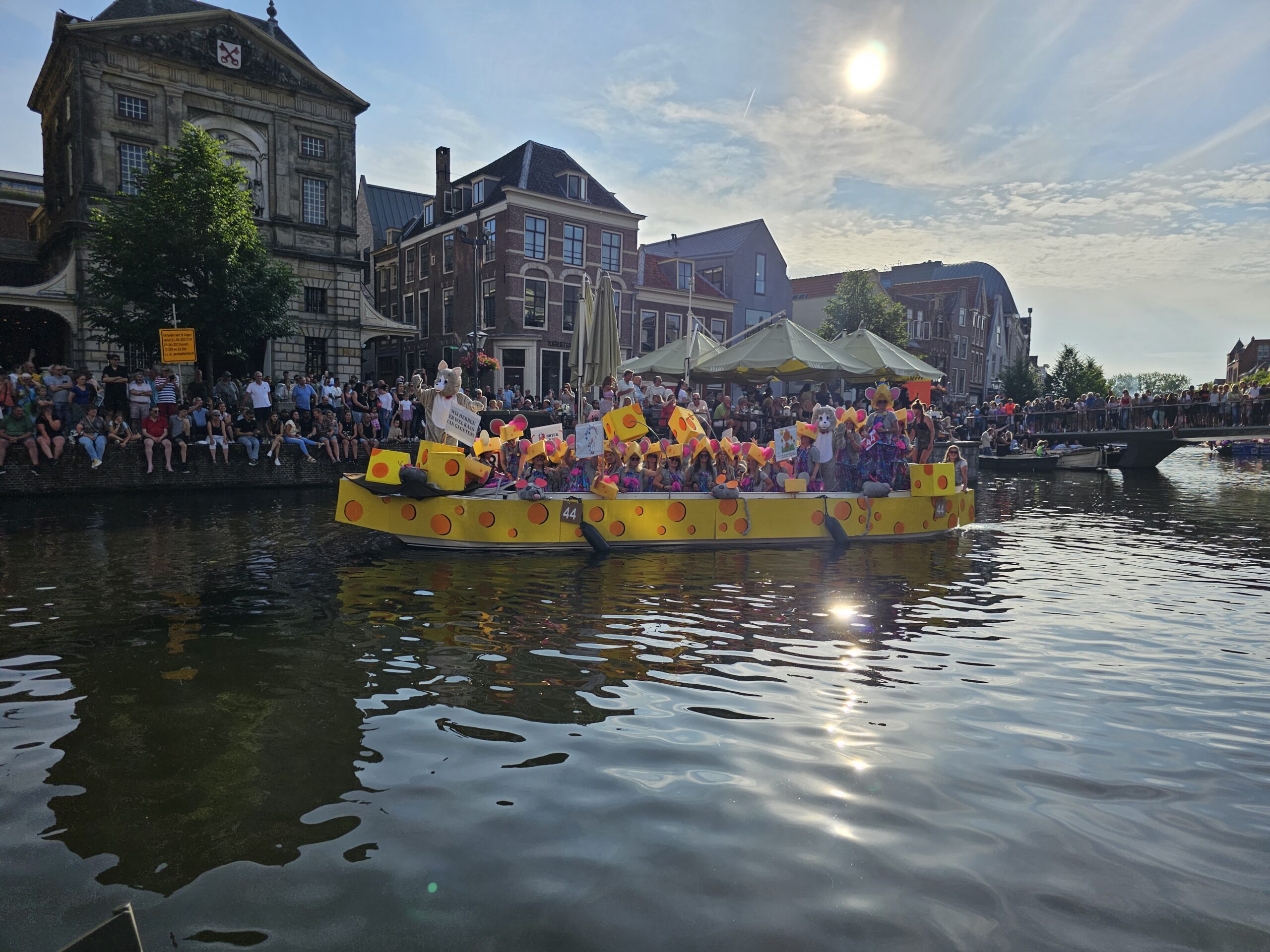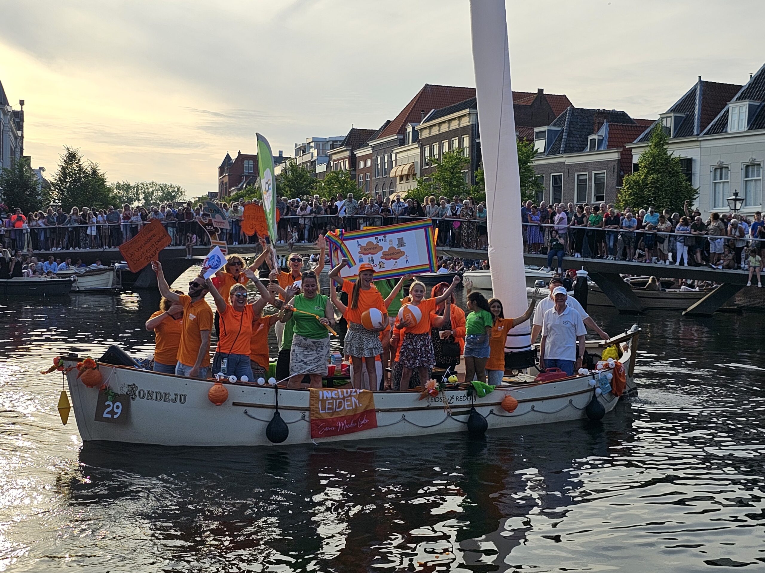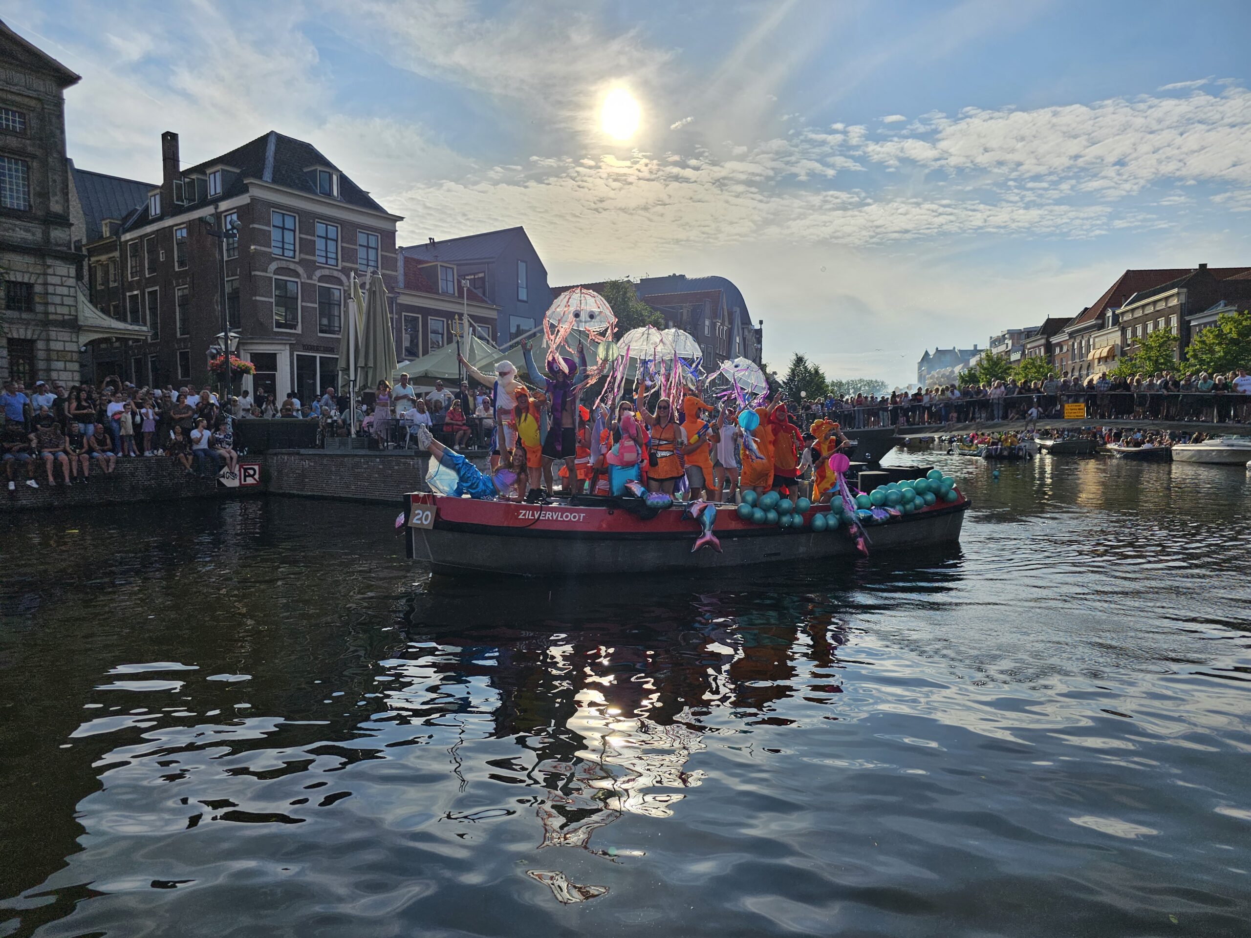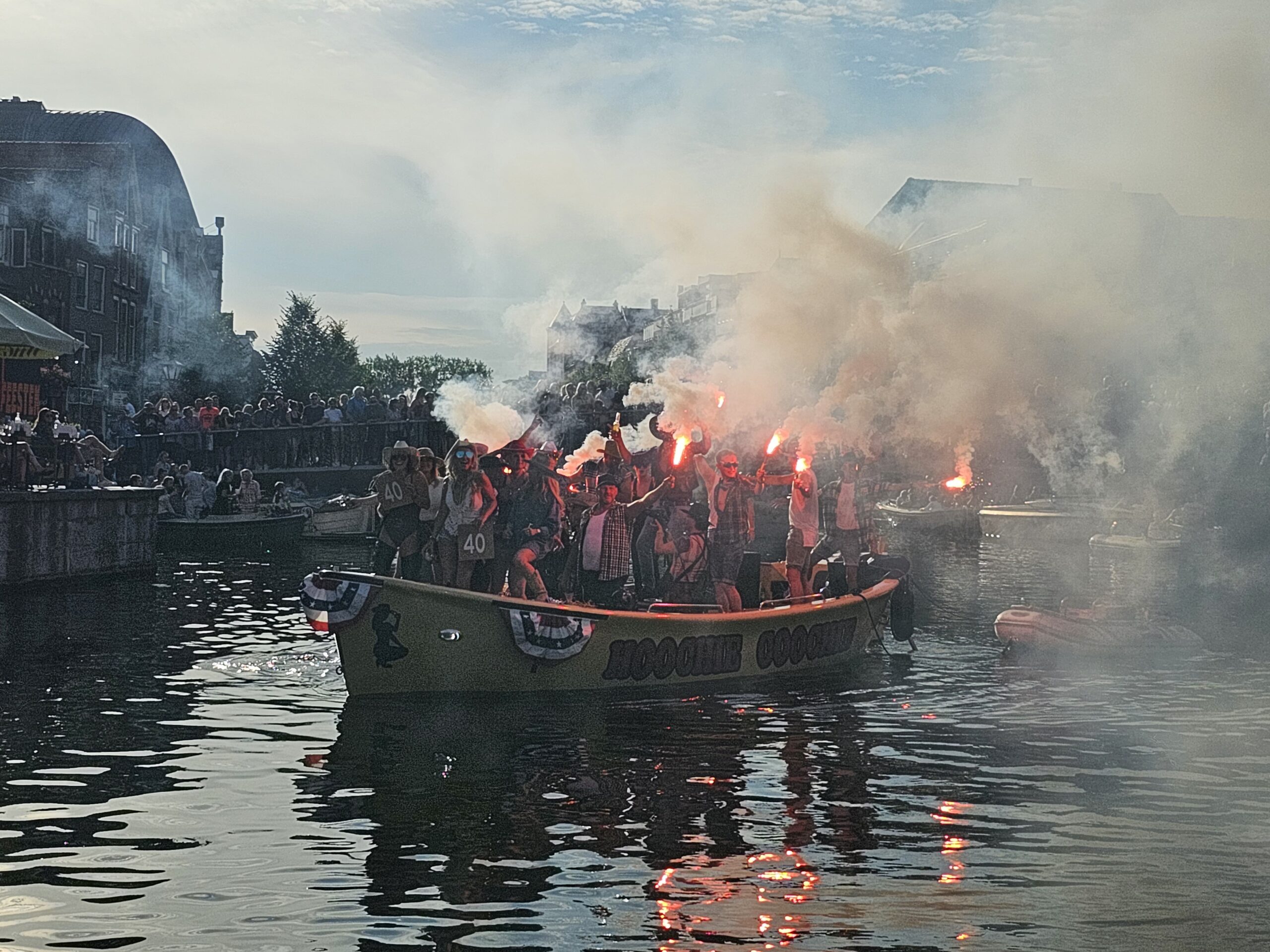 De Peurbakkentocht die gisteren in het centrum van Leiden voor veel gezelligheid en drukte zorgde, is vrijdagavond vlekkeloos verlopen. Na de jurering vanaf het terras van Annie’s waar ook het presentatieduo Erwin Roodhart en Rik van der Geest alle bootjes vakkundig aan elkaar babbelden, voer de kleurrijke stoet door naar de Zijlpoort waar later op de avond de prijsuitreiking plaatsvond.