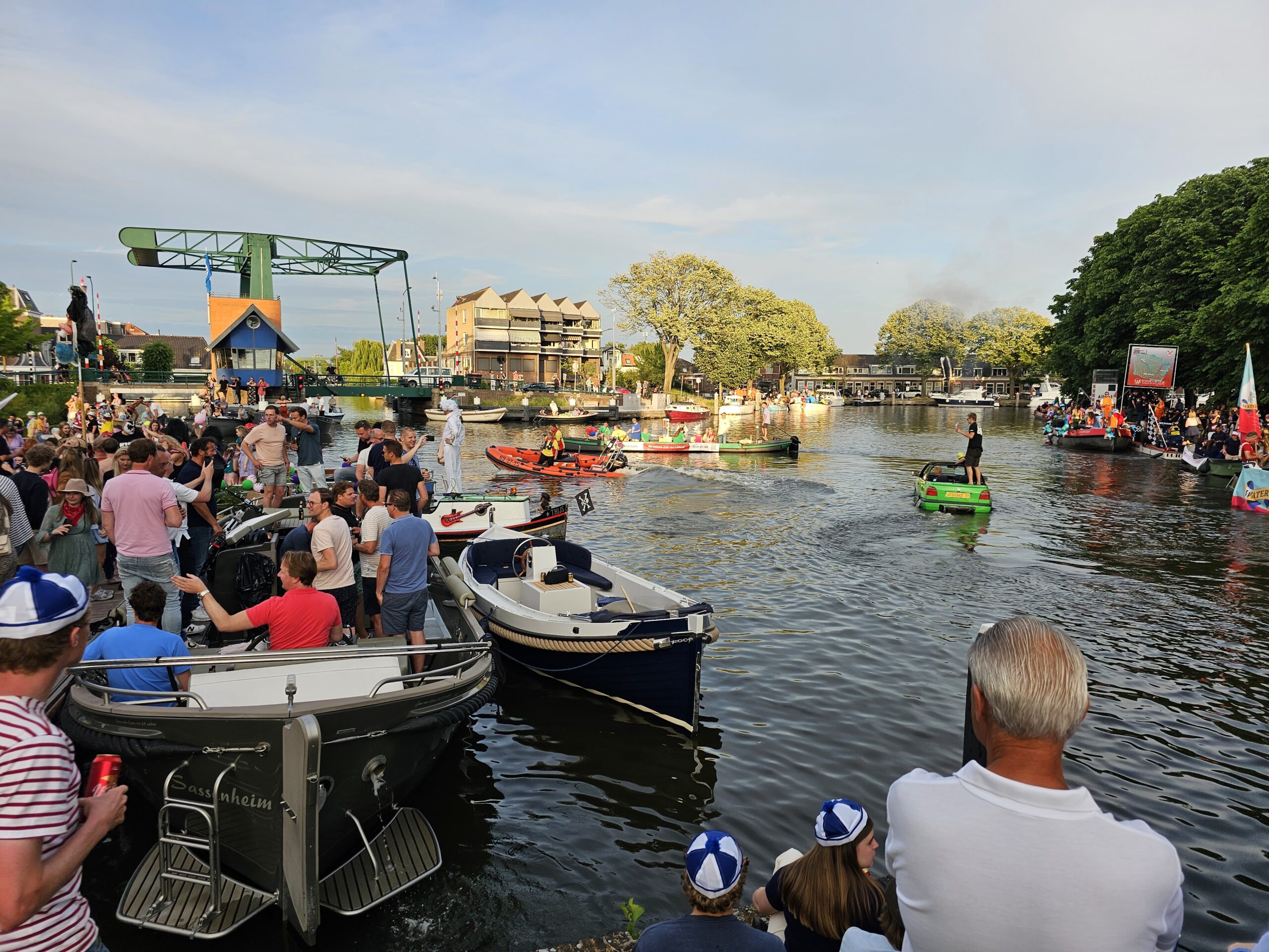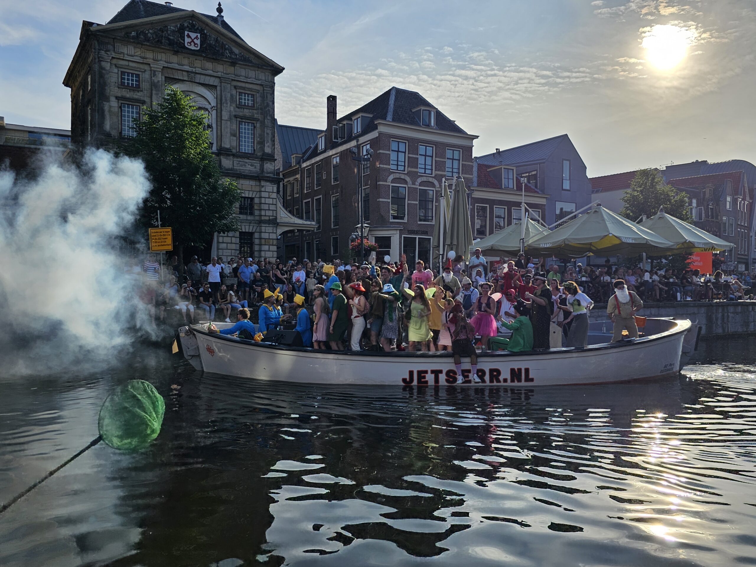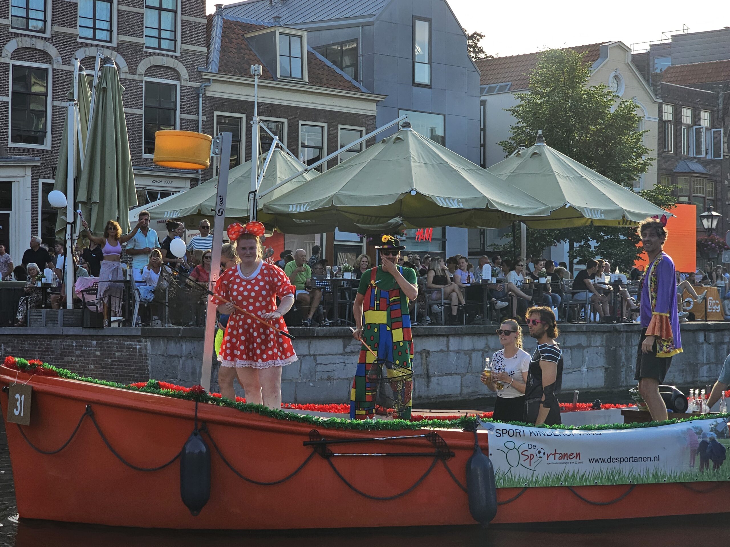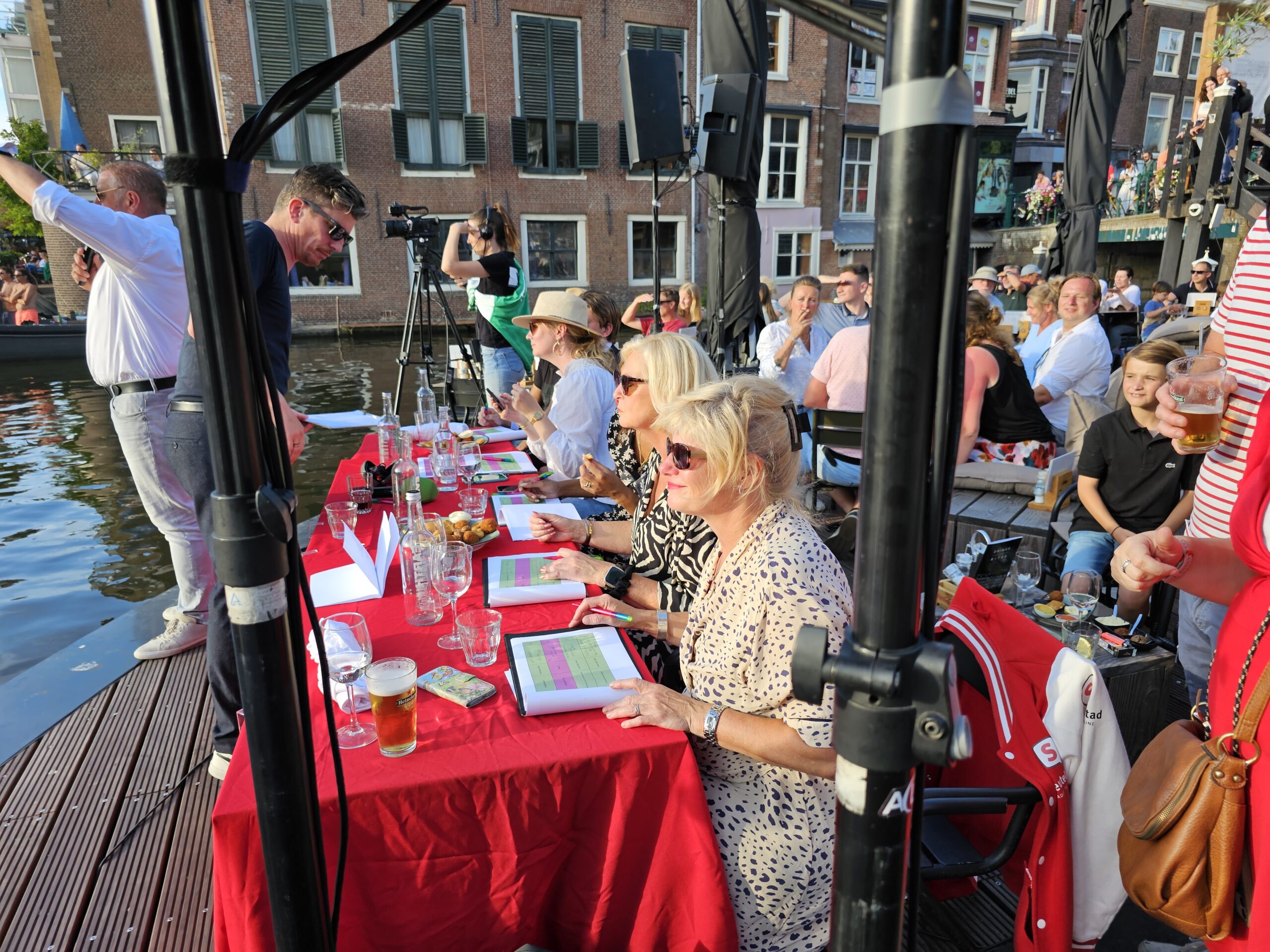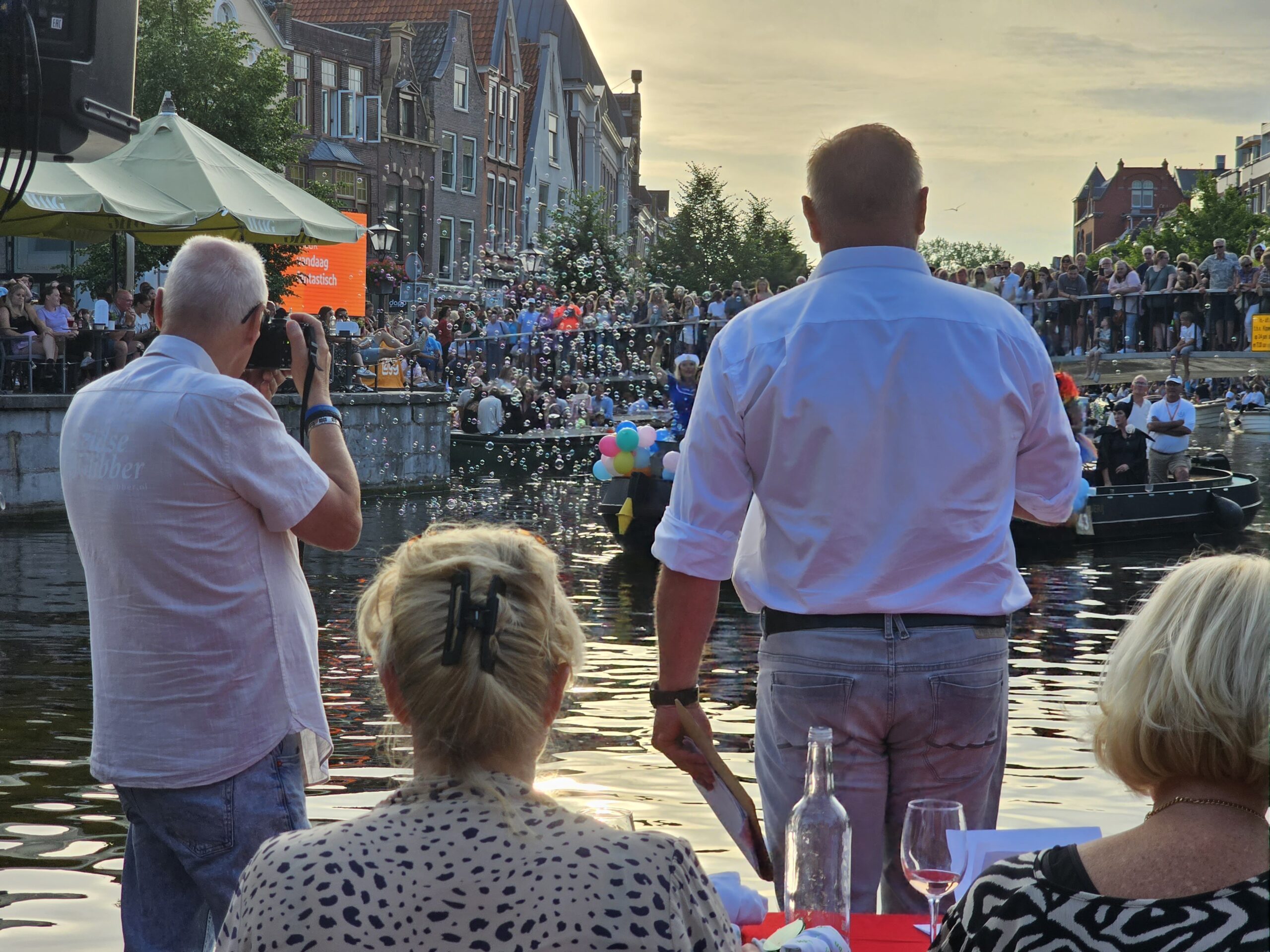 De Peurbakkentocht die gisteren in het centrum van Leiden voor veel gezelligheid en drukte zorgde, is vrijdagavond vlekkeloos verlopen. Na de jurering vanaf het terras van Annie’s waar ook het presentatieduo Erwin Roodhart en Rik van der Geest alle bootjes vakkundig aan elkaar babbelden, voer de kleurrijke stoet door naar de Zijlpoort waar later op de avond de prijsuitreiking plaatsvond.