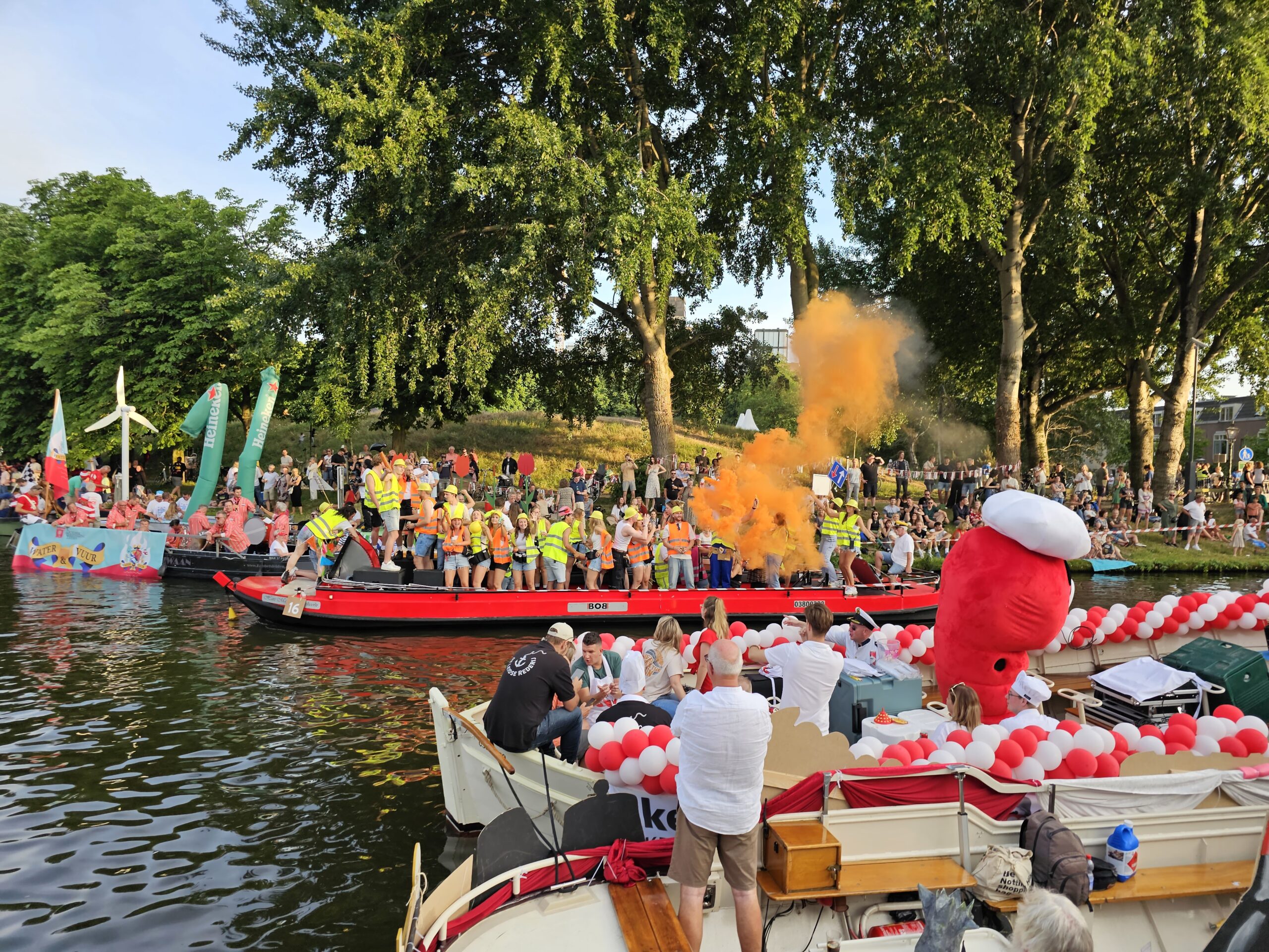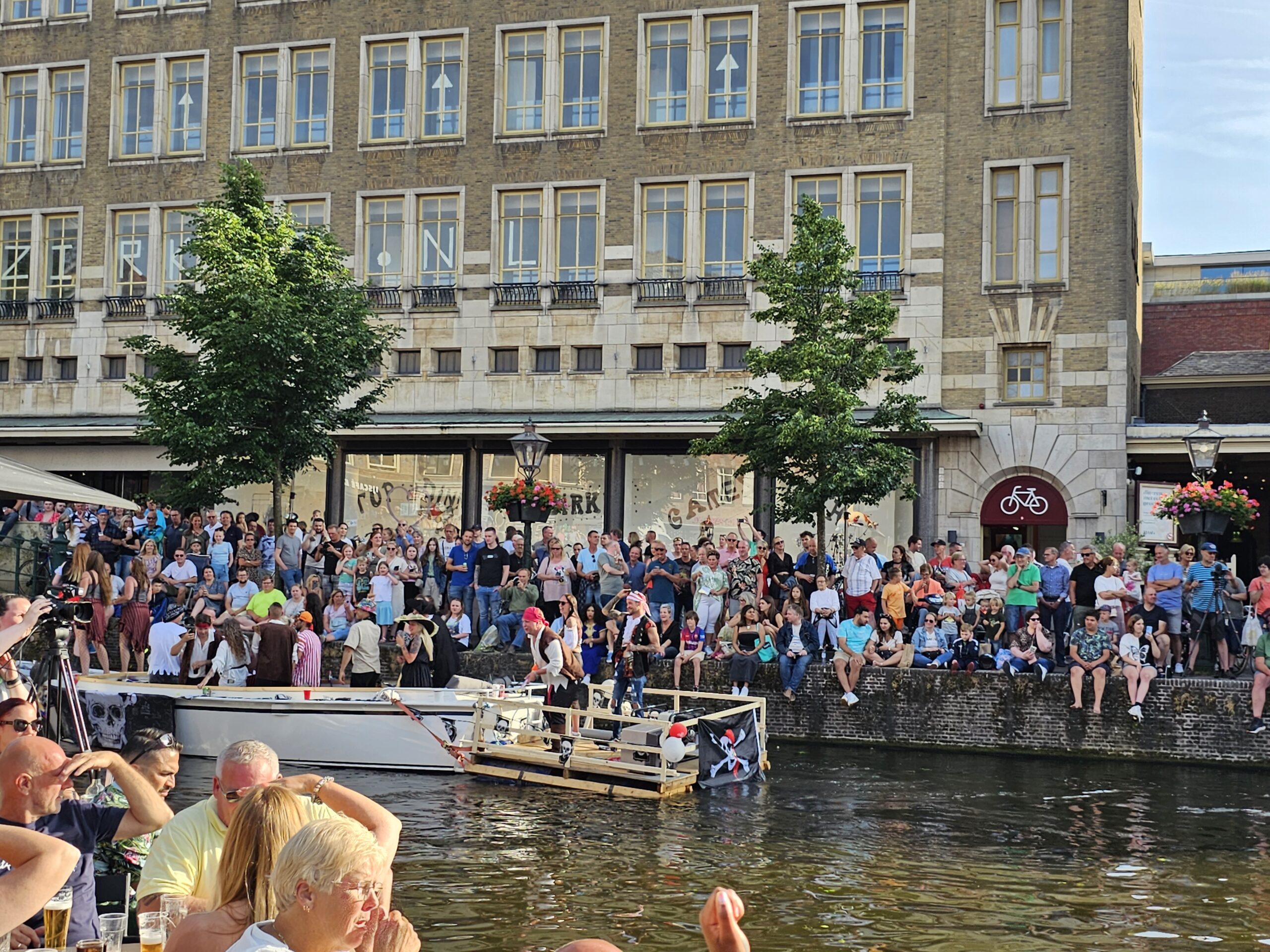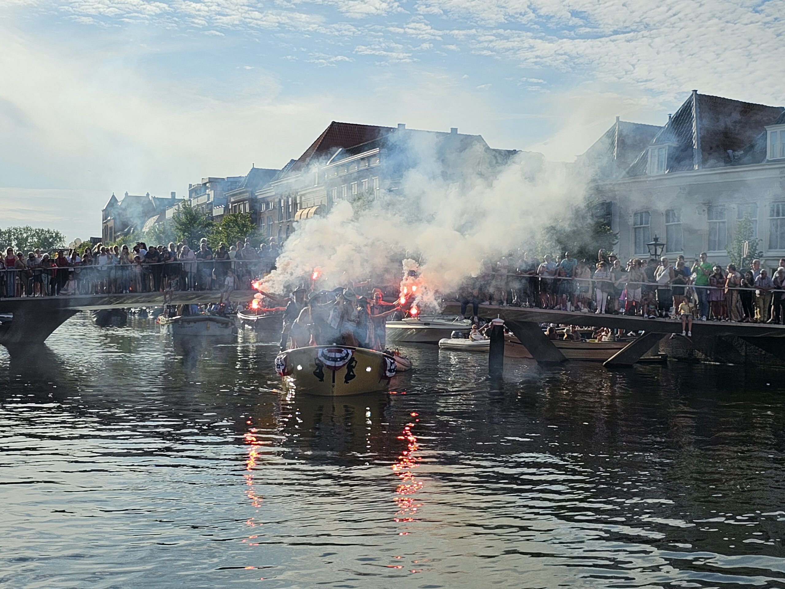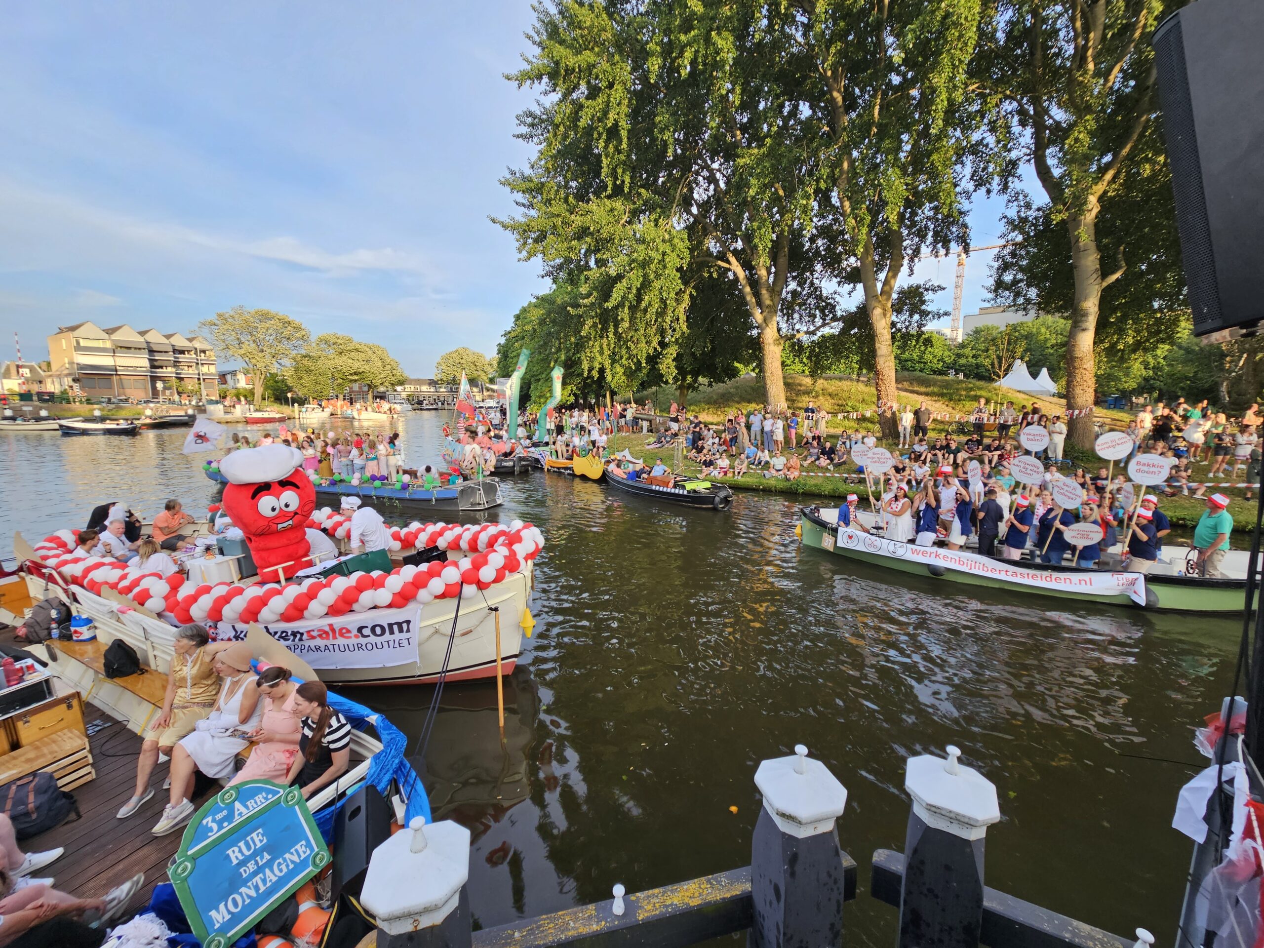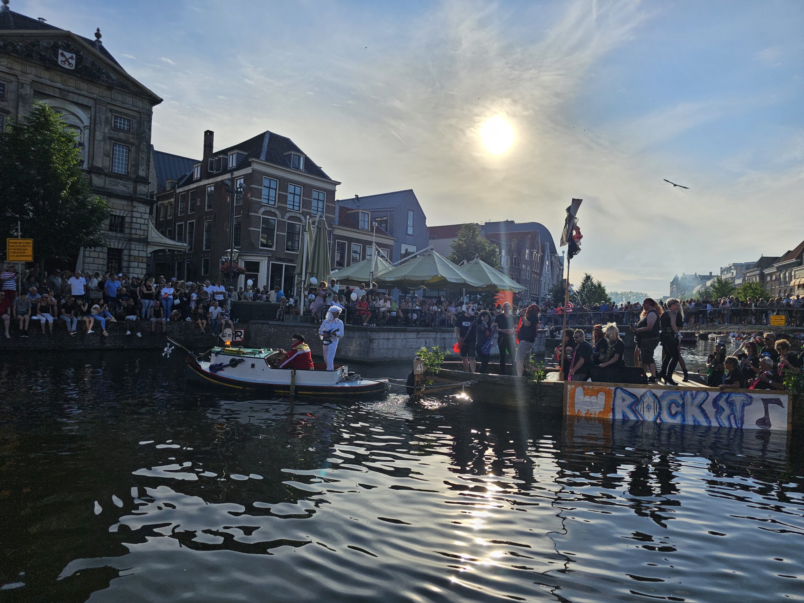 De Peurbakkentocht die gisteren in het centrum van Leiden voor veel gezelligheid en drukte zorgde, is vrijdagavond vlekkeloos verlopen. Na de jurering vanaf het terras van Annie’s waar ook het presentatieduo Erwin Roodhart en Rik van der Geest alle bootjes vakkundig aan elkaar babbelden, voer de kleurrijke stoet door naar de Zijlpoort waar later op de avond de prijsuitreiking plaatsvond.