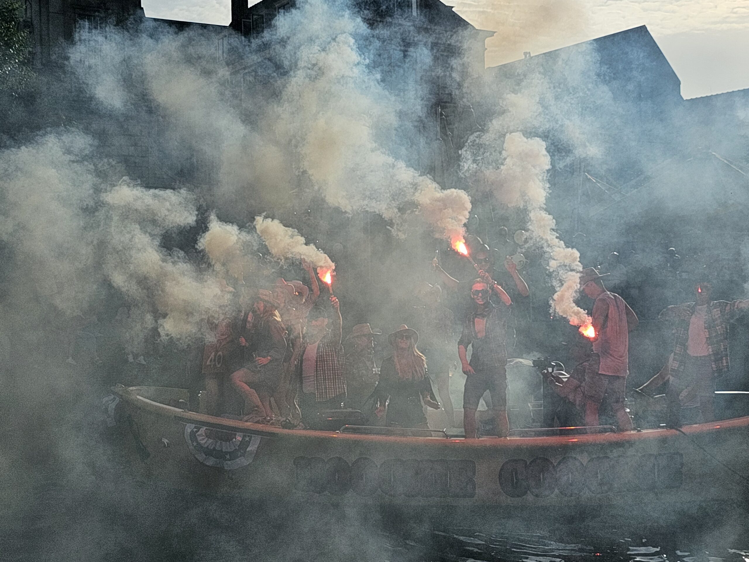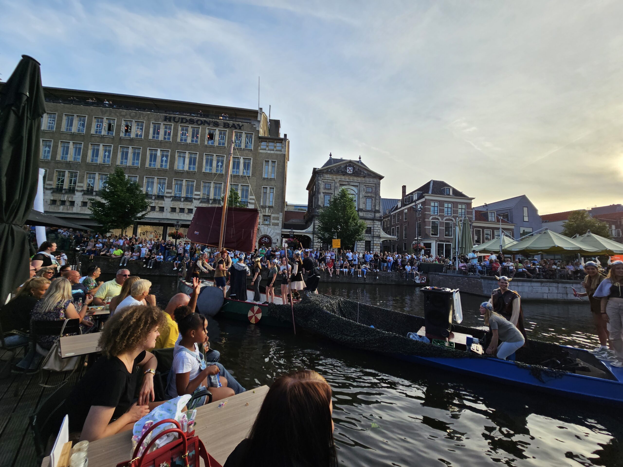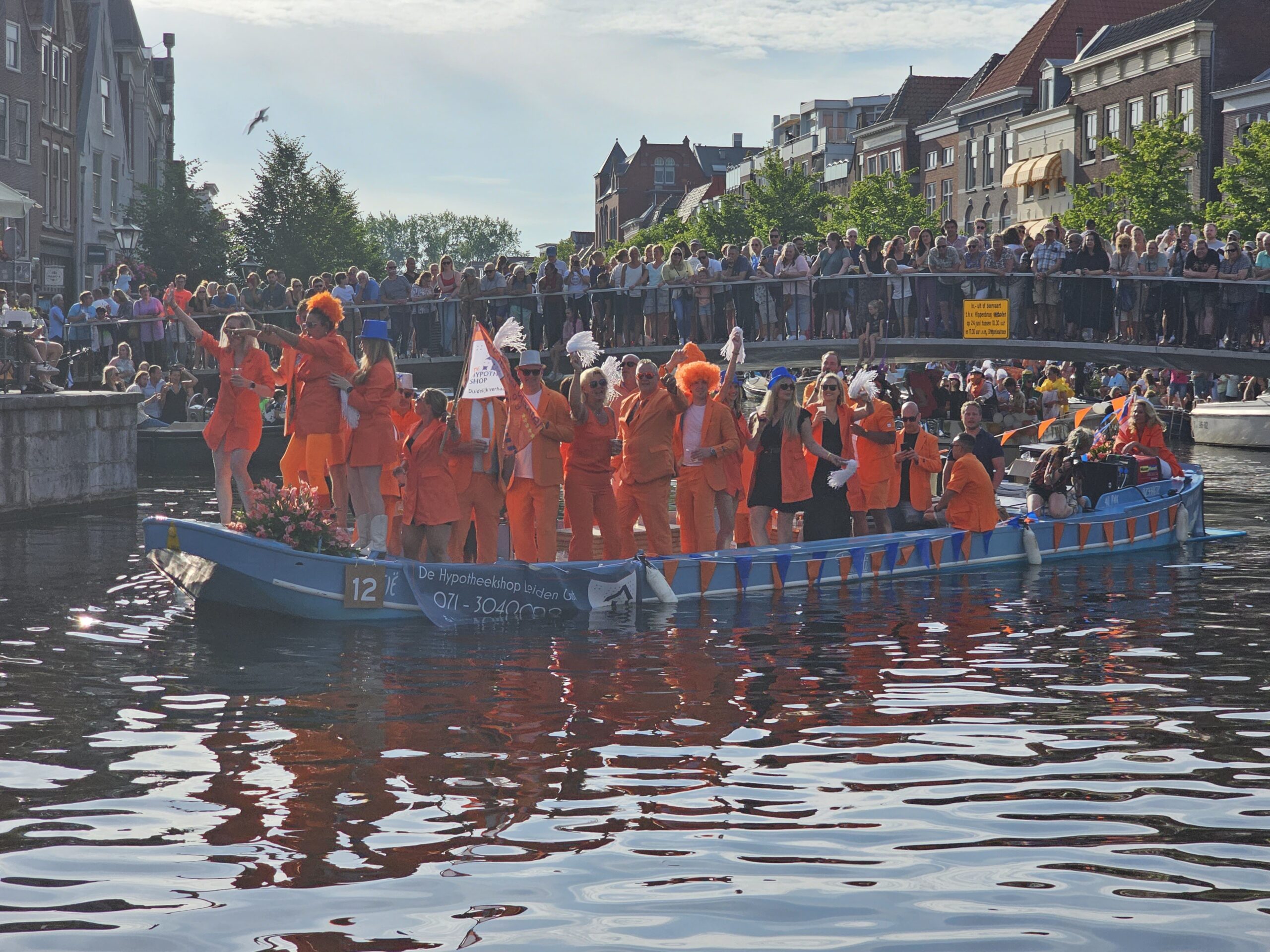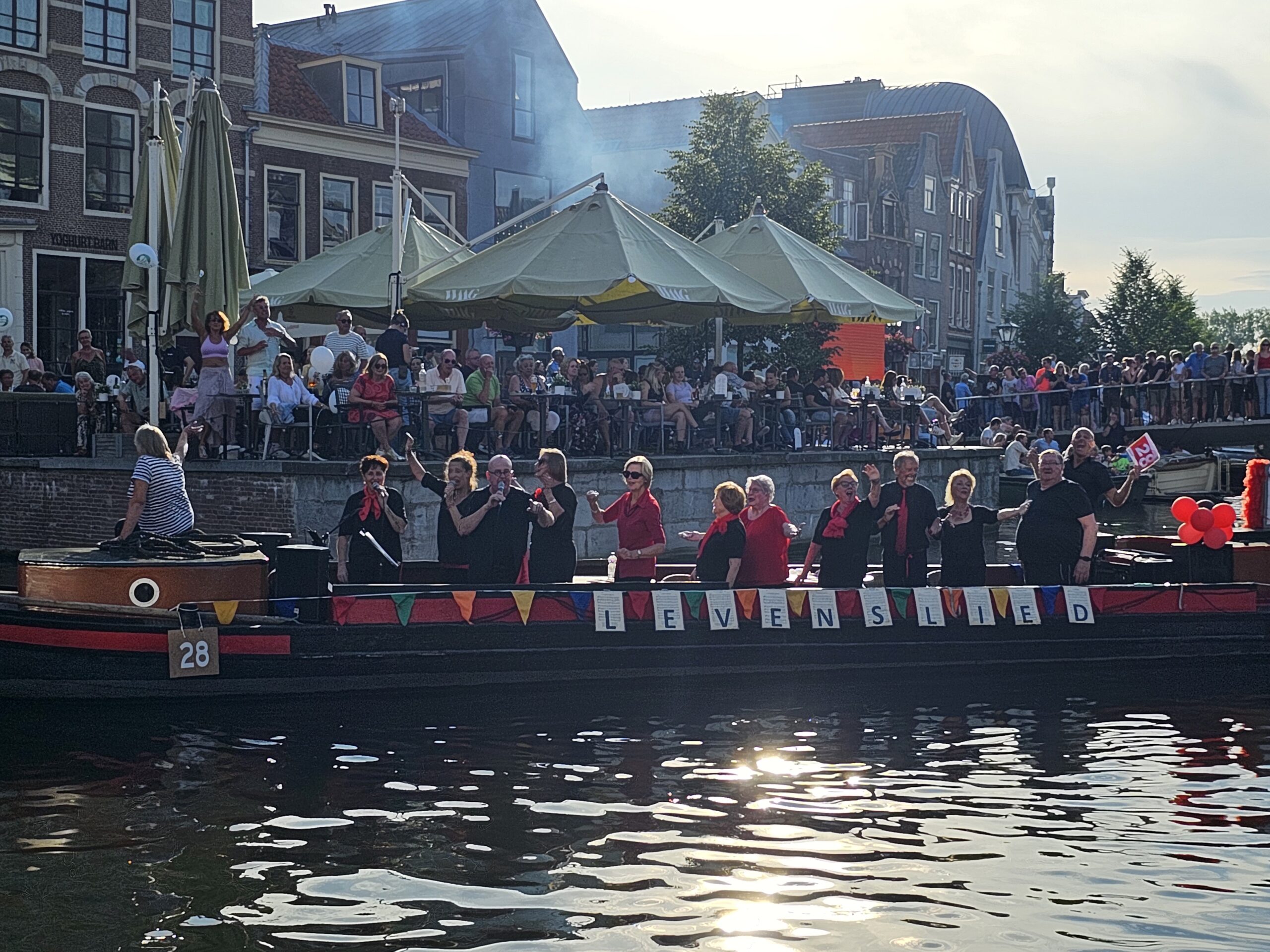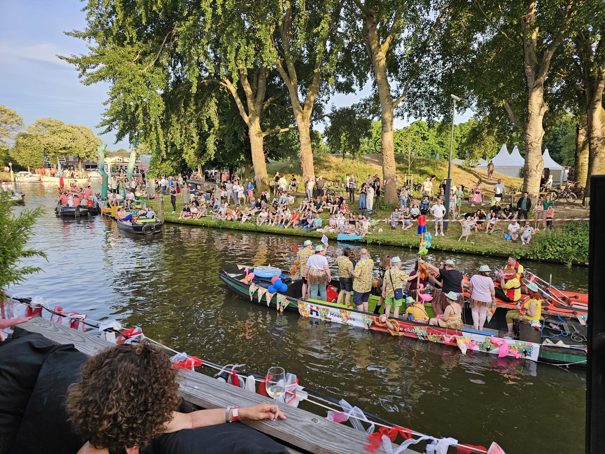De Peurbakkentocht die gisteren in het centrum van Leiden voor veel gezelligheid en drukte zorgde, is vrijdagavond vlekkeloos verlopen. Na de jurering vanaf het terras van Annie’s waar ook het presentatieduo Erwin Roodhart en Rik van der Geest alle bootjes vakkundig aan elkaar babbelden, voer de kleurrijke stoet door naar de Zijlpoort waar later op de avond de prijsuitreiking plaatsvond.